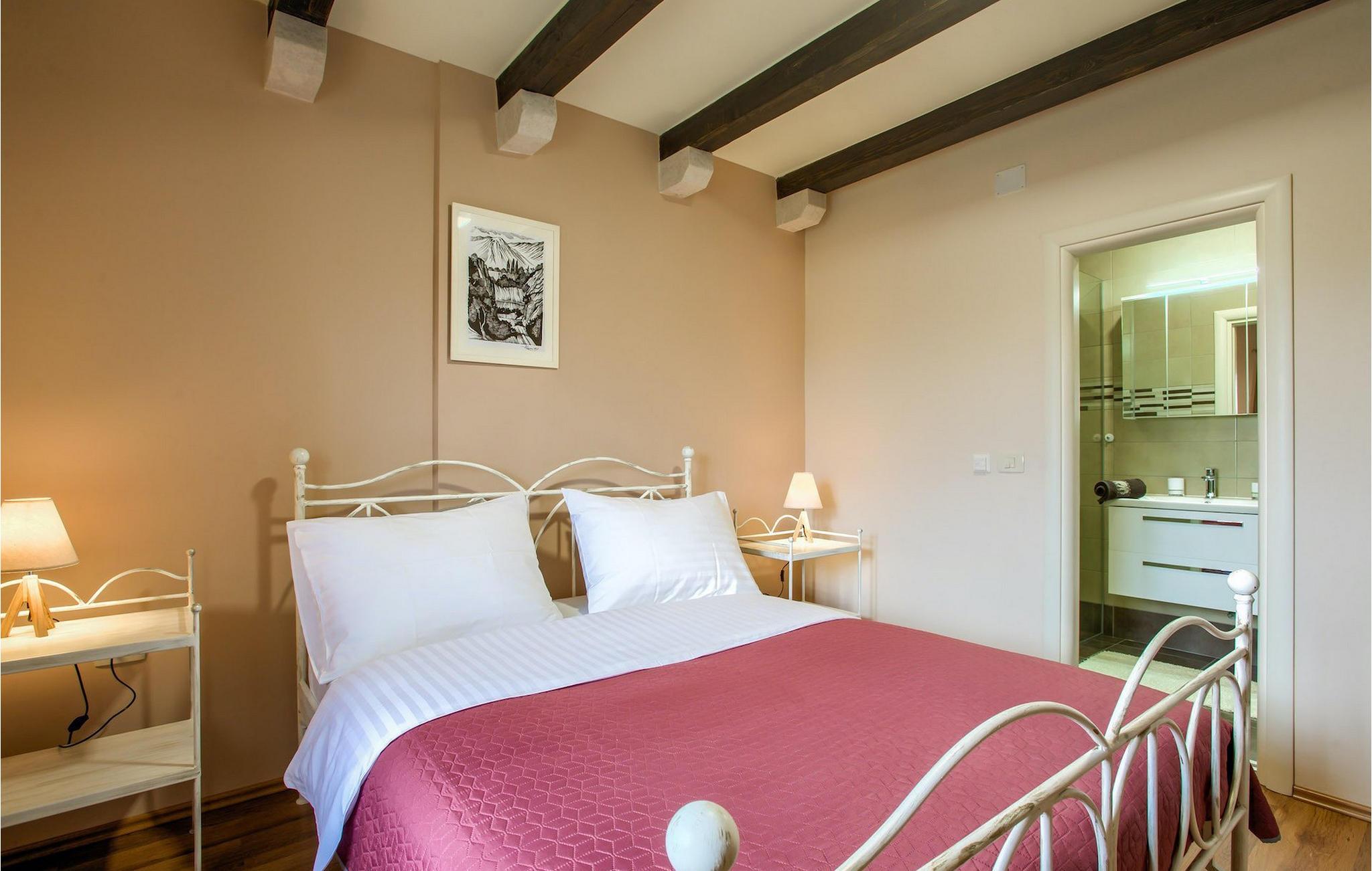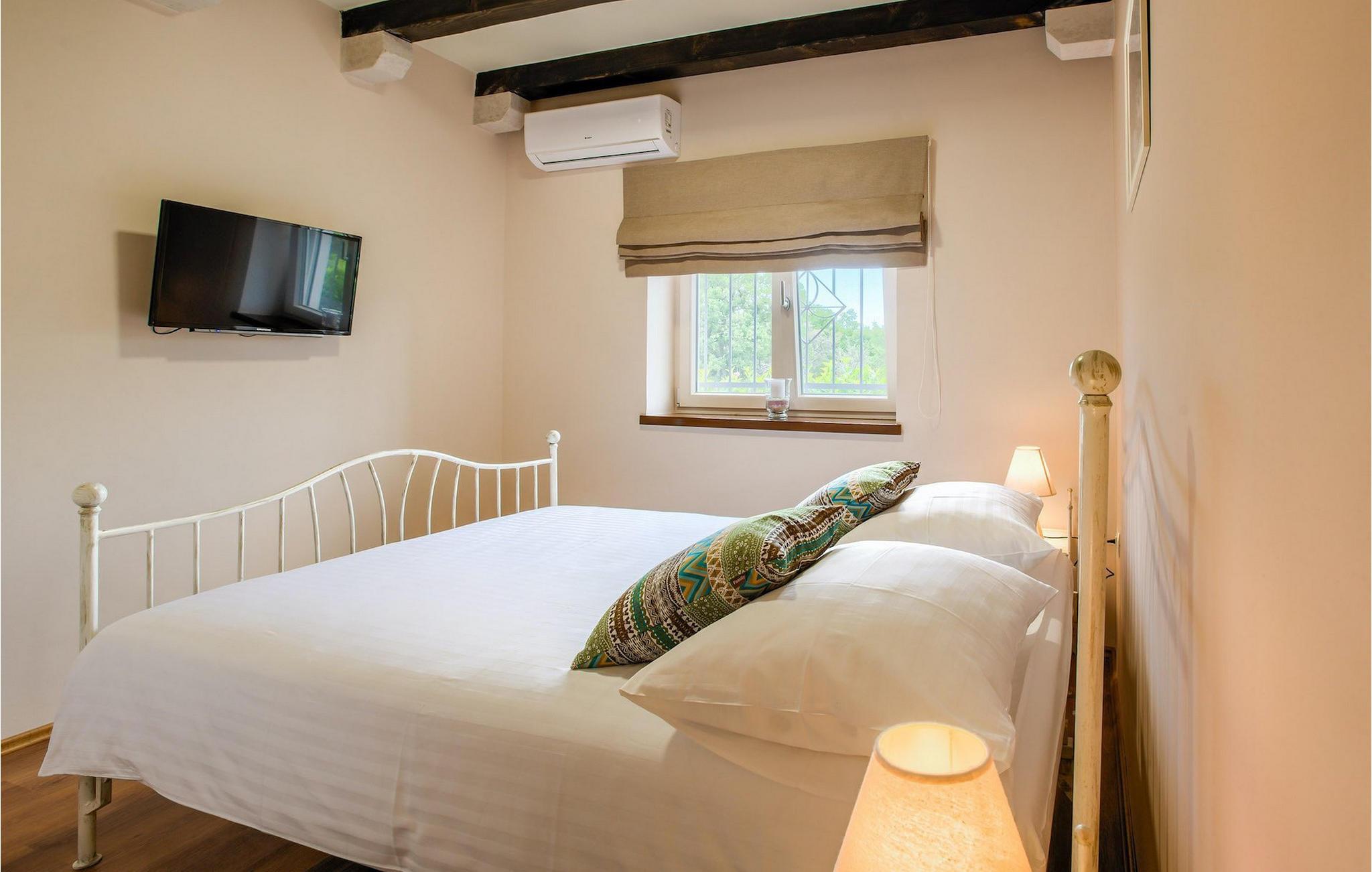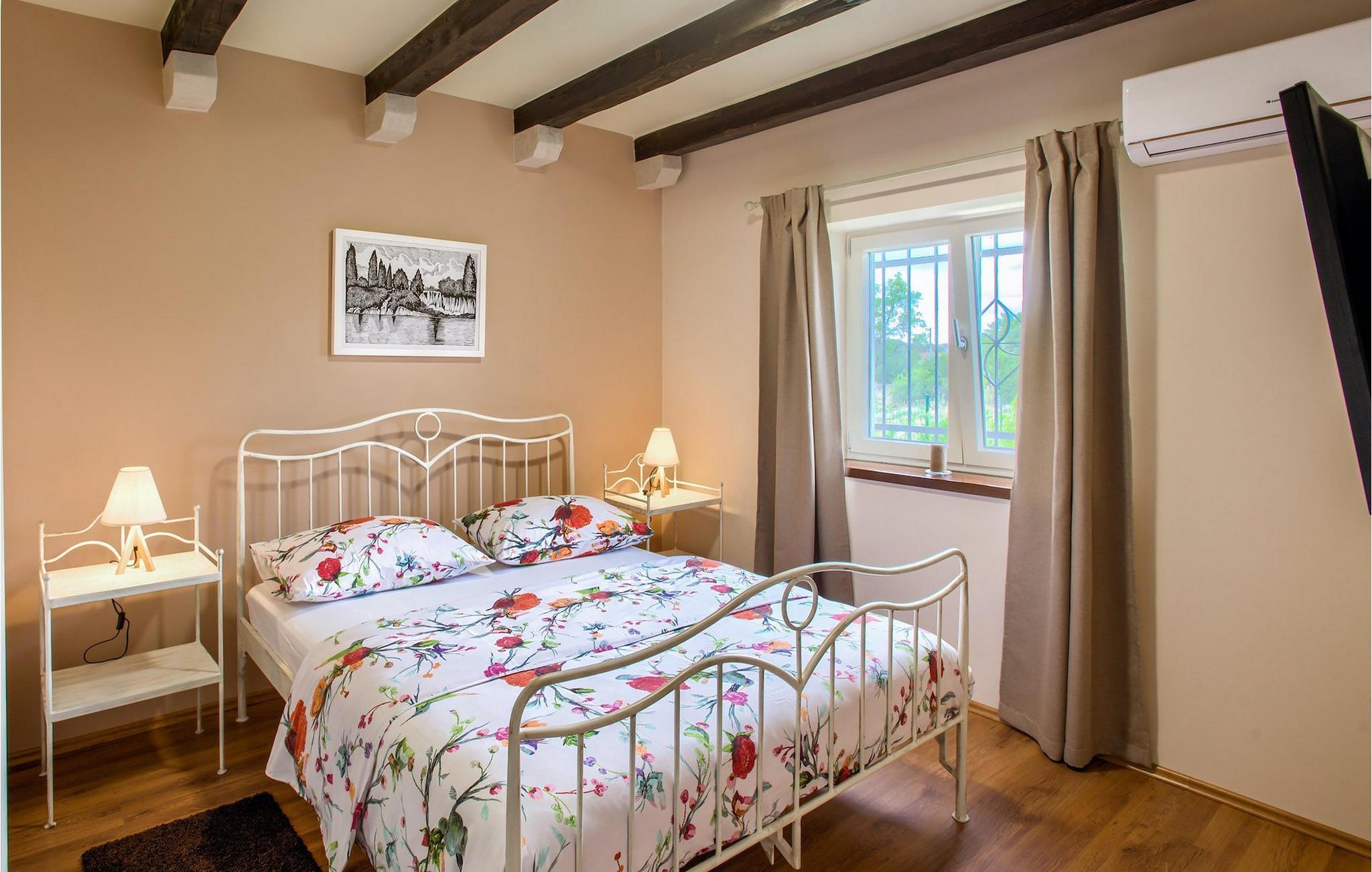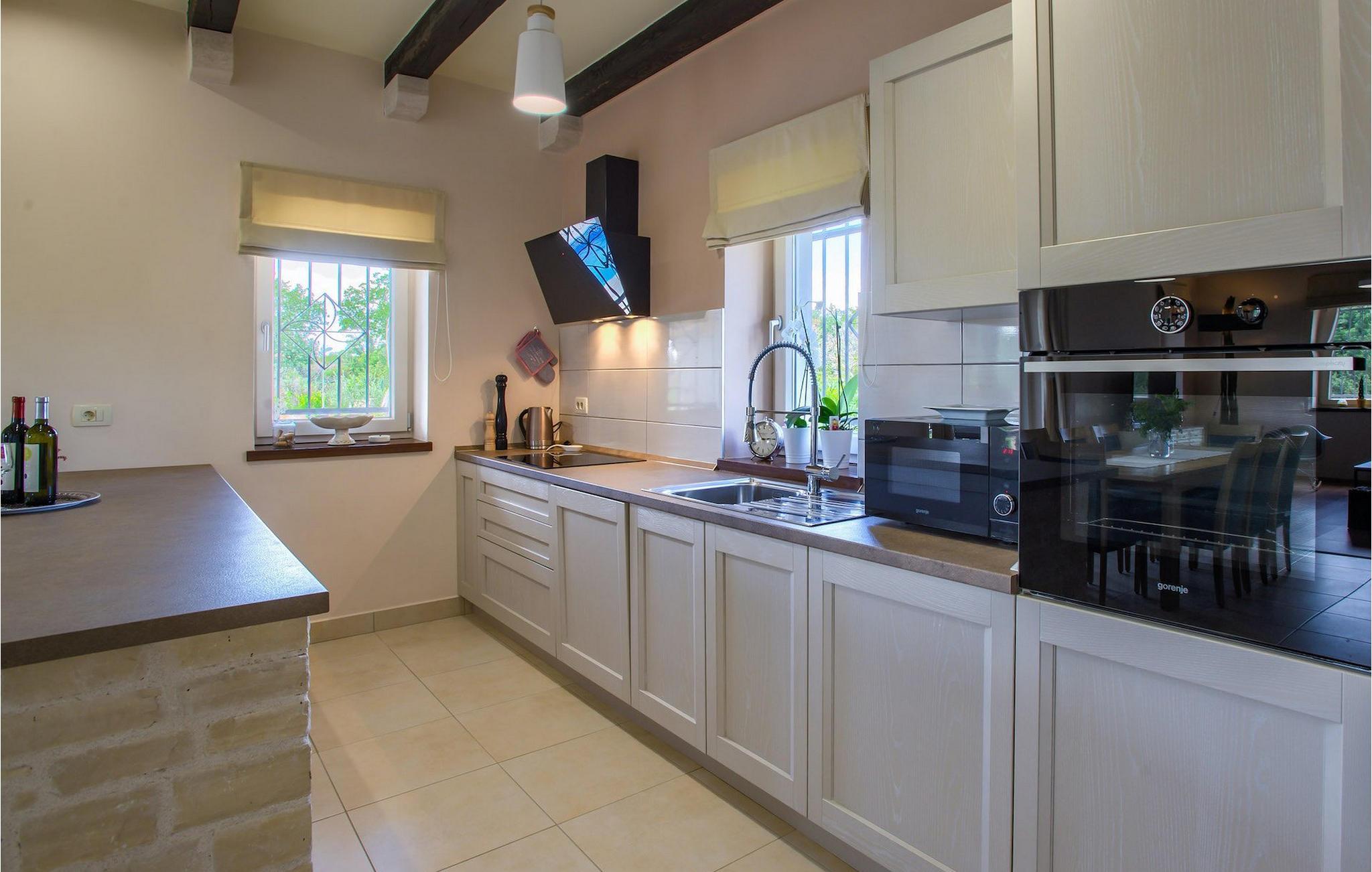 Villa Mary verbindet die Eigenschaften des dalmatinischen Hinterlandes mit ihrem Aussehen und ihrer Umgebung. Das Exterieur aus Stein, das sich auch in der Inneneinrichtung spiegelt, Holzbalken an den Decken und die Holzdetails der Möbel verströmen dalmatinischen Charme, aber alle Annehmlichkeiten für einen modernen Lebensstil sind natürlich vorhanden. Dieses einstöckige Haus ist eine ausgezeichnete Wahl für Familien mit Kindern, da alle Zimmer leicht zugänglich sind. Der offene Grundriss von Wohnzimmer, Esszimmer und Küche ermöglicht einen direkten Zugang zur schönen Außenterrasse. Vier geräumige Schlafzimmer, Badezimmer in jedem Zimmer und Annehmlichkeiten in Form von Klimaanlage und Fernseher stellen Ihre Privatsphäre und Komfort für optimale Erholung sicher. Verbringen Sie Ihre Tage im Pool, umgeben von Olivenbäumen und dem Duft von Lavendel für die nötige Abkühlung in der Sommerhitze oder bei einem Drink auf den vielen Liegestühlen rund um den Pool. Auch Ihre Kleinen kommen nicht zu kurz am Pool, aber auch mit den eigens für sie aufgestellten Schaukeln im Garten. Beginnen Sie Ihren Tag mit einem Morgenkaffee und lassen Sie diesen mit dem Abendessen auf der Außenterrasse mit herrlichem Blick auf den Garten ausklingen.Das dalmatinische Hinterland, insbesondere die Gegend um Šibenik, ist bekannt für die wunderschöne Natur, hervorragendes Klima und köstliche Küche. Nur eine kurze Autofahrt von der Villa entfernt finden Sie Berge, wunderschöne Wasserfälle im Nationalpark Krka und die sonnige kroatische Küste. Wenn Sie gerne erkunden, empfehlen wir Ihnen, die Stadt Šibenik zu besuchen, die für ihr reiches kulturelles Erbe bekannt ist. Die Sehenswürdigkeiten, die besonders hervorstechen, sind die Kathedrale des Hl. Jakob und die Festung des Hl. Nikolaus, die in die UNESCO-Liste des Weltkulturerbes aufgenommen wurden. Die Villa befindet sich auch in der Nähe der Schlucht des Flusses Cikola, wo Sie wandern können oder diejenigen, die Adrenalin suchen, können dort die Seilrutsche ausprobieren und die Region aus der Vogelperspektive erleben.