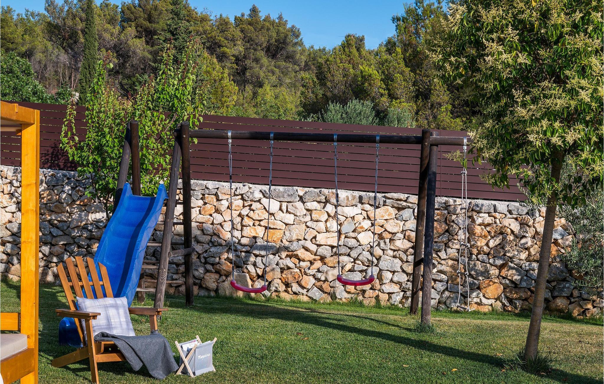 Den imponerende Villa Lantina ligger på en idyllisk grund nær byen Šibenik, men langt fra folkemængderne. Det smagfuldt møblerede og komfortabelt udstyrede interiør tilbyder rigelig plads til afslapning og socialt samvær med en stor familie eller en gruppe venner. Skab kulinariske lækkerier i det rummelige, moderne køkken, nyd stilfulde måltider i den lyse spisestue, brug fitnessudstyret til jeres daglige træning, og find sammen til afslappende filmaftener på den store sofa.