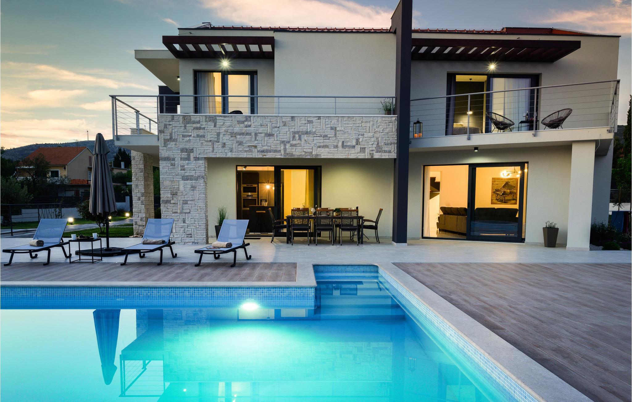 Dette luksushus i Dubrava er designet til at give jer en uforglemmelig ferie med familie eller venner. Det strækker sig over to etager, som er forbundet med indvendige trapper.