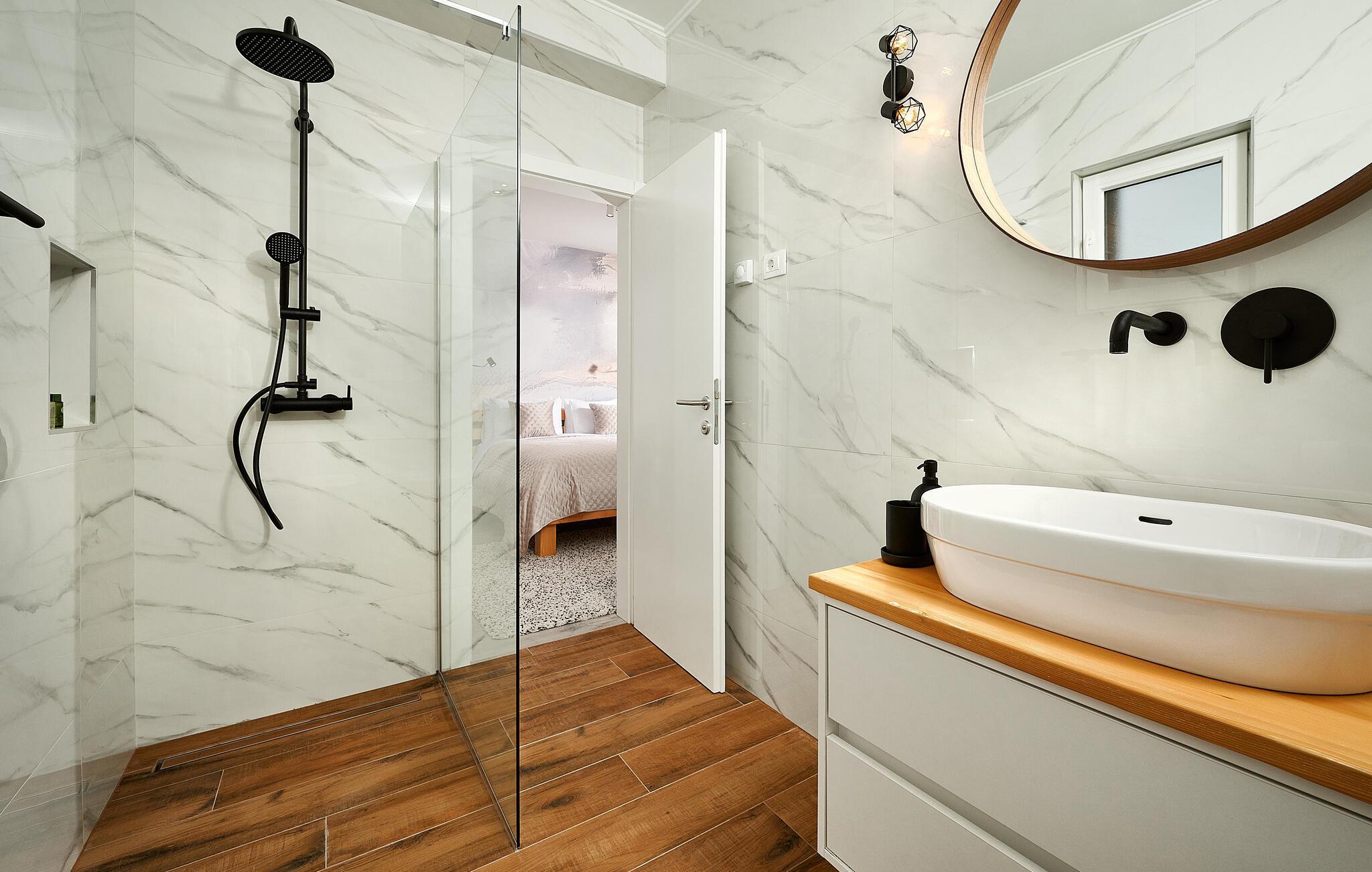 Villaen er en moderne fortolkning af traditionel dalmatisk arkitektur, der kombinerer elementer af sten, træ og glas. Alle værelser i villaen er sydvendte og byder på en fantastisk udsigt, mens de store gulv til loft-vinduer og terrasserne er oplagte en til tidlig kop morgenkaffe på balkonen. Mens stueetagen har en rummelig stue med pejs, et moderne, fuldt udstyret køkken og åben spisestue, har den øverste etage yderligere soveværelser og et område med en sofa, hvor I kan spille konsolspil.