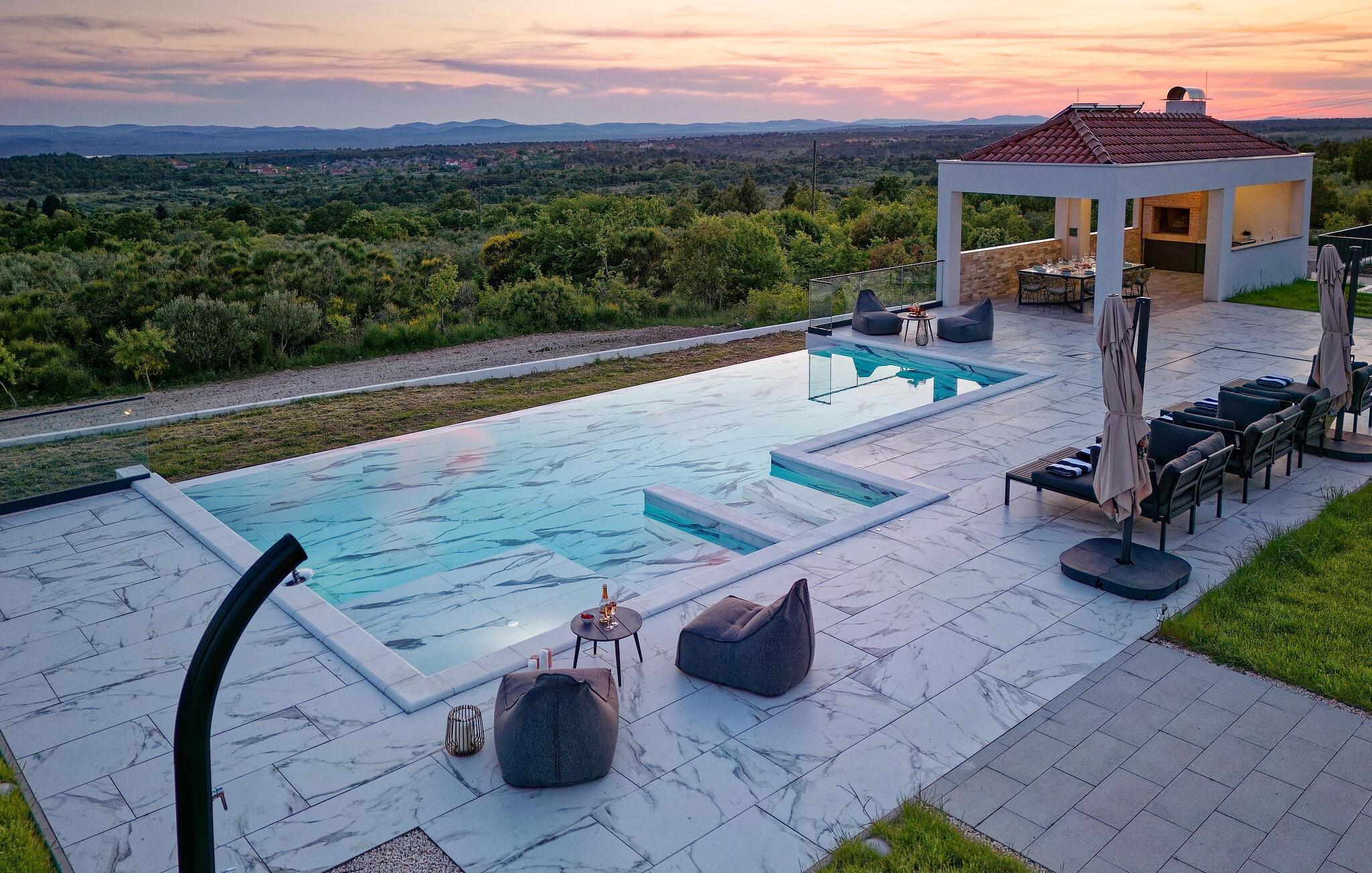Sæt hverdagen på pause og nyd et ophold i denne vidunderlige villa, som nyder godt af Dubravices skønne middelhavsklima. Når I træder ind på grunden, går I forbi fyrretræerne og kan se udsigten over infinity-poolen til søen Prokljan og den omkringliggende natur.