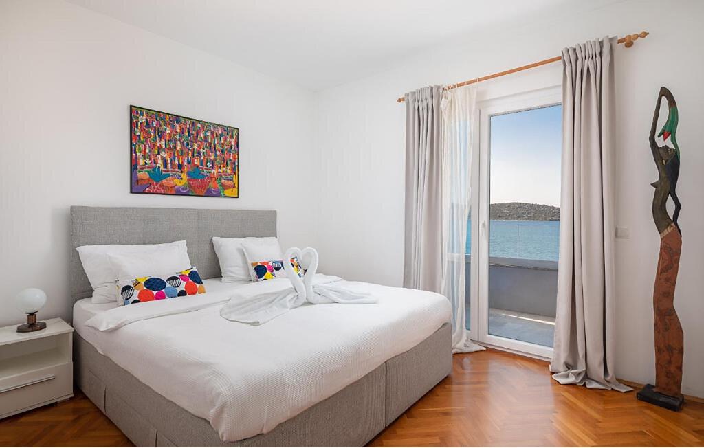 Nyd jeres drømmeferie i dette sensationelle feriehus med pool ved havet. Beliggende direkte på en plateaustrand byder dette rummelige og luksuriøse feriehus jer velkommen og tilbyder en stilfuld atmosfære for jer og jeres venner eller familie. Skab kulinariske lækkerier, nyd afslappede måltider og saml jer til hyggelige filmaftener i den indbydende sofa. Udendørsområdet tilbyder alt, hvad I behøver for at nyde det vidunderlige klima. Forfrisk jer i poolen, beundr udsigten over det blå hav, slap af på komfortable liggestole og snak over et glas vin under stemningsfulde grillfester, mens de lune sommeraftener forsvinder ind i natten. Udforsk den historiske gamle bydel i Šibenik og slentr gennem de smalle gader med caféer. Tag en bådtur til Kornatiøerne og snorkel i krystalklare bugter. Beundr de spektakulære vandfald i Krka Nationalpark, cykl langs kysten, besøg lokale vingårde og olivenlunde, og oplev betagende solnedgange på stranden eller ved marinaen.