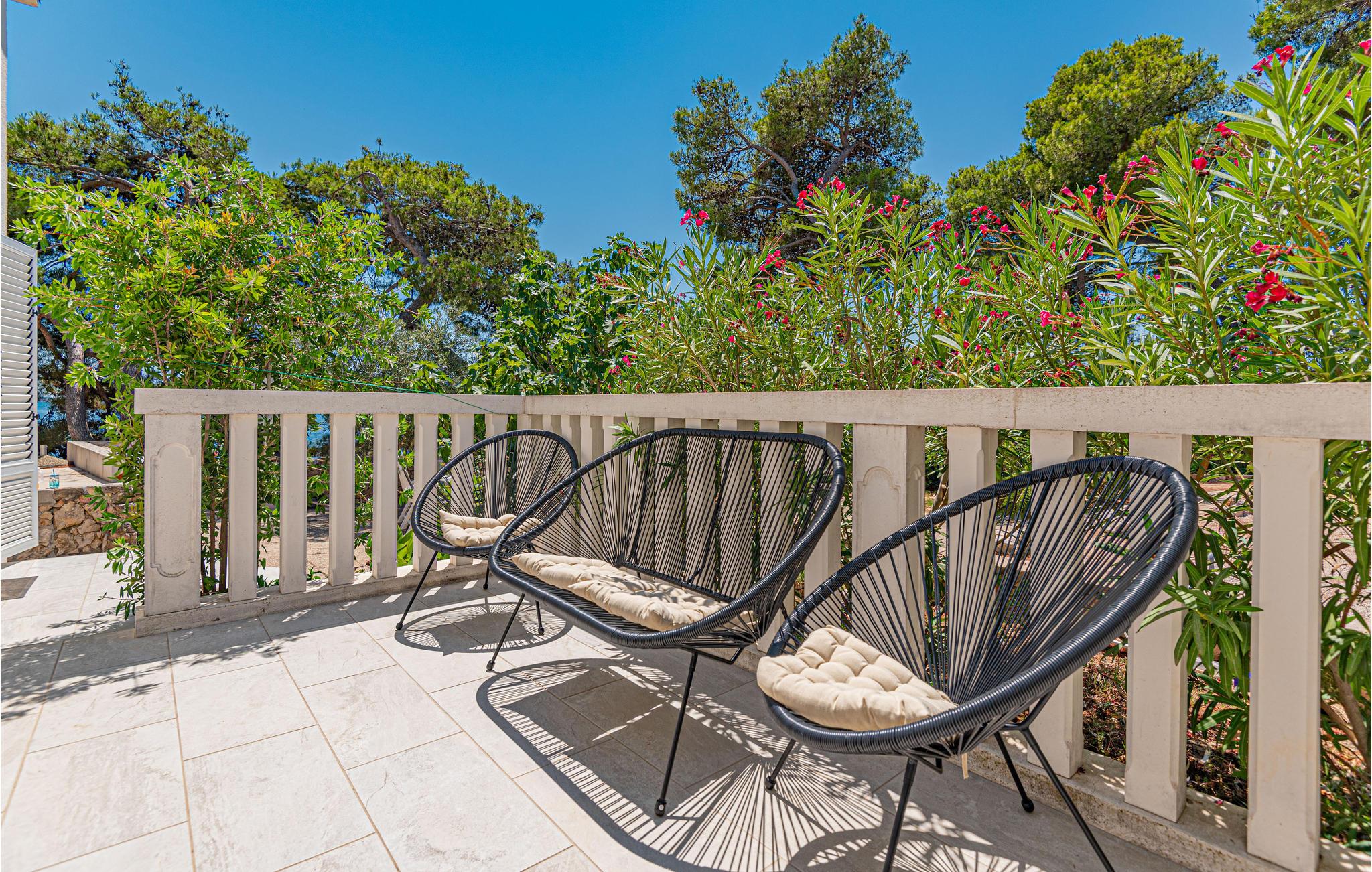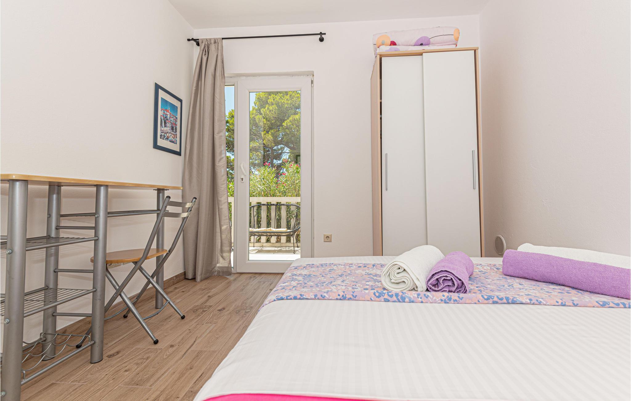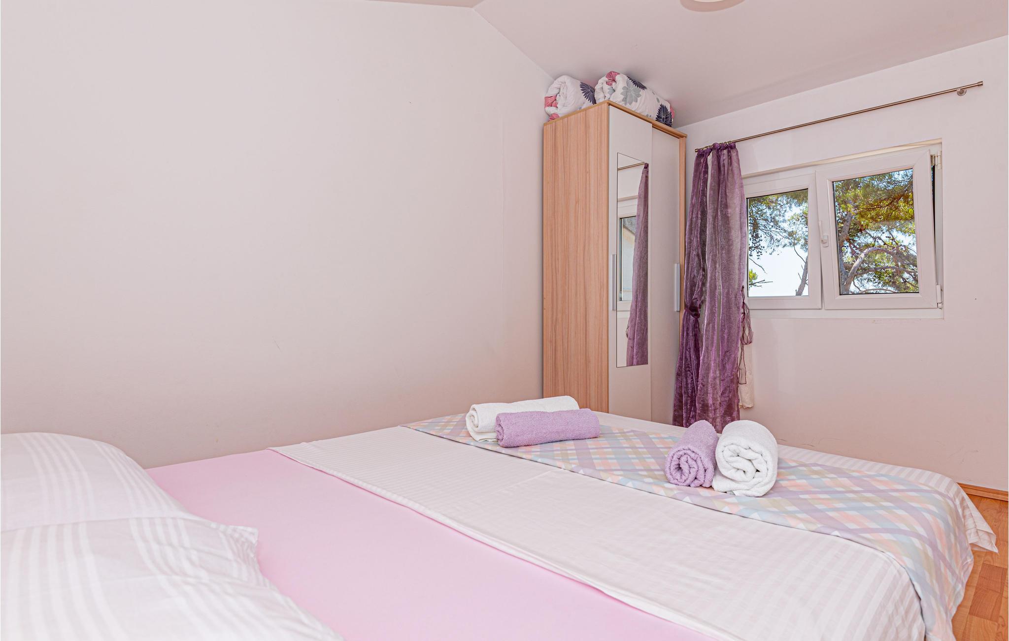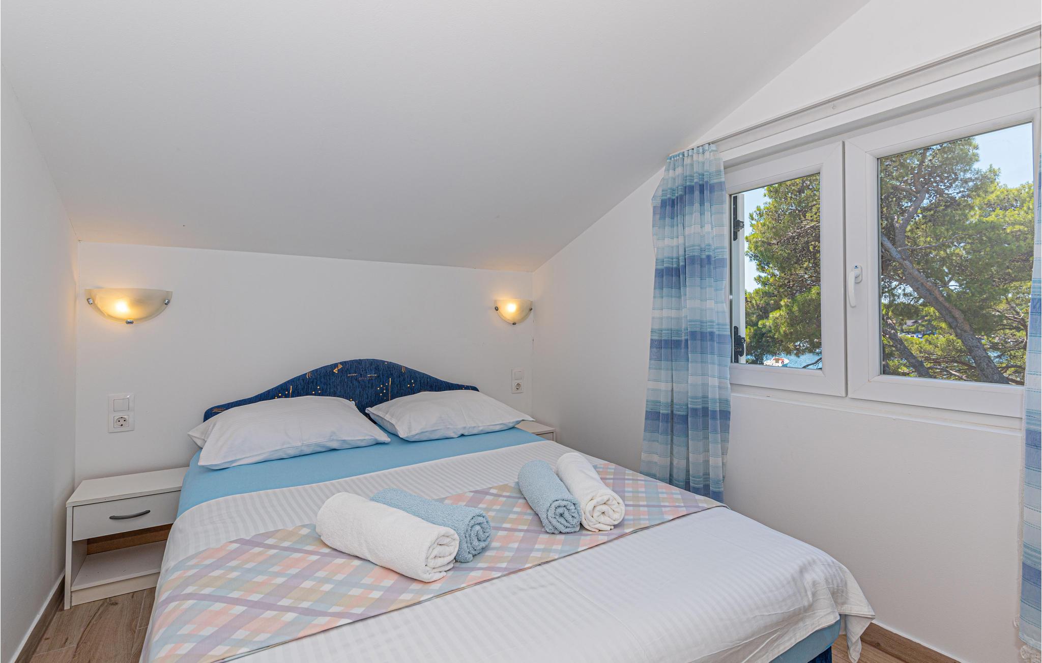 Dette skønne og praktisk indrettede feriehus rummer tre lejligheder. Den større lejlighed ligger i stueplan og to mindre lejligheder ligger på første sal med udgang til den åbne terrasse. Der er indre trappe i huset. Nærheden til havet og den rolige uberørte natur er oplagt til en afslappet ferie. Der er hegn mod de to nærliggende huse, i det ene bor husets ejer. Nyd den skønne udsigt over det skønne klare hav fra begge terrasser. Kan I løsrive jer fra jeres ferieparadis kan vi anbefale en tur til den skønne by Šibenik.