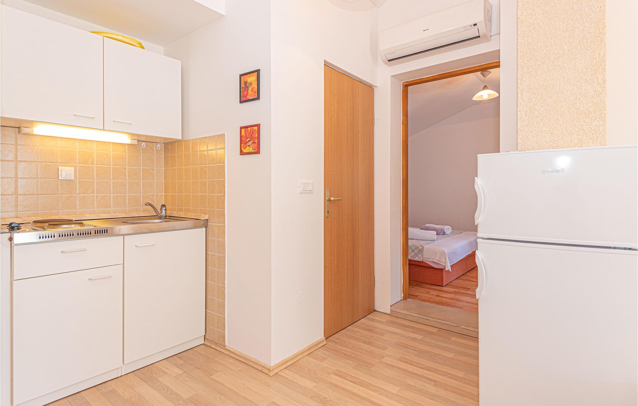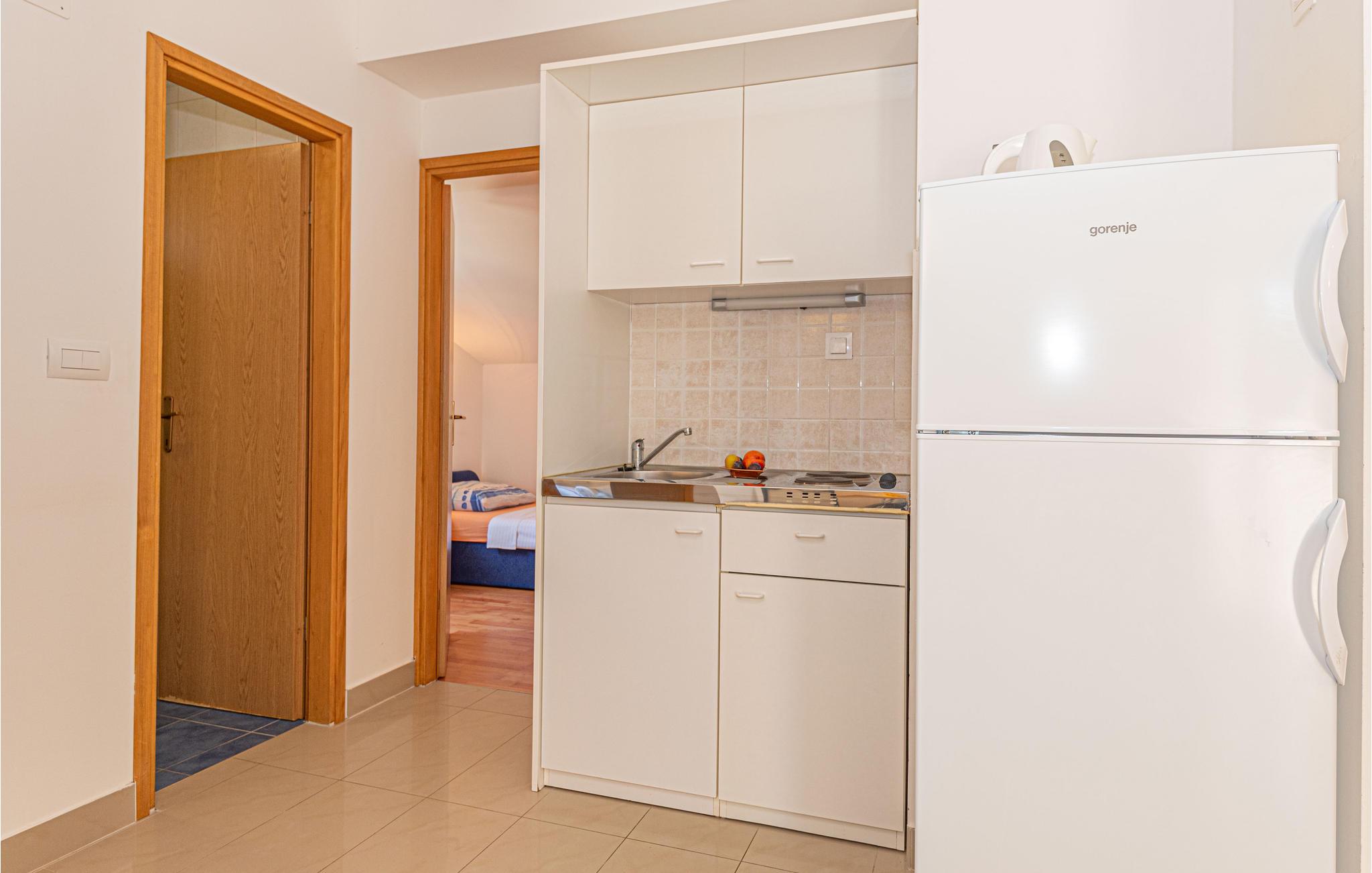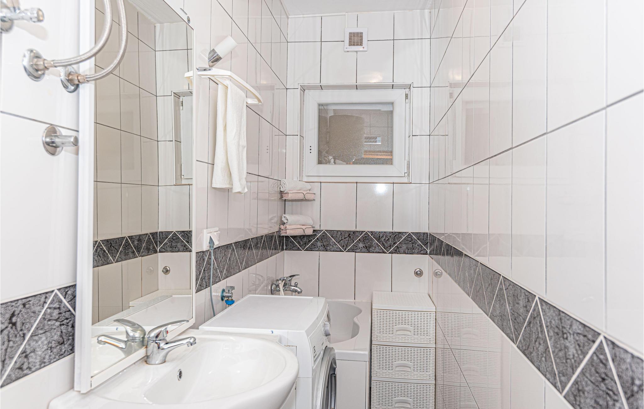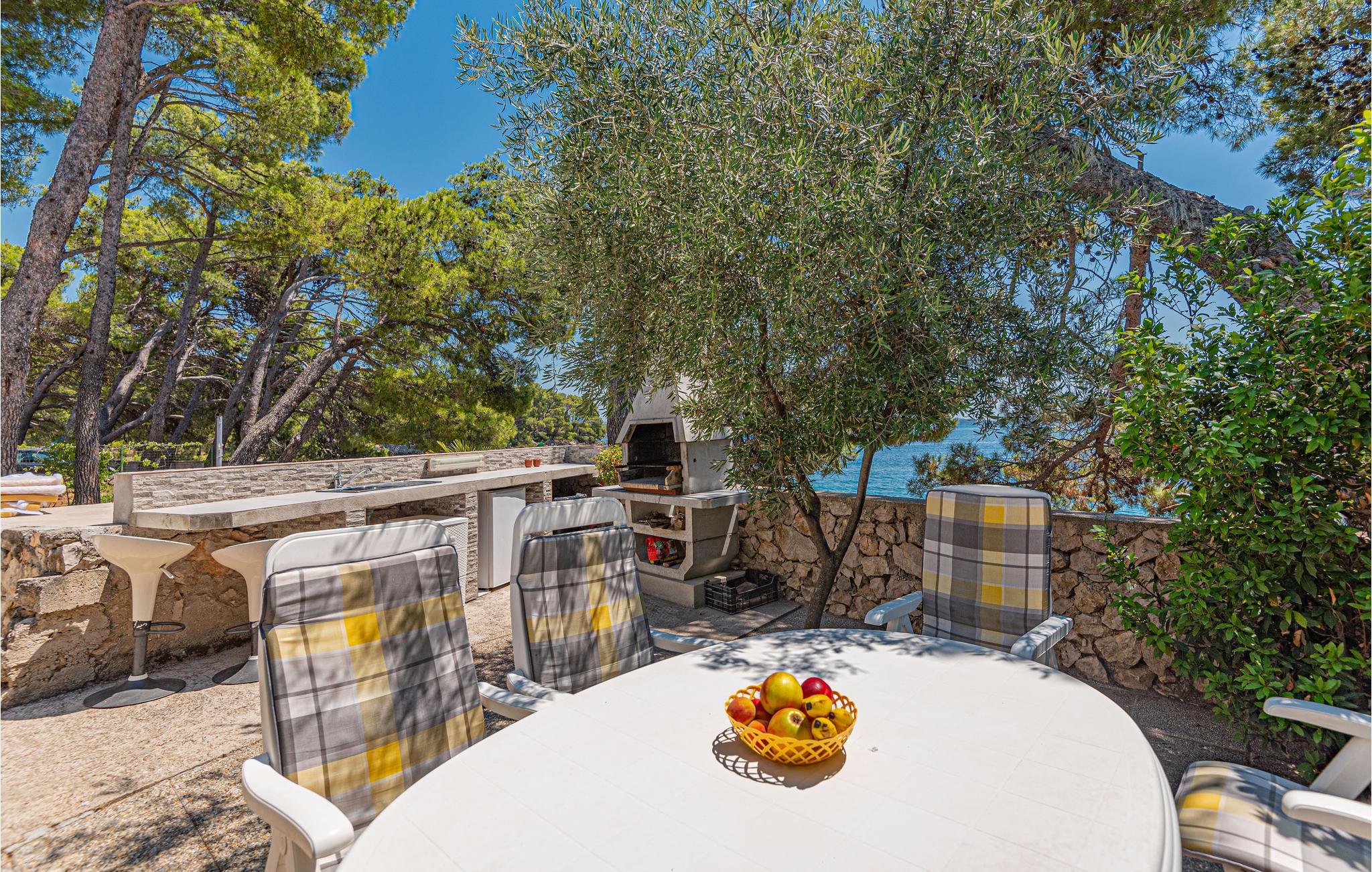 Dette skønne og praktisk indrettede feriehus rummer tre lejligheder. Den større lejlighed ligger i stueplan og to mindre lejligheder ligger på første sal med udgang til den åbne terrasse. Der er indre trappe i huset. Nærheden til havet og den rolige uberørte natur er oplagt til en afslappet ferie. Der er hegn mod de to nærliggende huse, i det ene bor husets ejer. Nyd den skønne udsigt over det skønne klare hav fra begge terrasser. Kan I løsrive jer fra jeres ferieparadis kan vi anbefale en tur til den skønne by Šibenik.