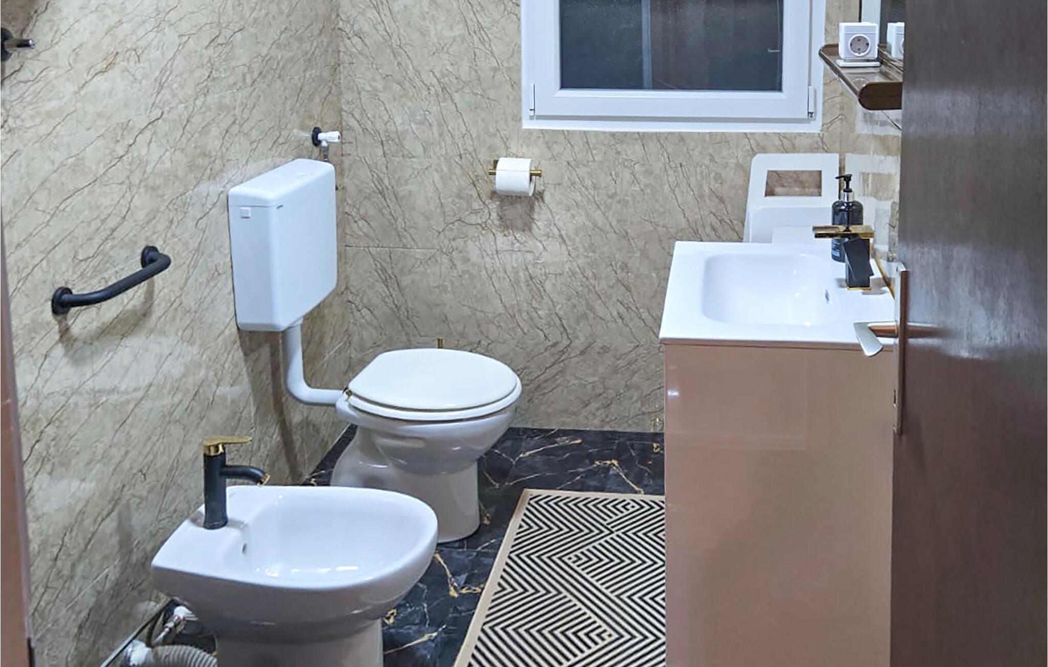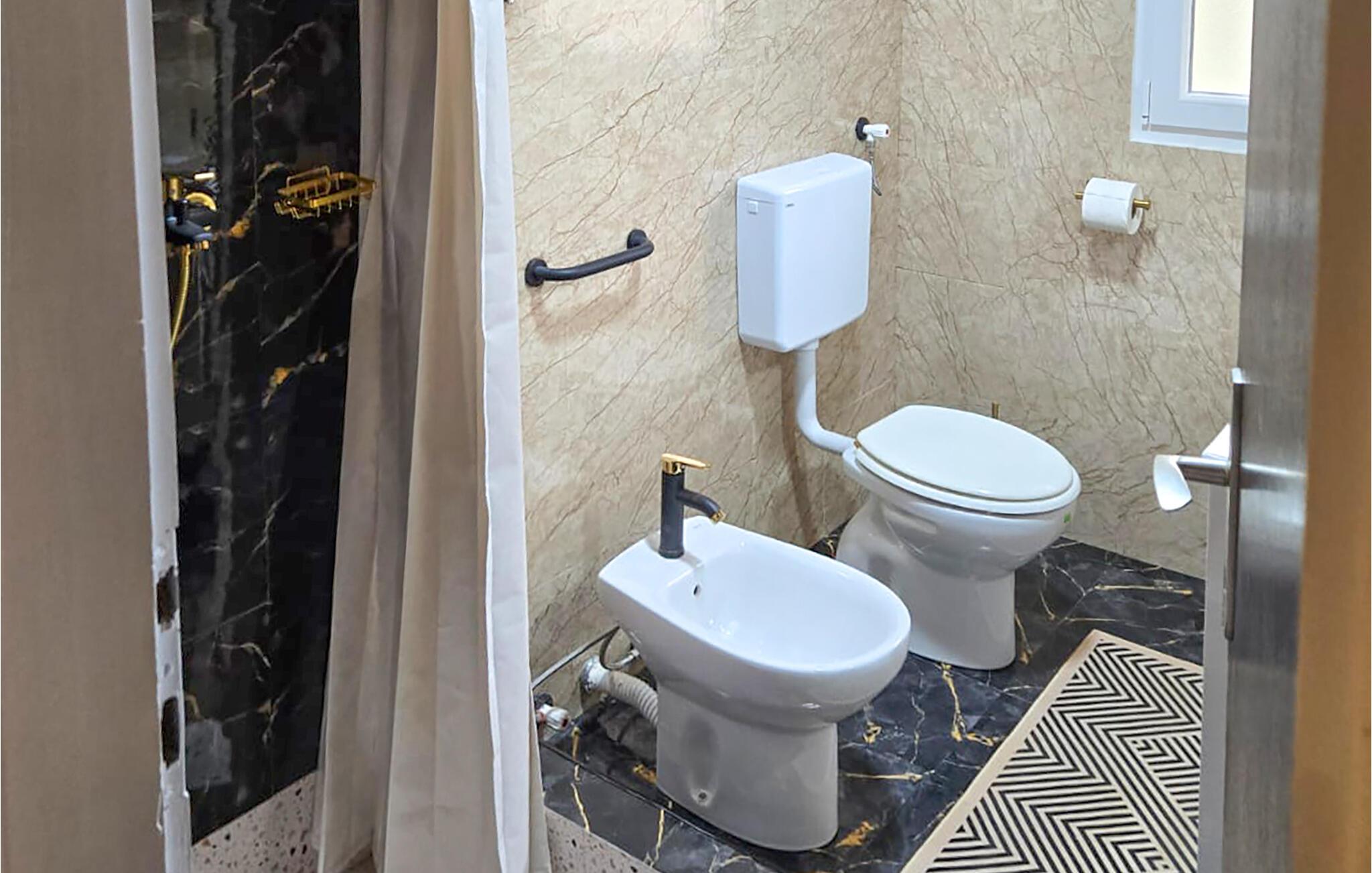 Badeværelse (nr. 1) - WC. Varmt og koldt vand. Bruser