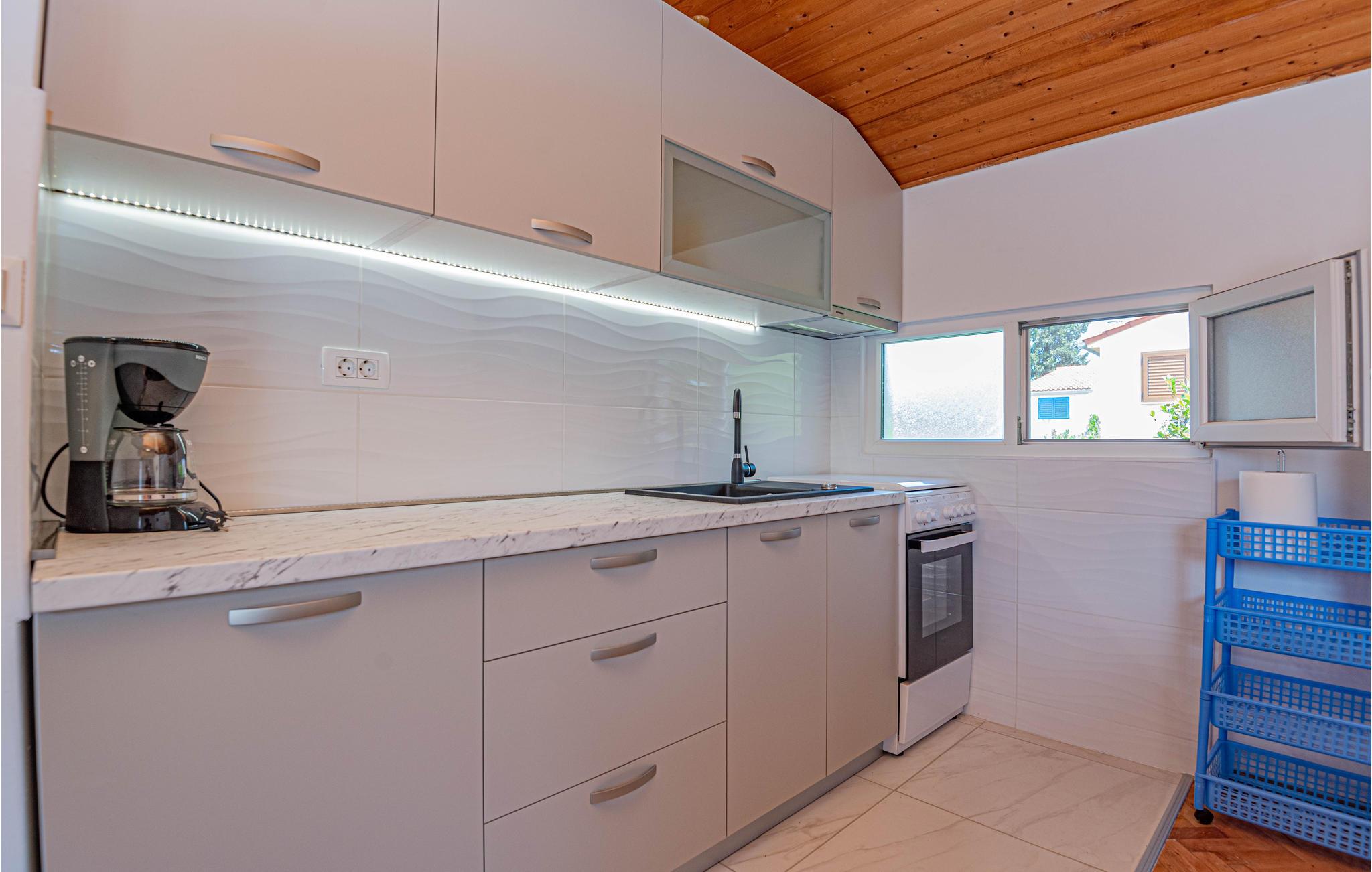 Disse enkelt indrettede ferielejligheder med havudsigt ligger i samme private ejendom og er oplagte at leje sammen hvis I er mange. Genial beliggenhed, da den skønne kiesstrand og det klare hav, kan nå på få minutters gang. Ejendommen har en skøn forhave med smukke og velduftende mediterrane vækster, til fælles brug for husets gæster. Jadrija er en fredelig lille by med skønne strande. Fra havnen er der en betagende udsigt du over kanalen i Šibenik og fæstningen Sv. Nikola. Fra denne populære badeby anbefaler vi bådsudflugter til Šibenik eller cykelture til Vodice.