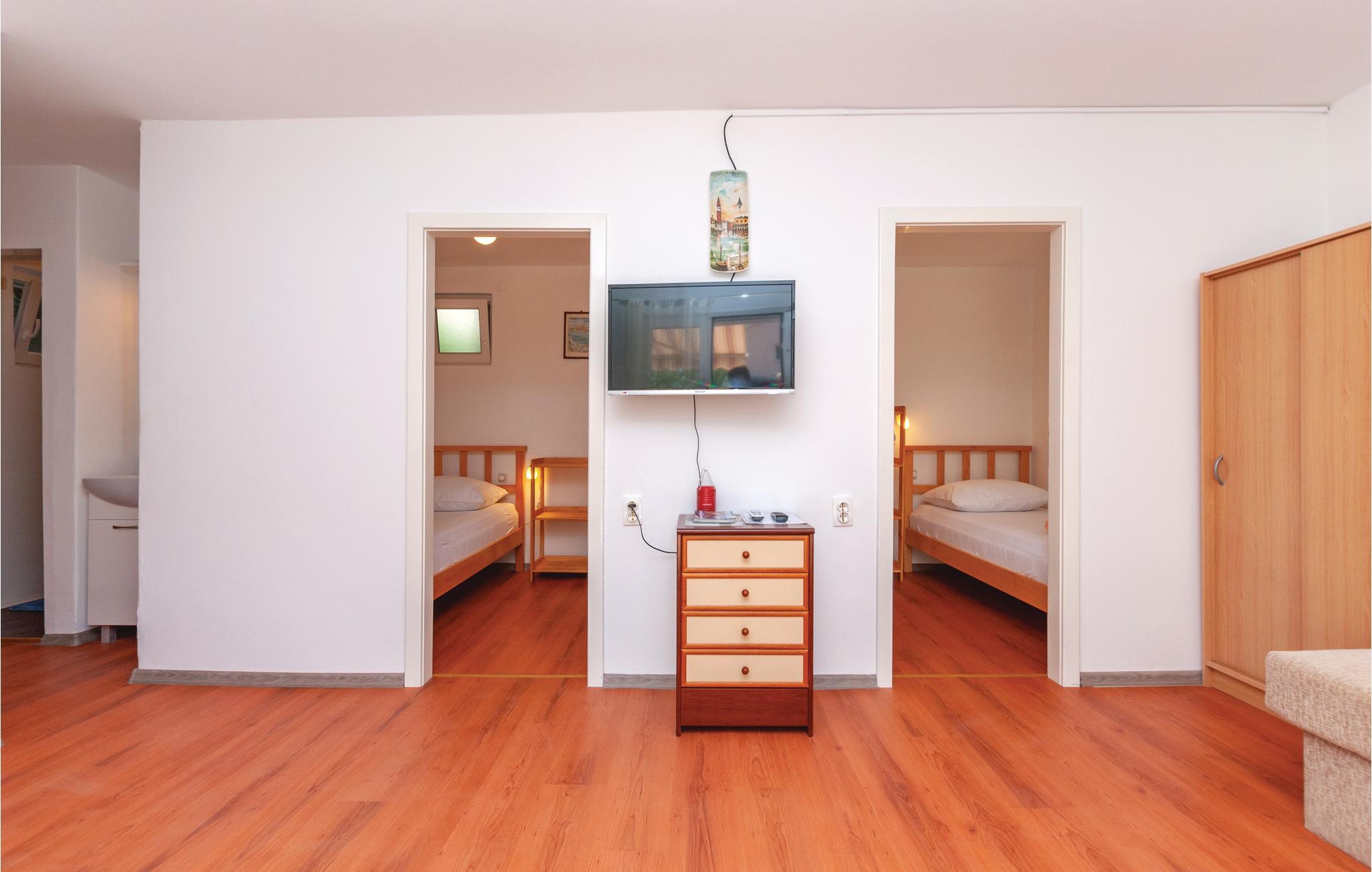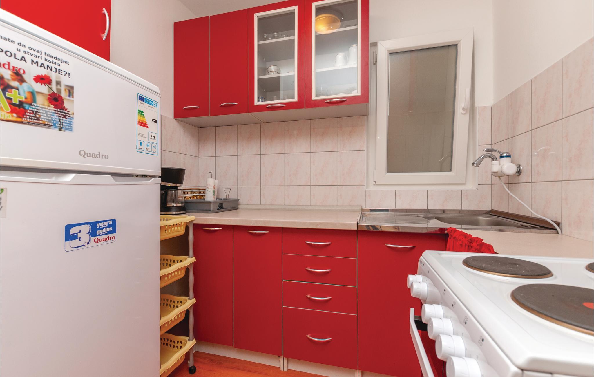 Her fåes en helt genial beliggenhed, da den skønne kieselstrand og det klare hav kan nå på få minutters gang. Ejendommen har en skøn forhave med smukke og velduftende mediterrane vækster, der er til fælles brug for husets gæster. Jadrija er en fredelig lille by med skønne strande.