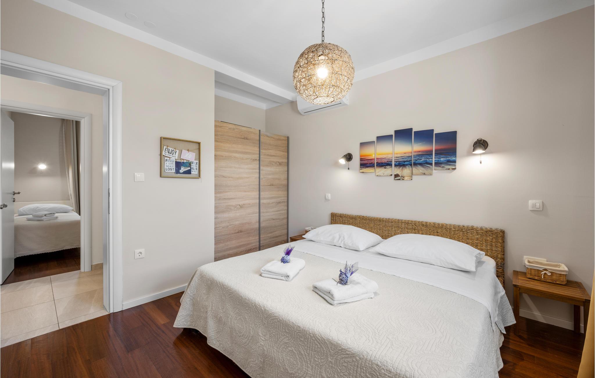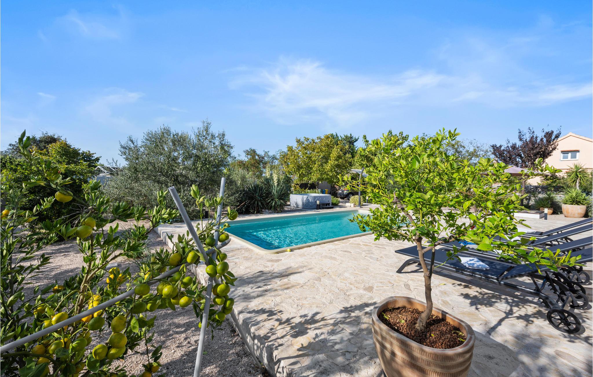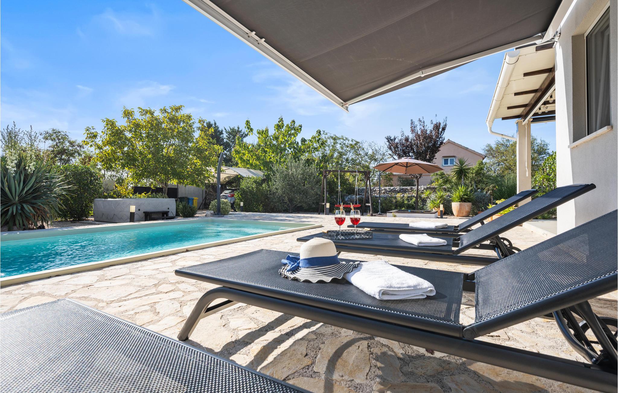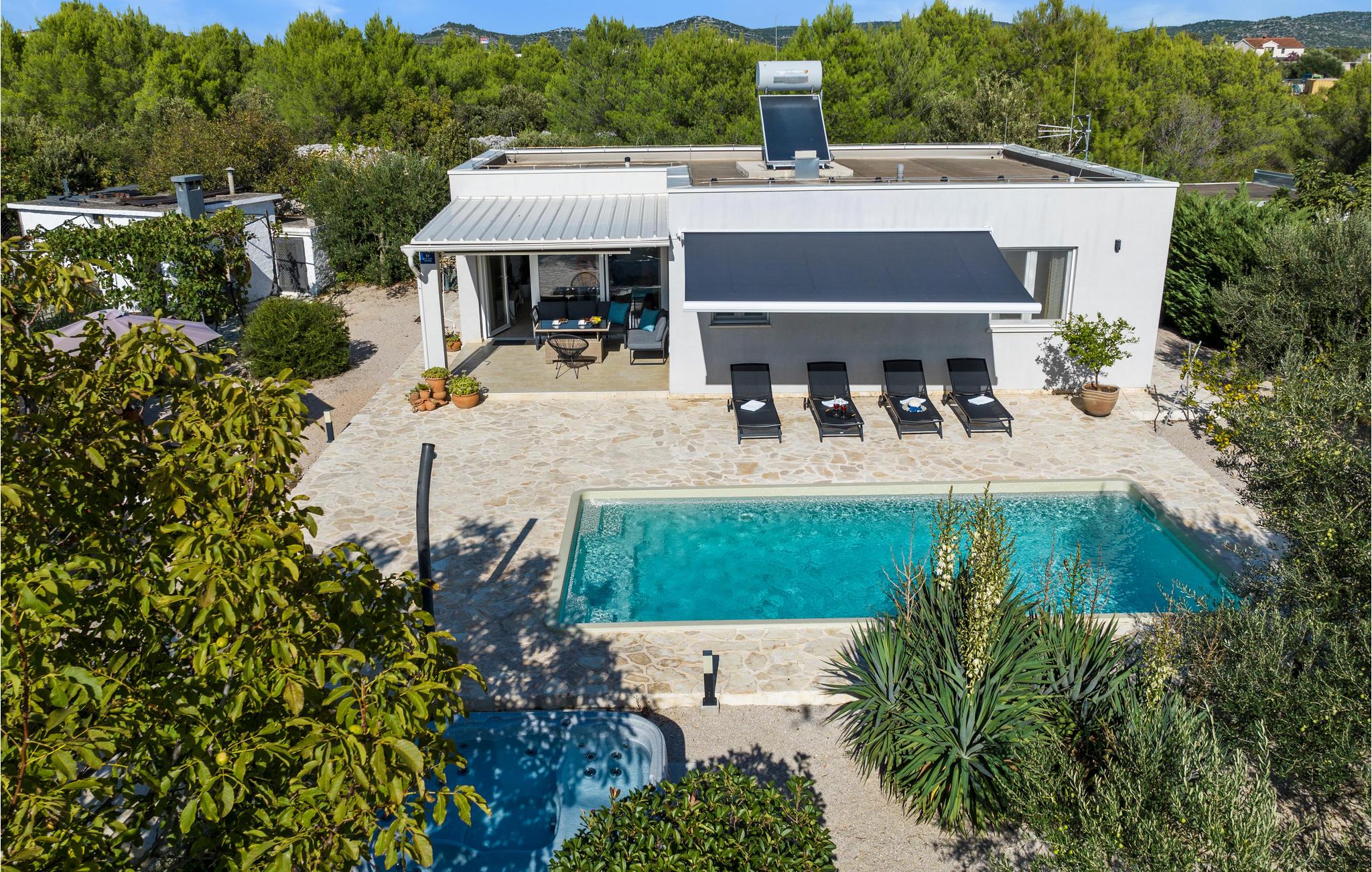 Opfyld de største ønsker til ferie og vælg dette feriehus, der ligger i en lille by, ikke langt fra Šibenik. På den store indhegnede grund er der både pool, whirlpool og legeplads til de små – her kan I tilbringe mange timer. I bor i idylliske omgivelser, langt fra den travle by, omgivet af natur. Denne dalmatiske lille by ligger godt placeret trafikmæssigt, da det kun tager et kvarter at køre il den historiske by Šibenik og den populære ferieby Vodice. I kan tilbringe uforglemmeligt dejlige badedage ved Jadrija og Srima der bare ligger 3 km fra huset.
