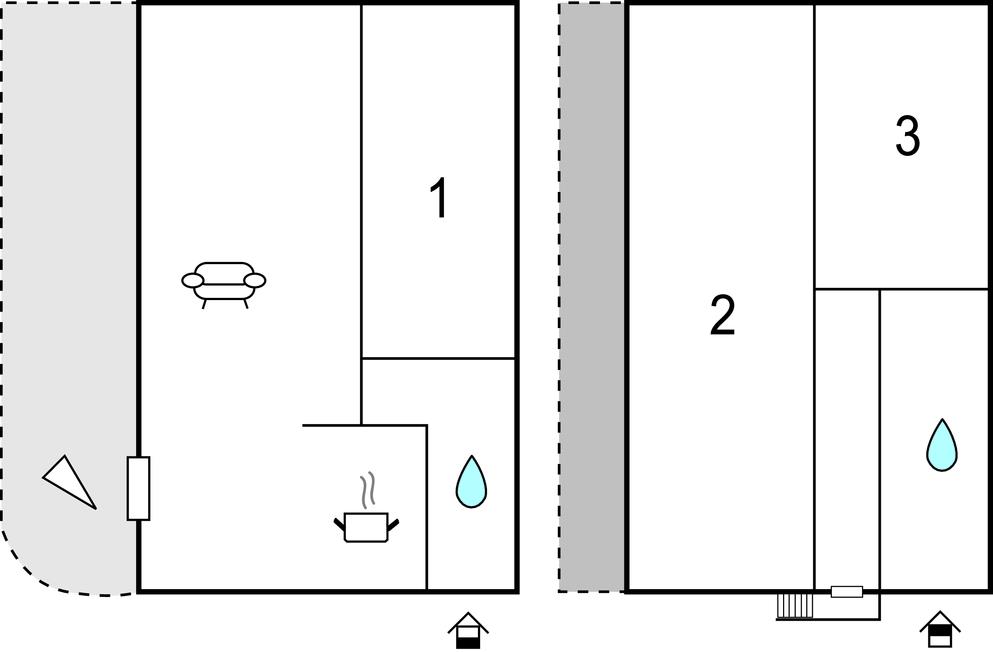 Soveværelse (nr. 2) - 1 Soveplads. (Enkeltseng(e)). 2 Sovepladser. (Dobbeltseng(e)).