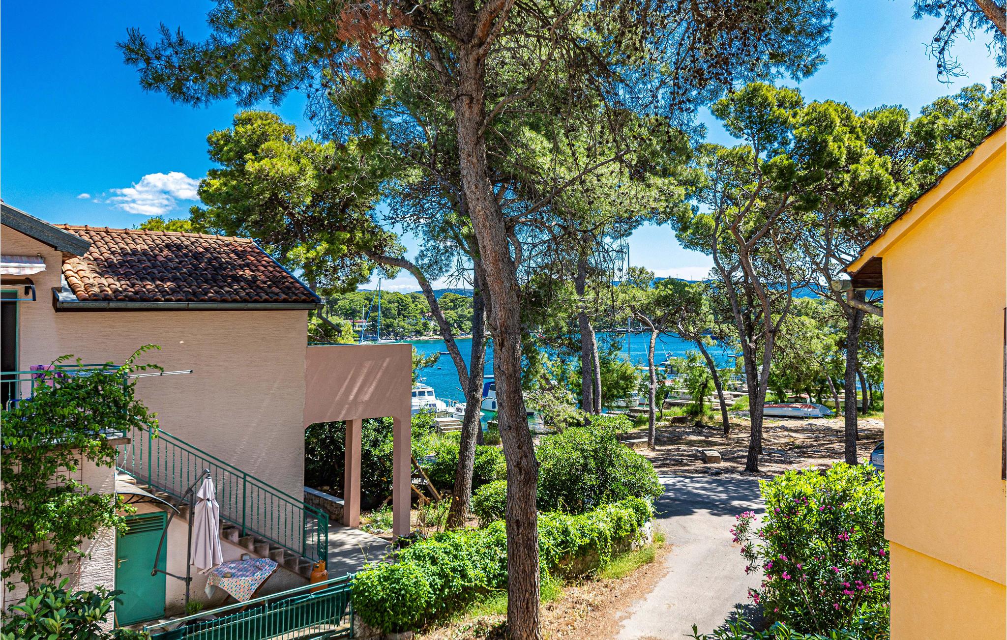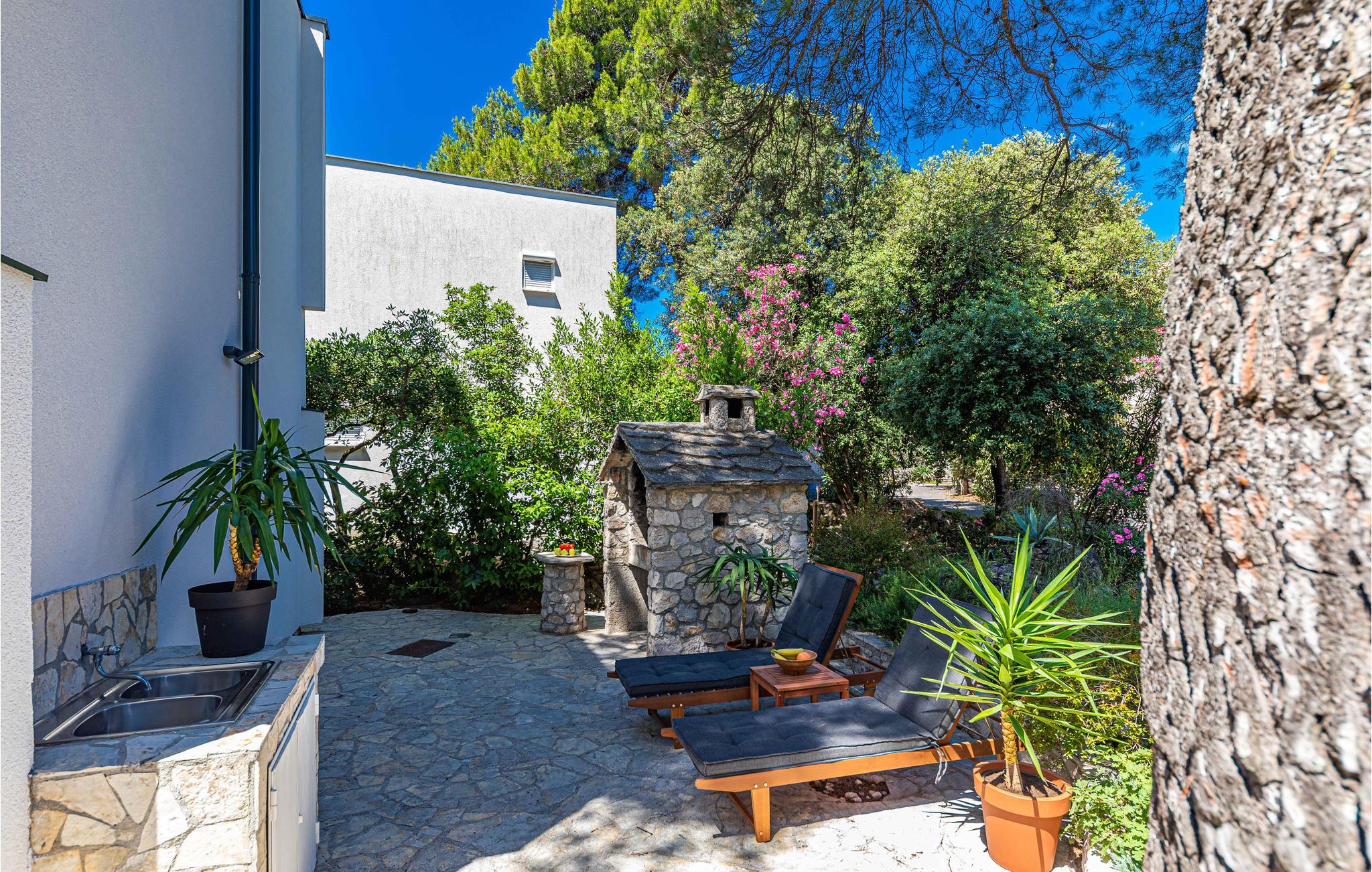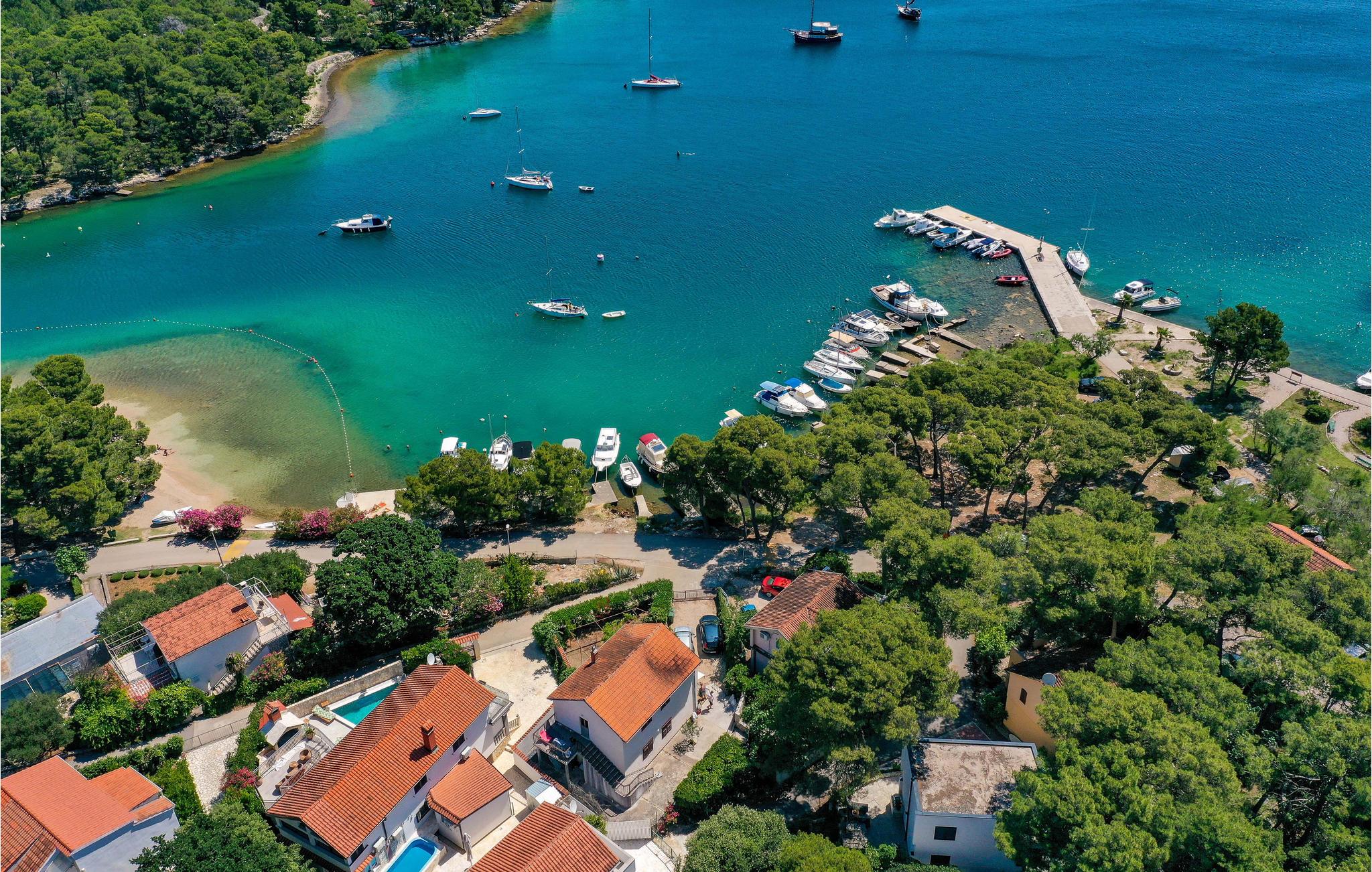 Dette enkelt indrettede feriehus i to etager, der er forbundet med en udendørs trappe. Huset ligger i nærheden af havet og på grunden står flere pinjer, der kaster deres behagelige skygge på varme sommerdage. På grillen i haven kan I tilberede dejlige måltider i fællesskab. En kort tur til fods derfra ligger en børnevenlig kiselstrand. Vi anbefaler en udflugt til byen Vodice, der byder på underholdning til stor og små. Liggeplads til båd efter aftale med ejer.