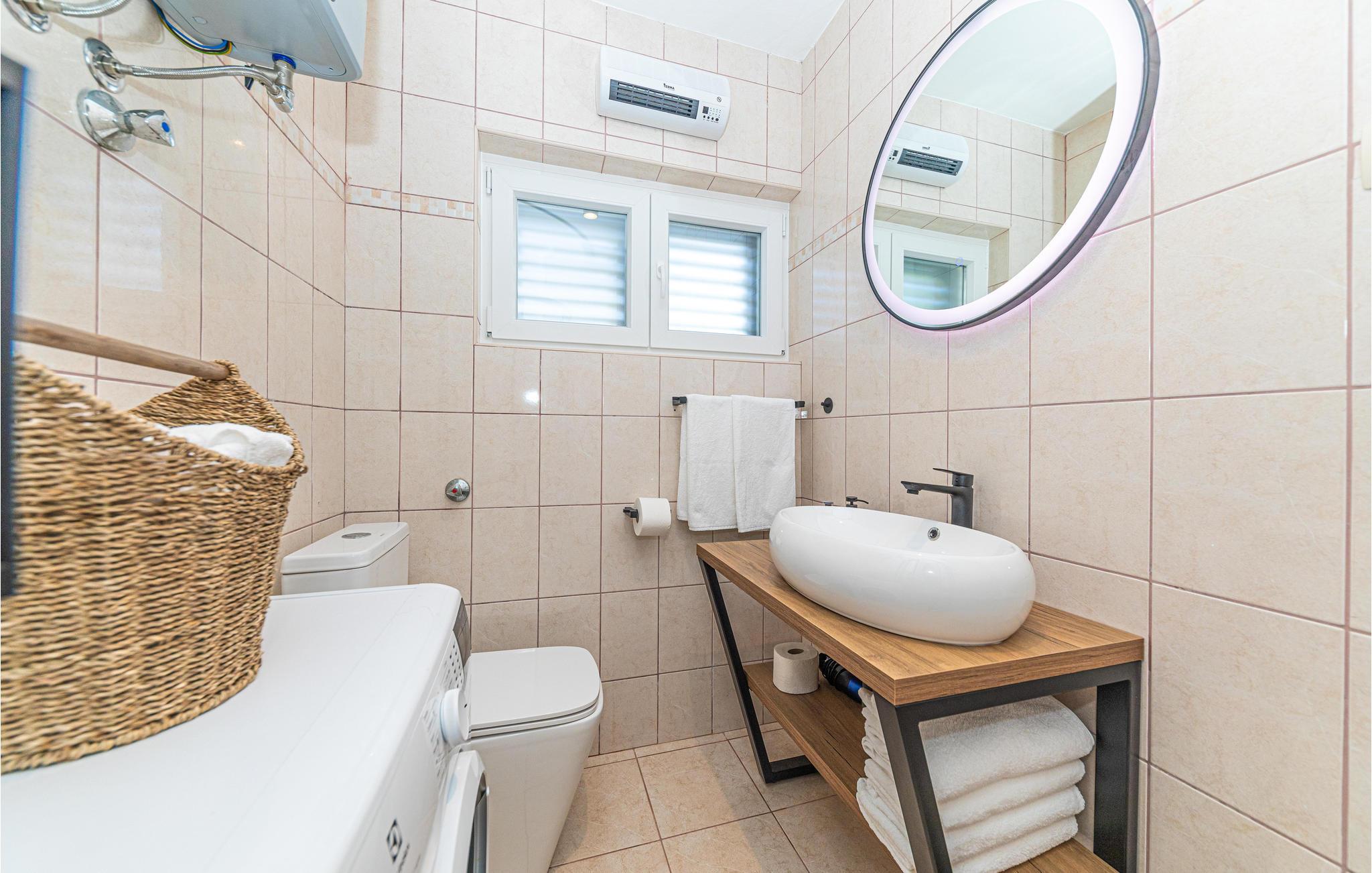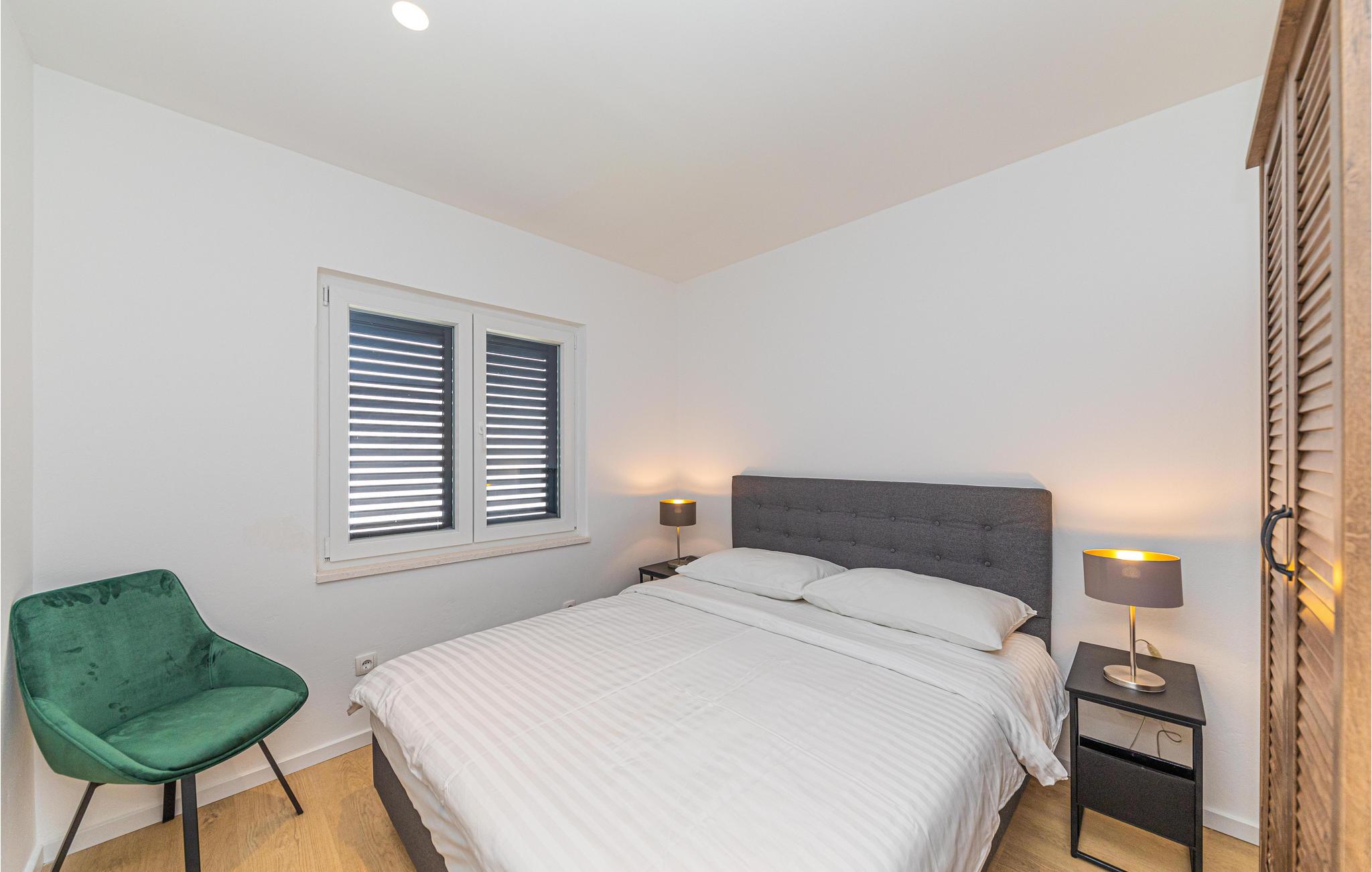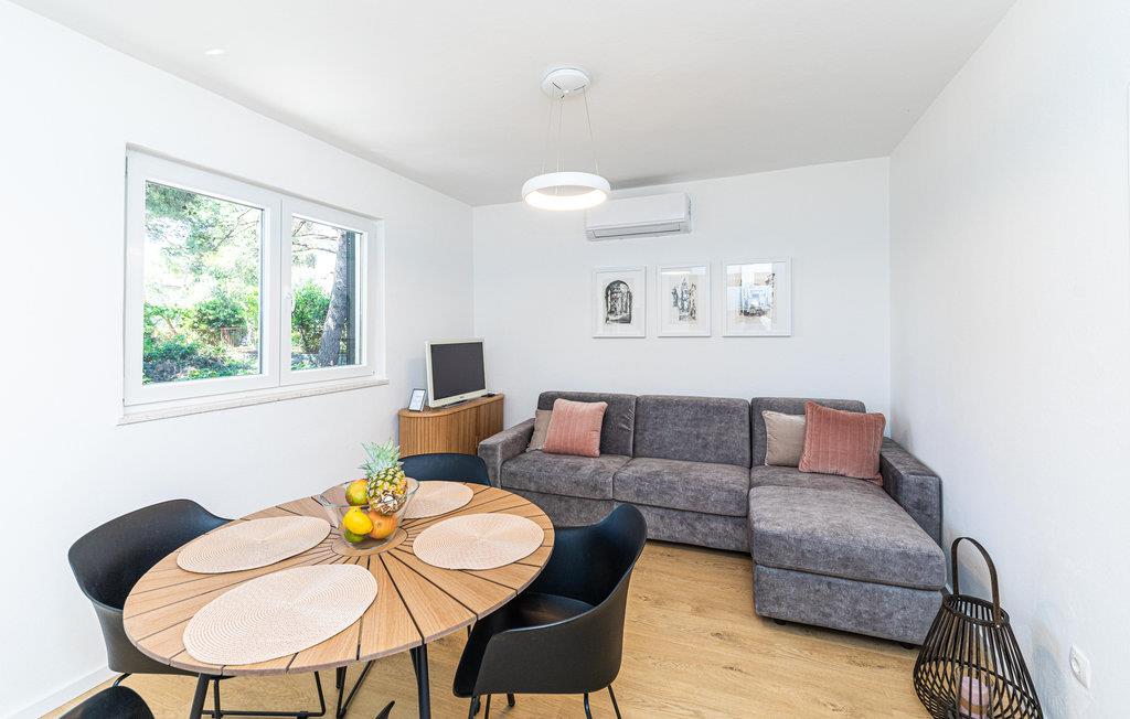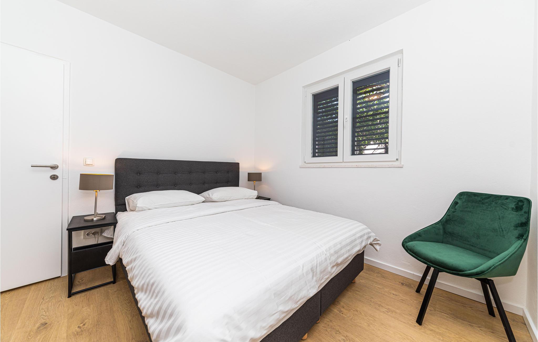 Dette enkelt indrettede feriehus i to etager, der er forbundet med en udendørs trappe. Huset ligger i nærheden af havet og på grunden står flere pinjer, der kaster deres behagelige skygge på varme sommerdage. På grillen i haven kan I tilberede dejlige måltider i fællesskab. En kort tur til fods derfra ligger en børnevenlig kiselstrand. Vi anbefaler en udflugt til byen Vodice, der byder på underholdning til stor og små. Liggeplads til båd efter aftale med ejer.