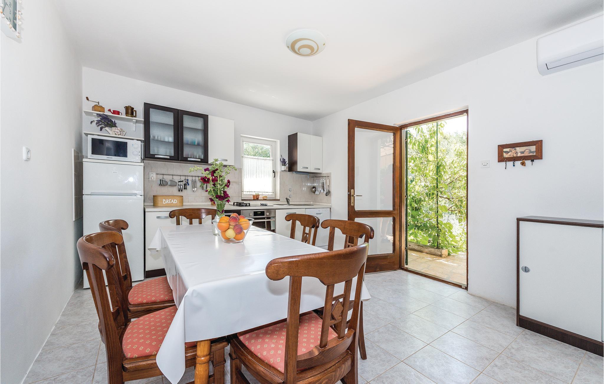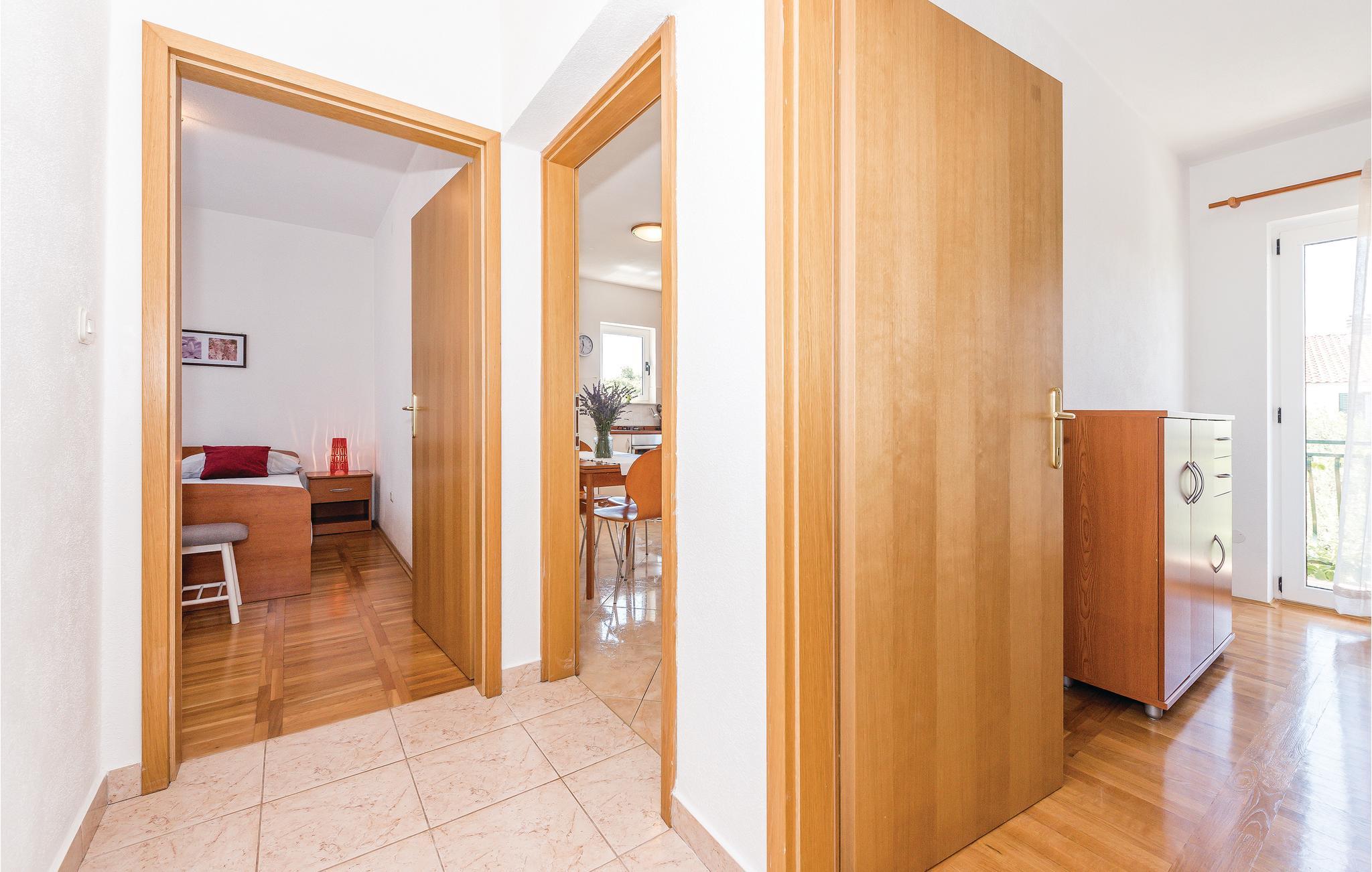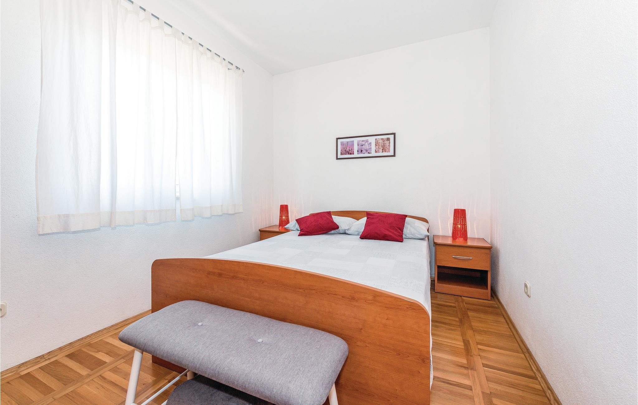 Dette rummelige og funktionelt indrettede sommerhus befinder sig i landsbyen Jadrija i nærheden af en lang sandstrand. Ejendommen består af to ferielejligheder, der er forbundet af en udvendig trappe. Sommerhuset egner sig derfor ideelt til familier med børn og alle der er på udkig efter noget privatliv. Den store gårdsplads er til fri afbenyttelse for gæsterne og er et dejligt sted hvor børnene kan løbe og lege. 10 kilometer væk ligger byen Sibenik. Udflugter til de omkringliggende nationalparker anbefales. Nyd de mange solskinstimer og det lune hav, på nabobyen Srimas lange sandstrande der indbyder til lange afslappede badedage.