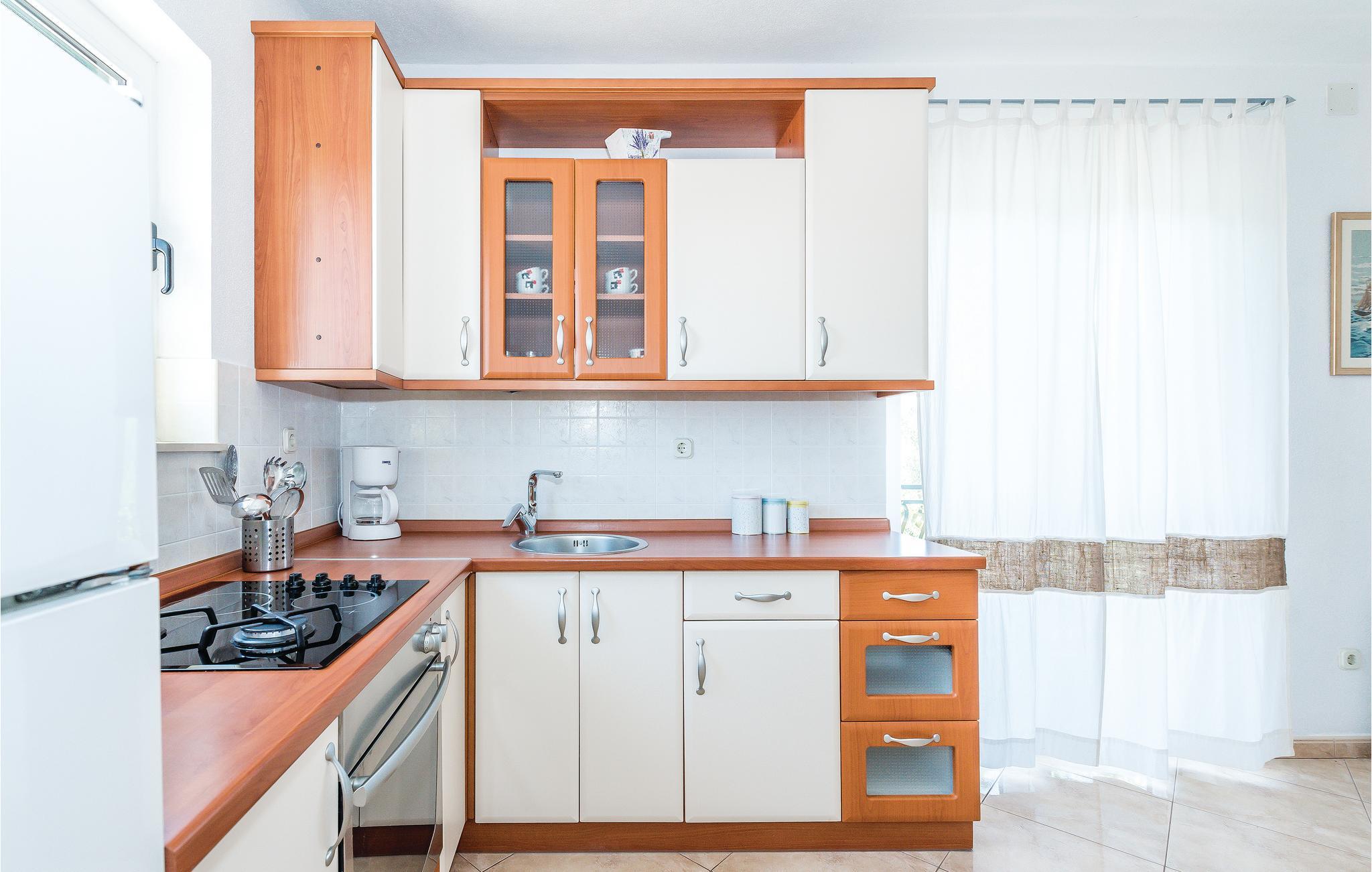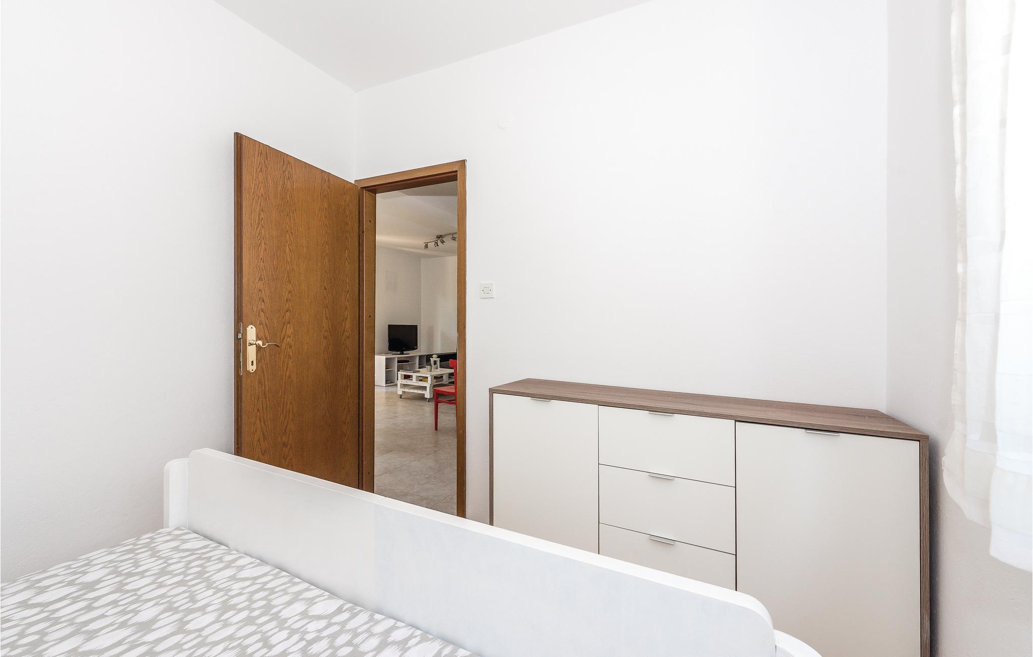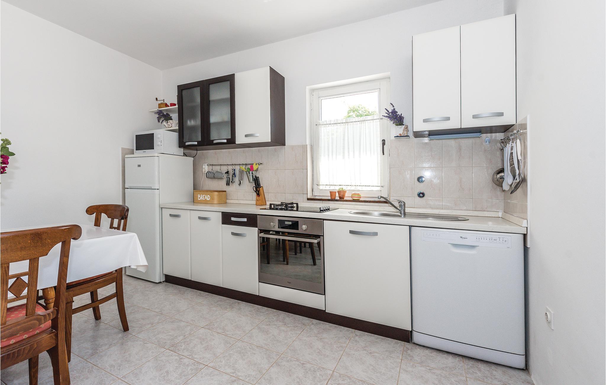 Dette rummelige og funktionelt indrettede sommerhus befinder sig i landsbyen Jadrija i nærheden af en lang sandstrand. Ejendommen består af to ferielejligheder, der er forbundet af en udvendig trappe. Sommerhuset egner sig derfor ideelt til familier med børn og alle der er på udkig efter noget privatliv. Den store gårdsplads er til fri afbenyttelse for gæsterne og er et dejligt sted hvor børnene kan løbe og lege. 10 kilometer væk ligger byen Sibenik. Udflugter til de omkringliggende nationalparker anbefales. Nyd de mange solskinstimer og det lune hav, på nabobyen Srimas lange sandstrande der indbyder til lange afslappede badedage.