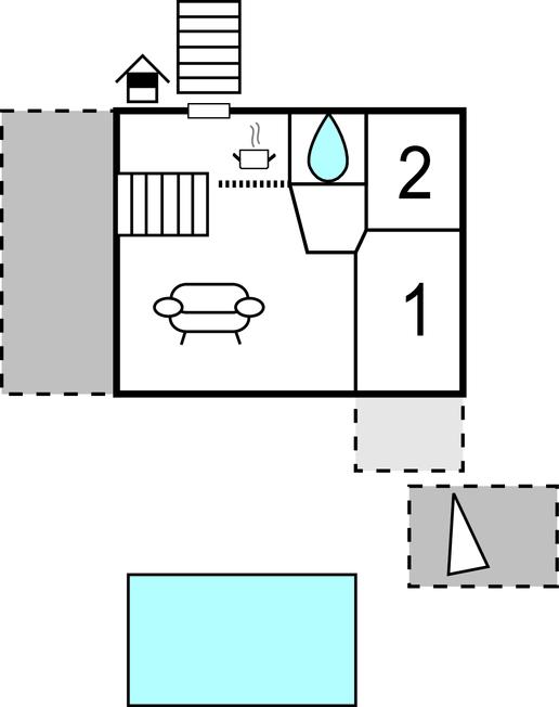 Opholdsstue/køkken 60m2 - 2 Sovepladser. (Sofa, madras eller lignende).
