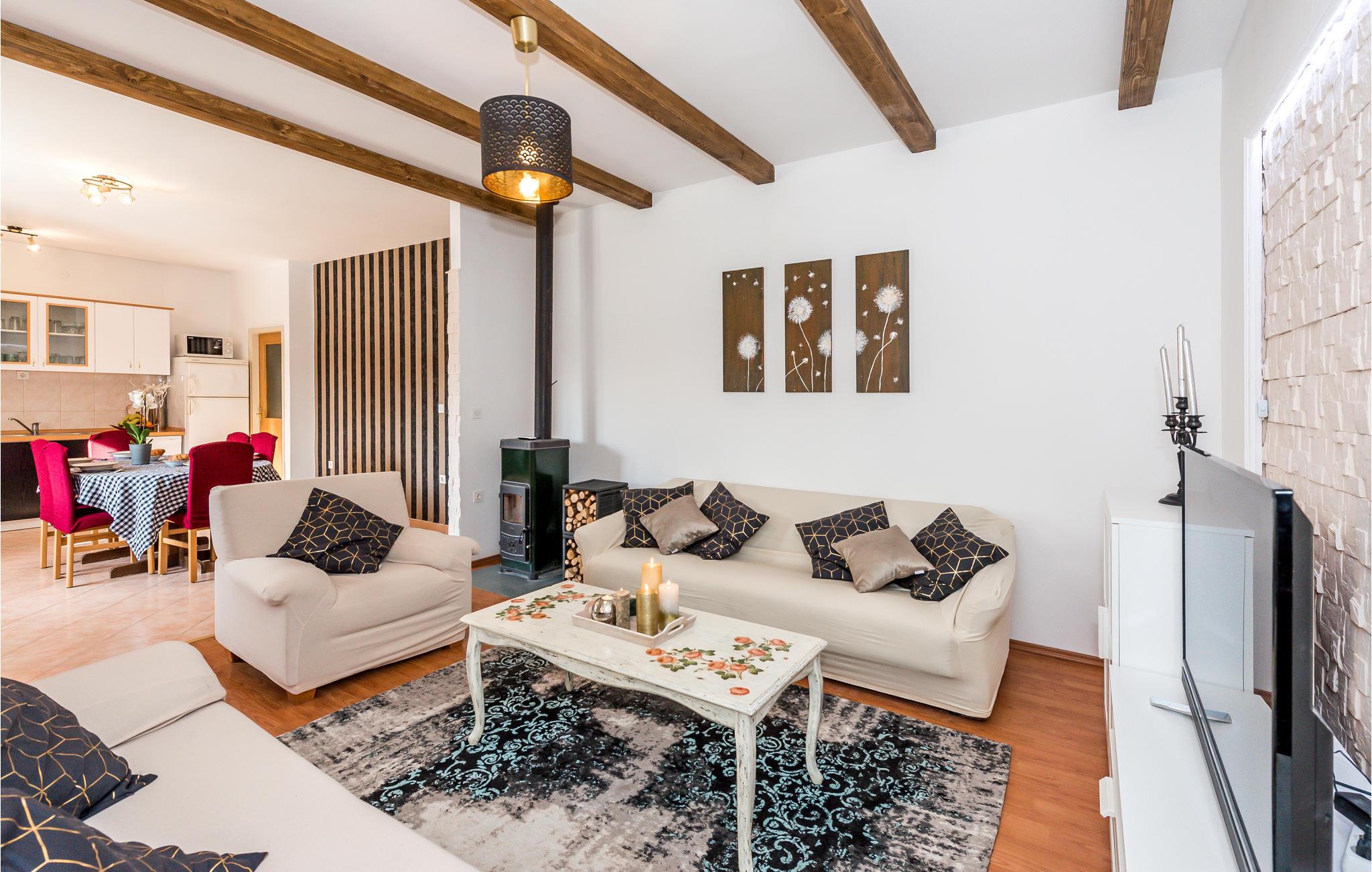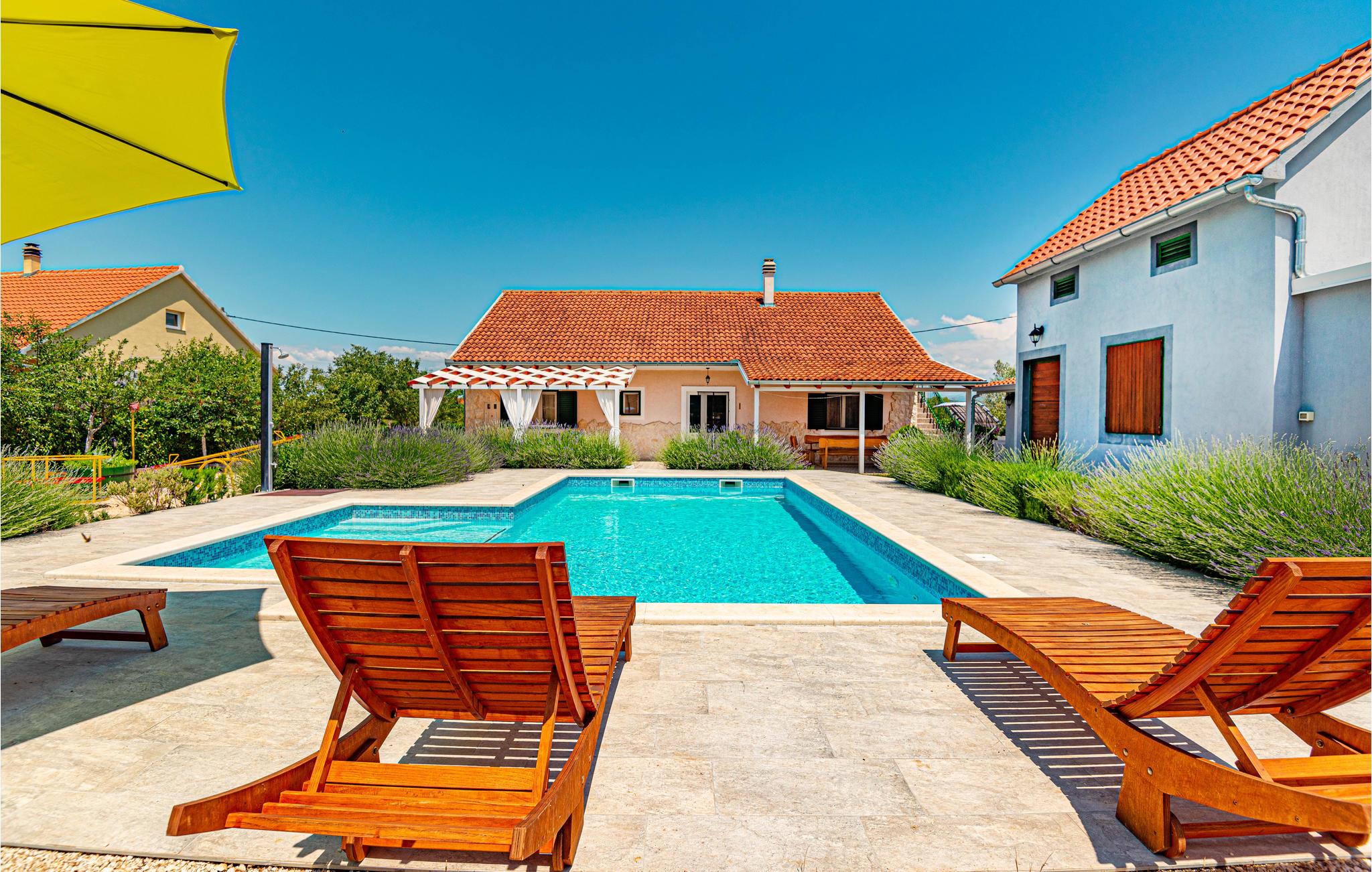 Dette komfortable og venligt indrettede feriehus ligger i den lille landsby Pakovo Selo, ikke langt fra Sibenik. Hvis I vil undgå byens travlhed og nyde jeres ferie i fred og ro, så er I her på rette sted med familien. Slap af ved poolen, mens børnene nyder ubesværet leg. I gården er der også en grill, som I kan tilberede lækre retter på. Gå ikke glip af lejligheden til at besøge Sibenik med mange historiske og kulturelle seværdigheder. Dertil anbefaler vi en udflugt til den flotte nationalpark Krka.