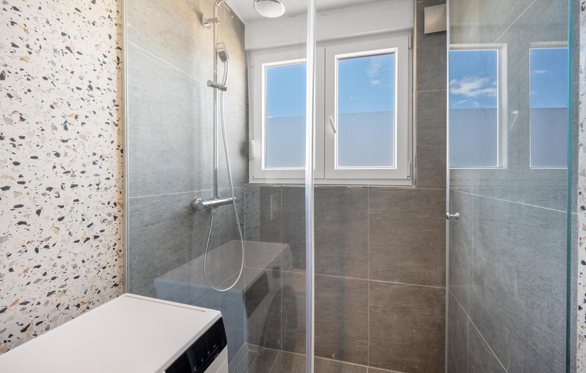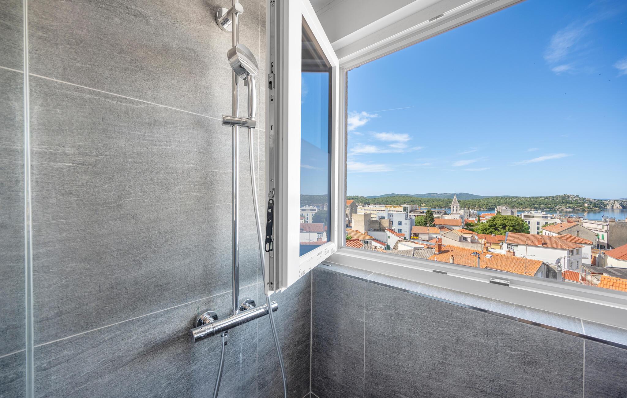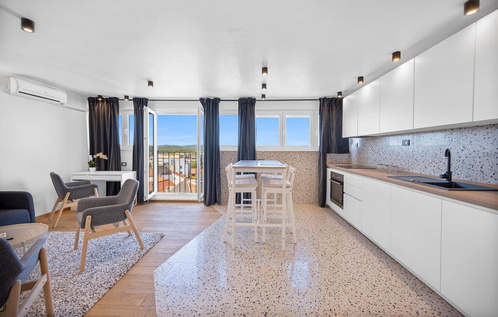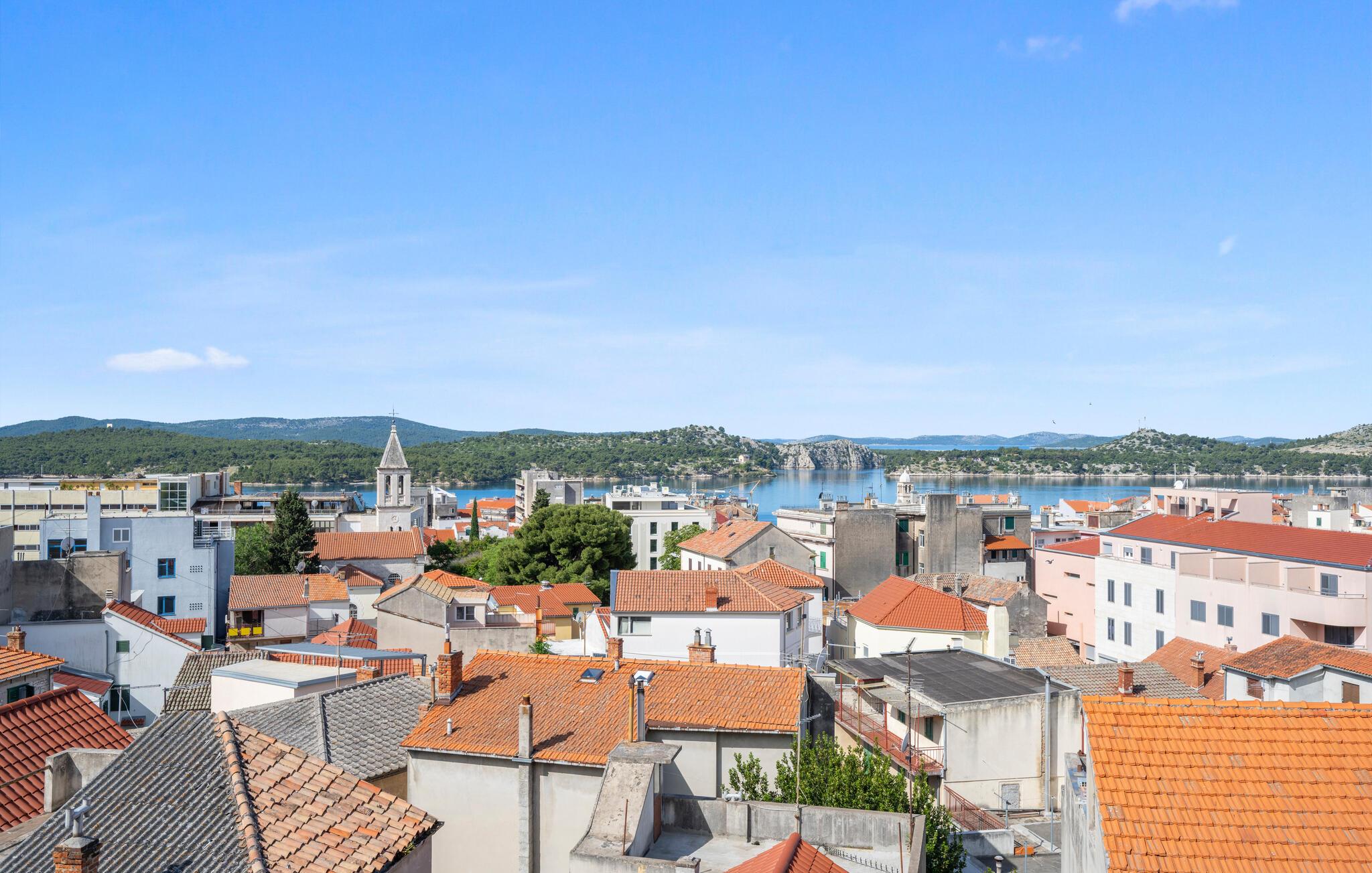 Tag den lille familie under armen og rejs til Sibenik, der er en af de dejligste kystbyer i Kroatien, og hvor der venter jer en vidunderlig ferie i denne flotte lejlighed. Her bor I på fjerde sal og kan fuldt ud nyde den dejlige udsigt over byens tage og helt ud til havet. Lejligheden er elegant og stilsikkert indrettet med et moderne køkken, hvor I kan tilberede jeres livretter efter en herlig dag på farten. Nyd måltiderne ved spisebordet og lad blikkene vandre, inden I dækker op til snacks og en god filmaften i sofaen.