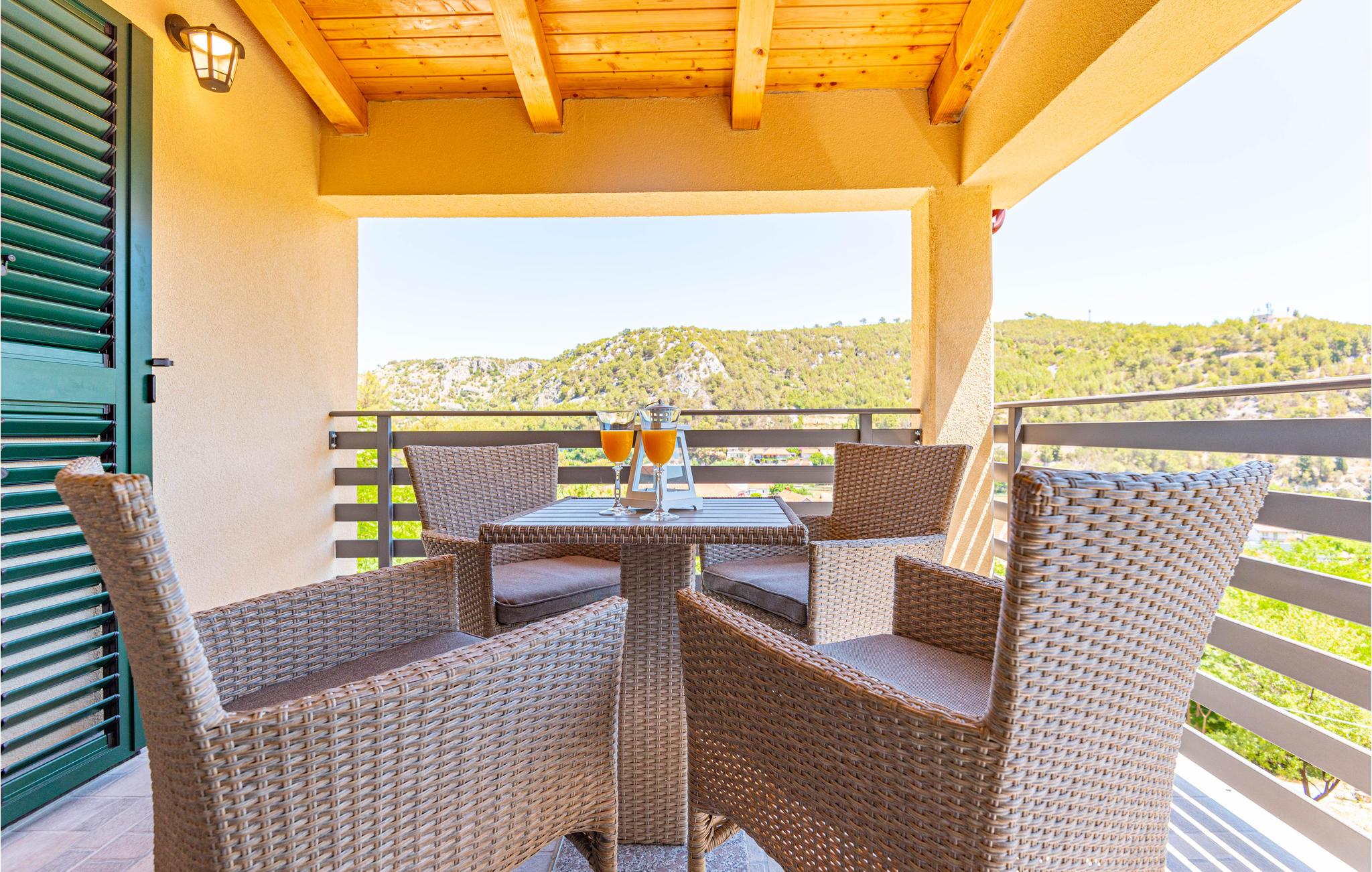 Nyd en fantastisk udsigt over byen Skradin fra dette hus i rolige omgivelser. Huset består af to boligenheder. Et område på to etager, som er forbundet via en intern trappe, og ved siden af dette et lille hus som 1-værelses lejlighed.