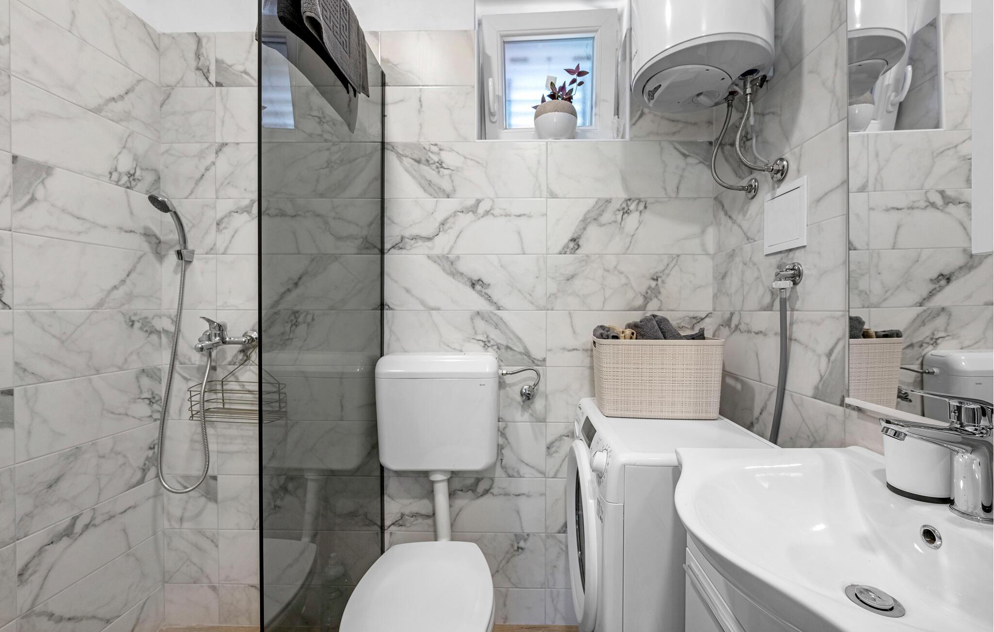 Badeværelse (nr. 1) - WC. Varmt og koldt vand. Bruser