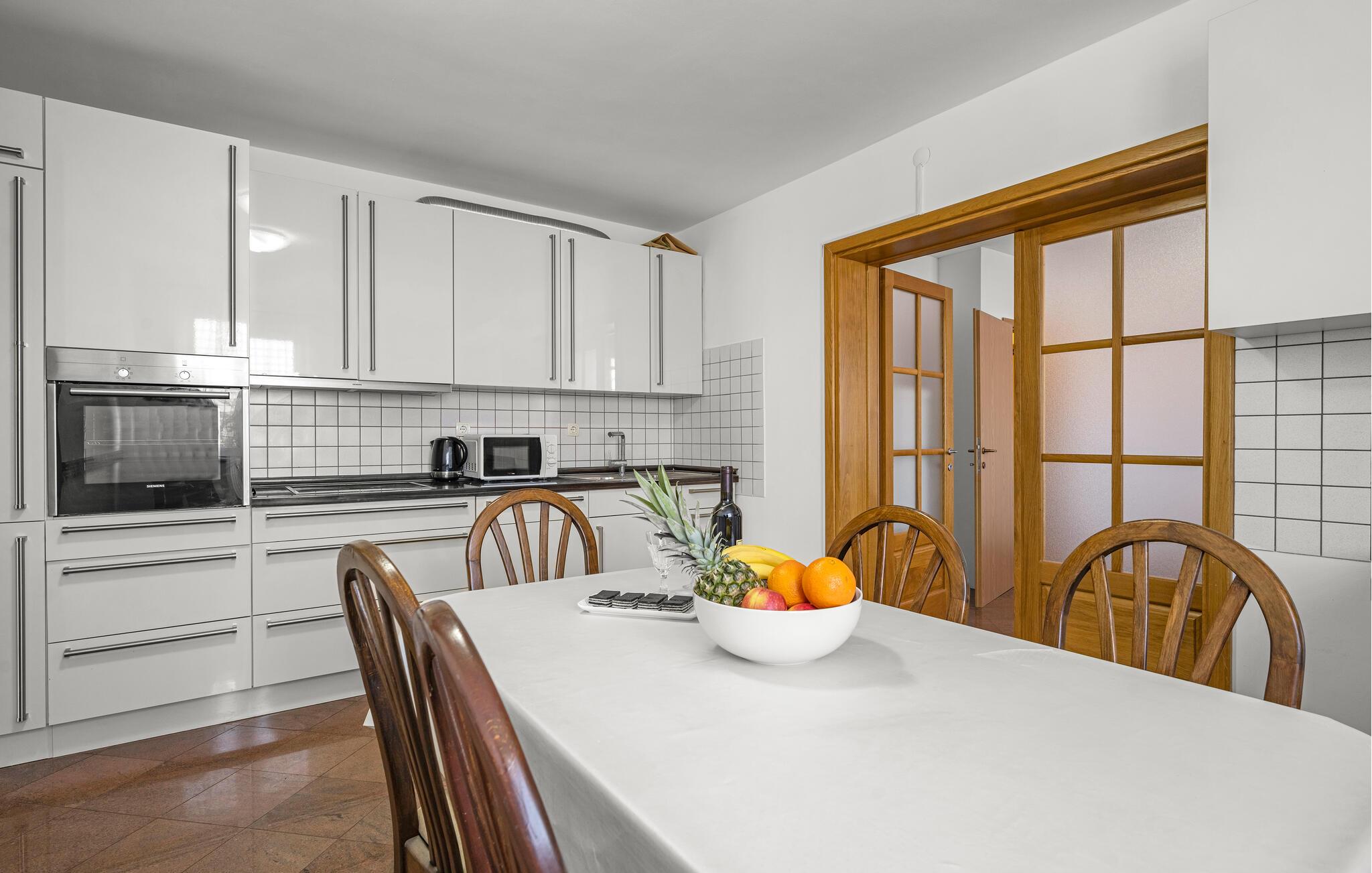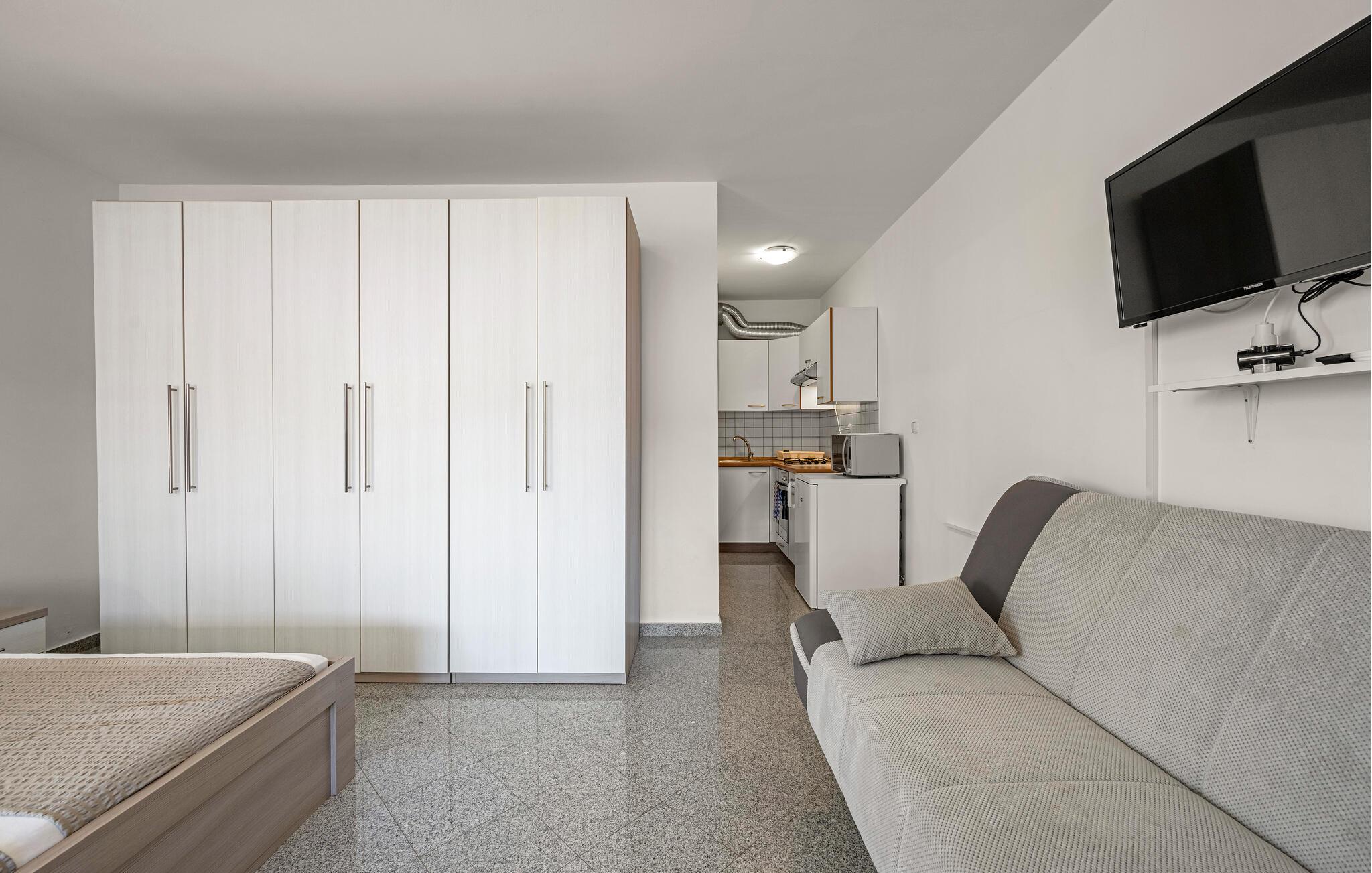 De friske og velholdte værelser i denne rummelige lejlighed lægger op til en afslappende pause under den kroatiske sol. Fremstil middelhavsretter i det rummelige køkken, planlæg jeres aktiviteter med et glas vin ved det indbydende spisebord og stream en god serie på den behagelige sofa efter en lang dag.