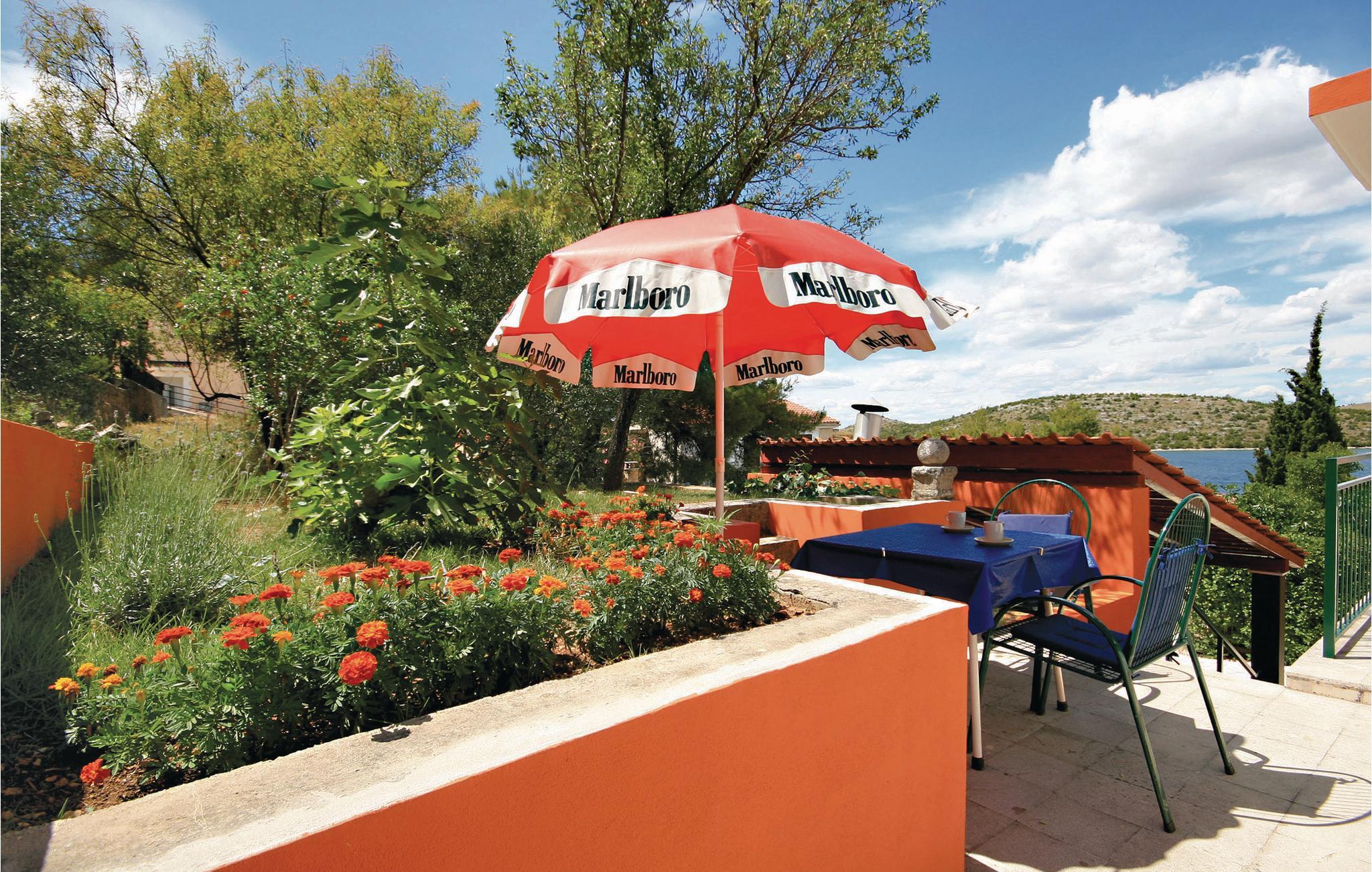 Dette sympatisk og praktisk indrettede feriehus strækker sig over to etager, der er forbundet med udvendige trapper. Da huset ligger på en lille bakke, har I fra den store terrasse en skøn panoramaudsigt over havet og den rolige bugt med det krystalklare hav. Den lille by Sparadici ligger mellem byerne Sibenik og Primosten, hvor I begge steder finder et skønt fritids- og kulturtilbud. Nyd spadsereturene langs havet, eller brug naturstierne til at cykle på. Prøv også mulighederne for vandsport. Vi kan også anbefale dagsture til nationalparkerne Krka og Kornati.