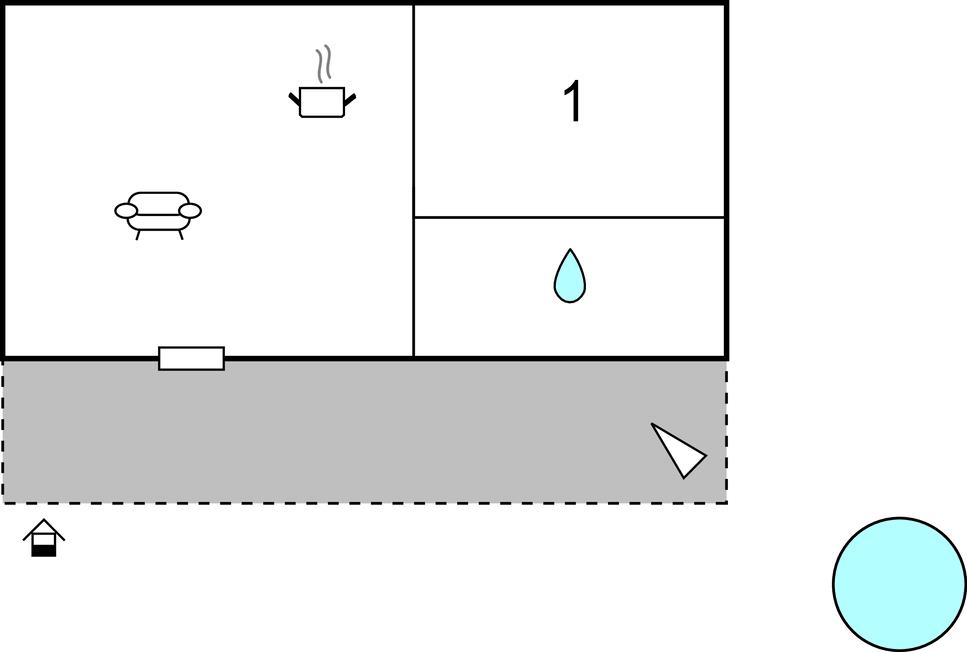 Opholdsstue/køkken 30m2 - 2 Sovepladser. (Sofa, madras eller lignende).
