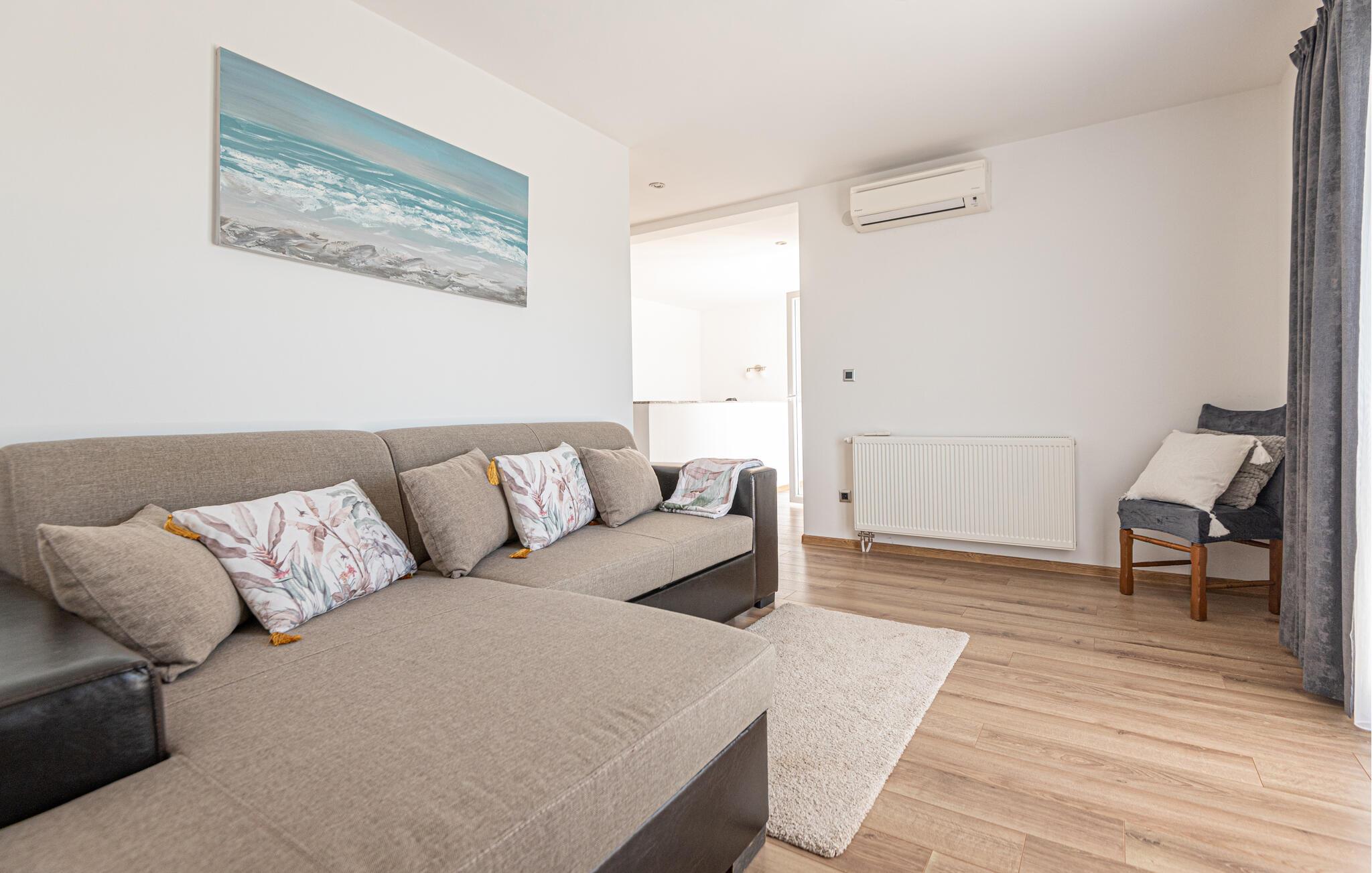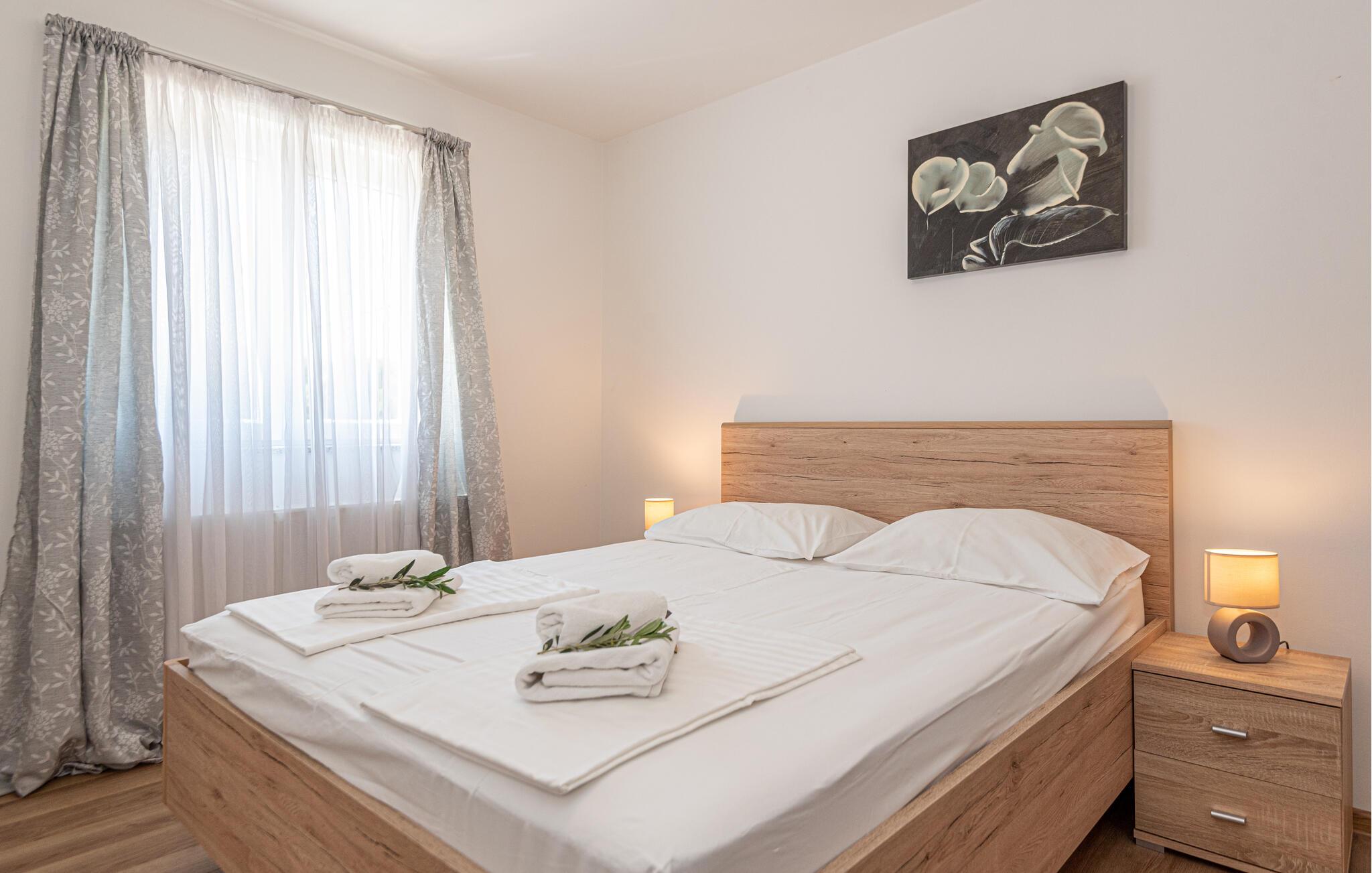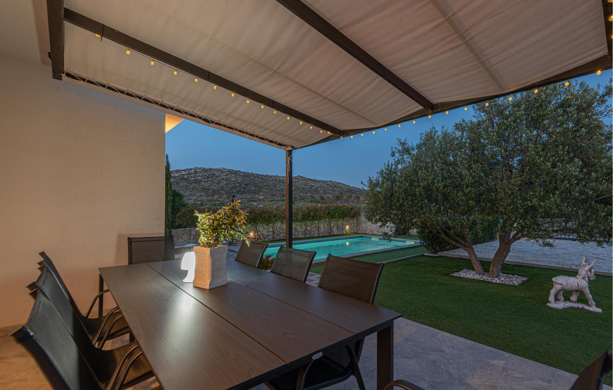 Dette skønne og smagfuldt indrettede feriehus med egen privat pool, ligger i den fredelige lille ferieby Zaton, i nærheden af Šibenik. Huset er på to etager der er forbundet med interne trapper. Et par trin fører op til opholdsafdelingen. Byens lange sandstrand er barrierefri, så den er også egnet til bevægelseshæmmede feriegæster. En lille pinjelund grænser op til stranden, her kan I søge skygge når solen står højt på himlen og det bliver for varmt. Der er mange udflugtsmuligheder, bl.a. byen Zadar, nabobyen Nin og ikke mindst de naturskønne nationalparker Krka, Kornati og Paklenica.