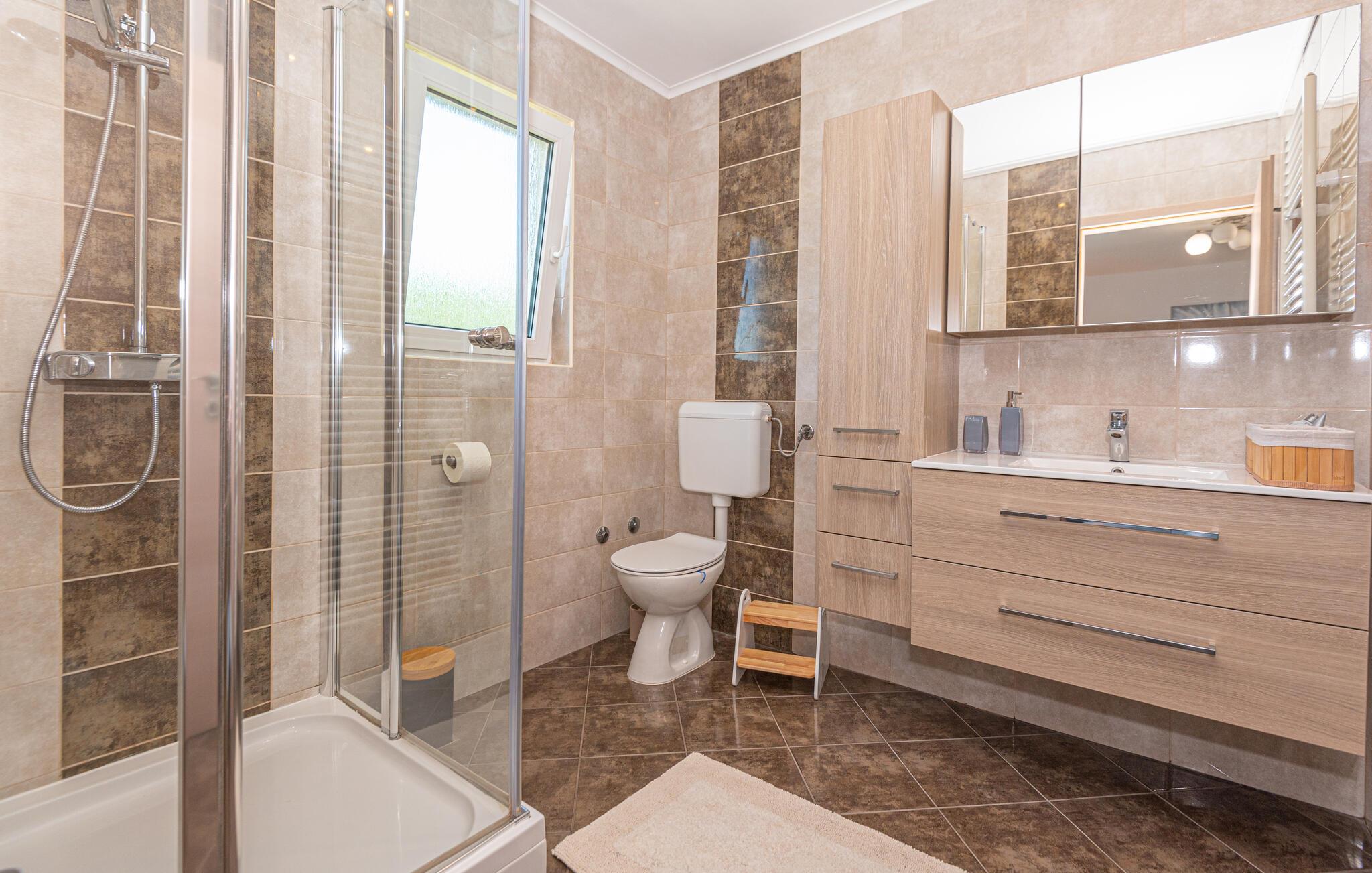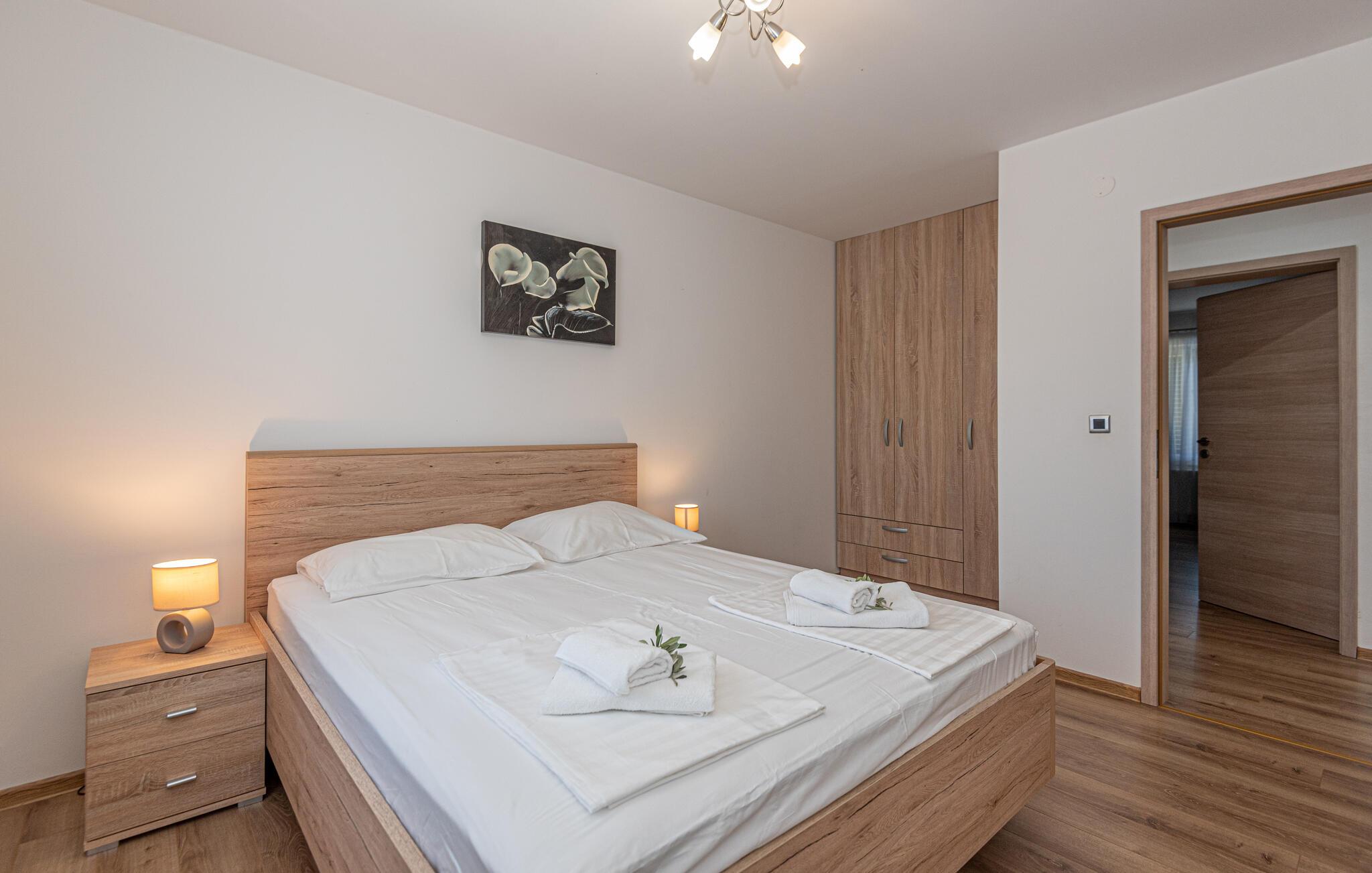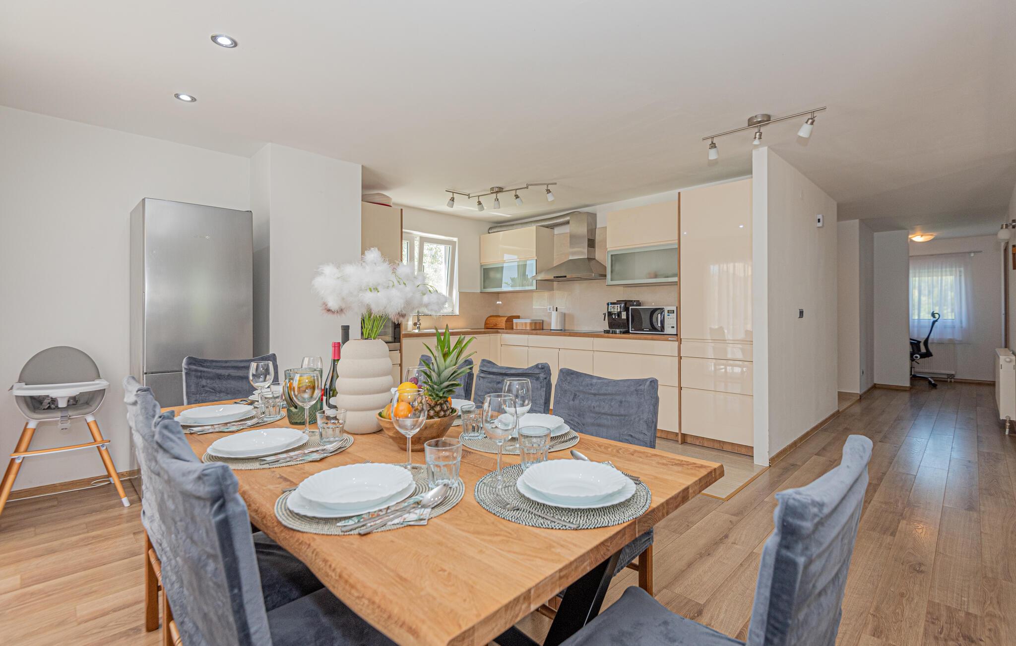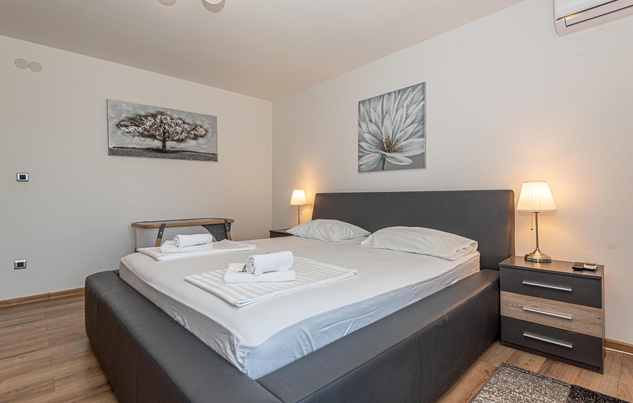 Dette skønne og smagfuldt indrettede feriehus med egen privat pool, ligger i den fredelige lille ferieby Zaton, i nærheden af Šibenik. Huset er på to etager der er forbundet med interne trapper. Et par trin fører op til opholdsafdelingen. Byens lange sandstrand er barrierefri, så den er også egnet til bevægelseshæmmede feriegæster. En lille pinjelund grænser op til stranden, her kan I søge skygge når solen står højt på himlen og det bliver for varmt. Der er mange udflugtsmuligheder, bl.a. byen Zadar, nabobyen Nin og ikke mindst de naturskønne nationalparker Krka, Kornati og Paklenica.