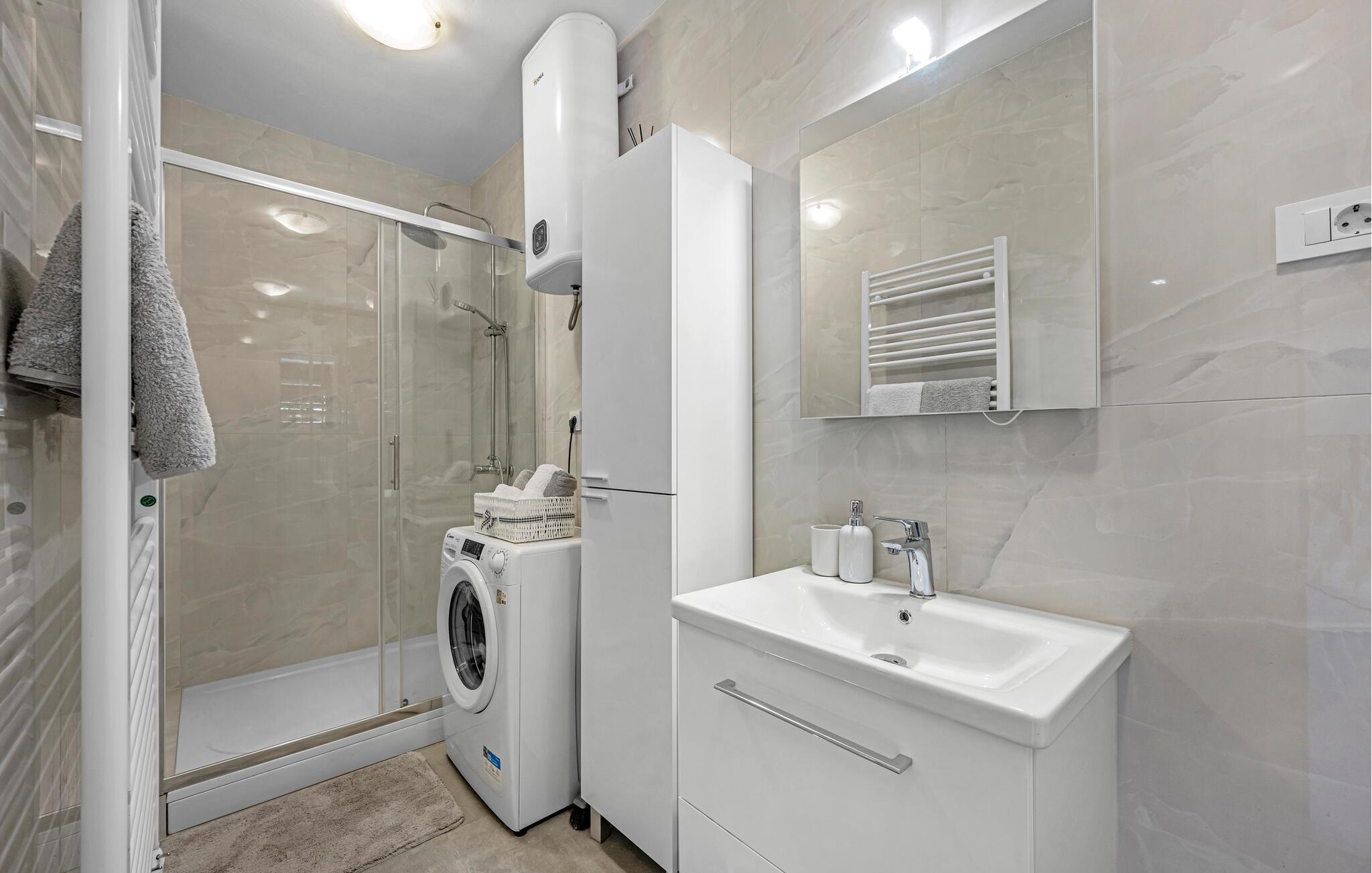 Denne lyse og indbydende ferielejlighed ligger kun en kort gåtur fra havet og byder jer velkommen med smagfuldt møbleret interiør. Fremtryl kulinariske lækkerier her, og slap af om aftenen i den rummelige stue. Gør jer selv komfortabel med jeres ferielæsning eller stream en film, som alle vil nyde.