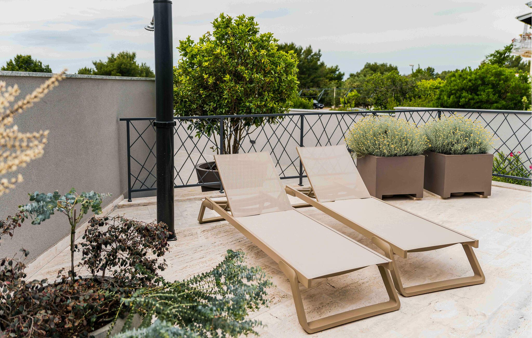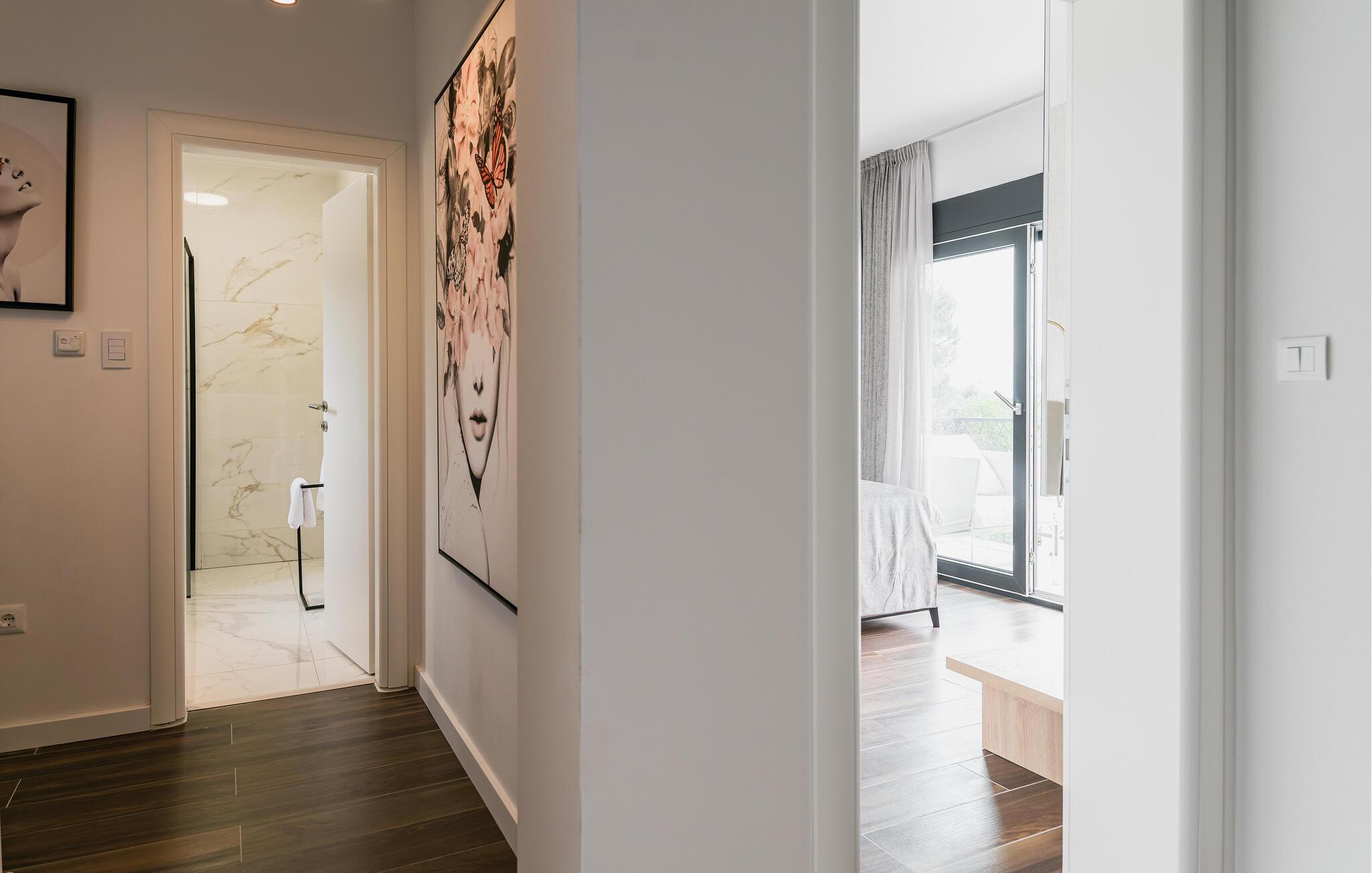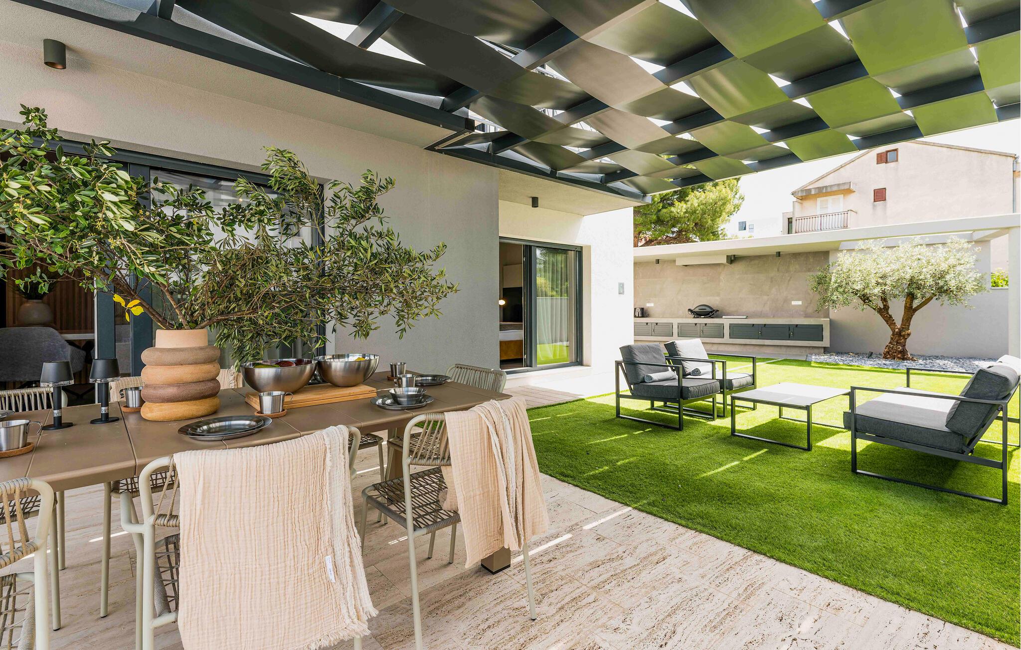 Det elegante udendørsområde er perfekt til fuldt ud at nyde Kroatiens vidunderlige klima. Brug den skyggefulde terrasse til morgenmad, tag en dukkert i den glitrende pool, og genoplad på de komfortable liggestole. Tilbring eftermiddage med at snakke over et glas vin og fejre kvalitetstid sammen med mindeværdige grillmiddage.