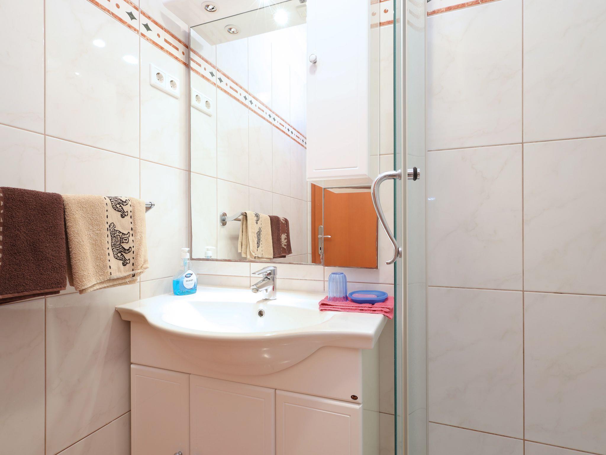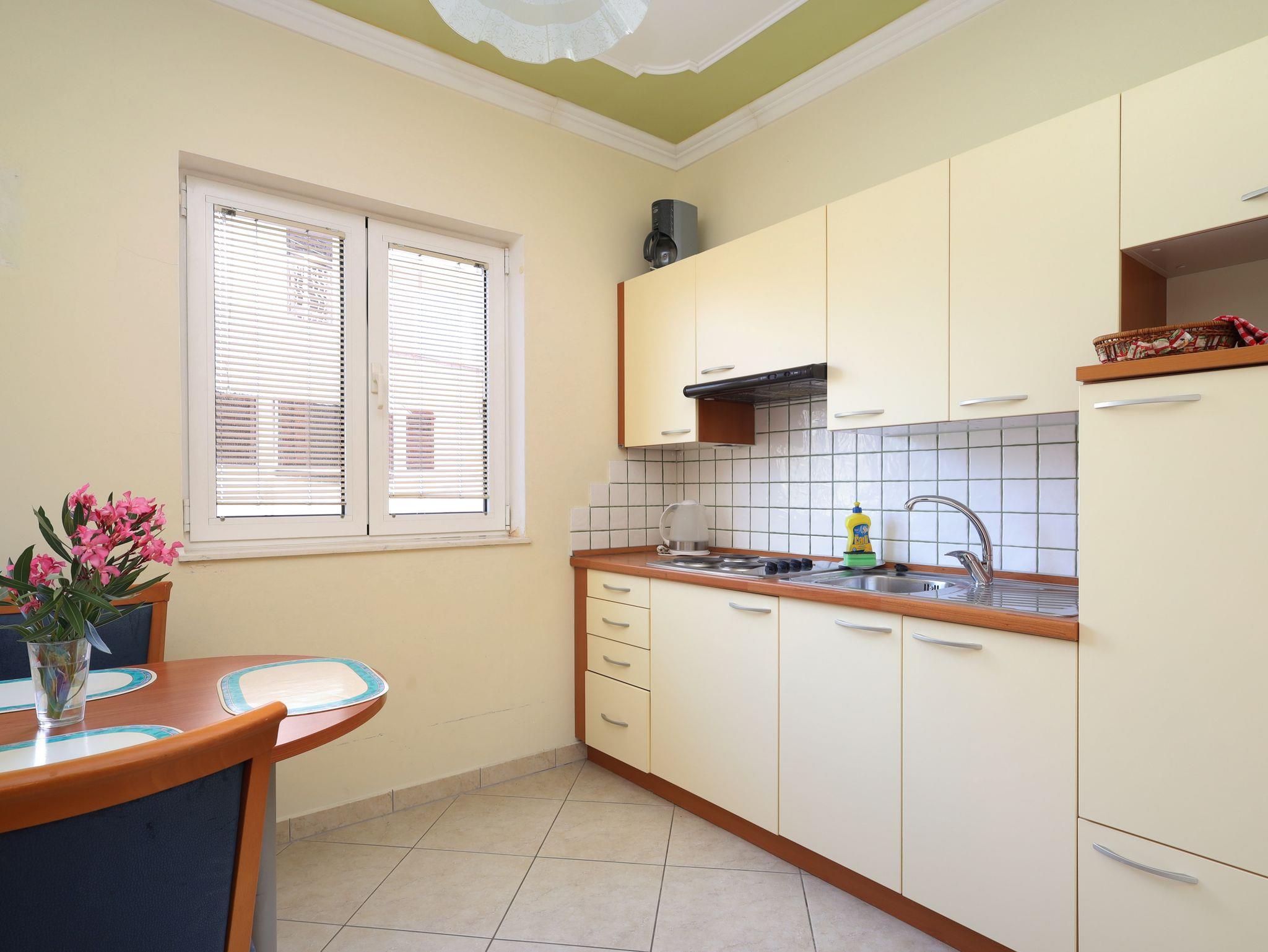 Ferienwohnung bietet Platz für 2 Gäste. Die Betten sind in Schlafzimmern, die es 1 gibt, innerhalb einer Gesamtfläche von 25m2, angeordnet. Die Gäste haben einen eigenen Balkon zur Verfügung, auf der sie in warmen Sommernächten genießen können. Es ist erlaubt, Speisen auf dem Gemeinschafts-Grill vorzubereiten. IM PREIS INBEGRIFFEN: Kurtaxe, Endreinigung, Klimatisierung, Parkplatz, Internet, Bootsanlegeplatz, Bügeleisen, Bügelbrett. VERBINDLICHE ZUSÄTZLICHE KOSTEN: Aufzahlung für Kurzaufenthalte (prozentualer Zuschlag pro Nächtigungsanzahl: 30% - 1, 20% - 2, 10% - 3). UNVERBINDLICHE ZUSÄTZLICHE KOSTEN: Wäschewaschen (12,00 € Waschen). Die Verfügbarkeit zusätzlicher Dienstleistungen in Ihrem reservierten Termin und die Preise derselben (falls nicht aufgeführt) müssen im Voraus überprüft werden. Zusätzliche Dienstleistungen die in der Zahlungsaufforderung nicht aufgeführt sind werden direkt beim Vermieter bezahlt, angenommen der Gast nutzt auch diese.