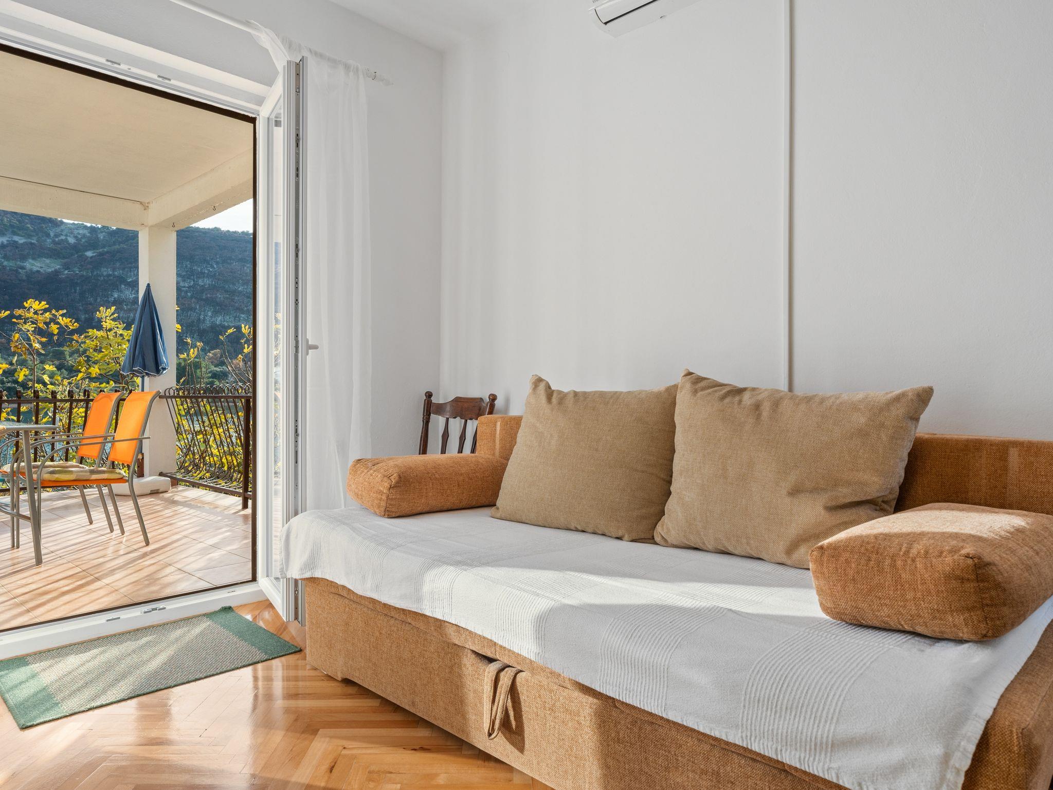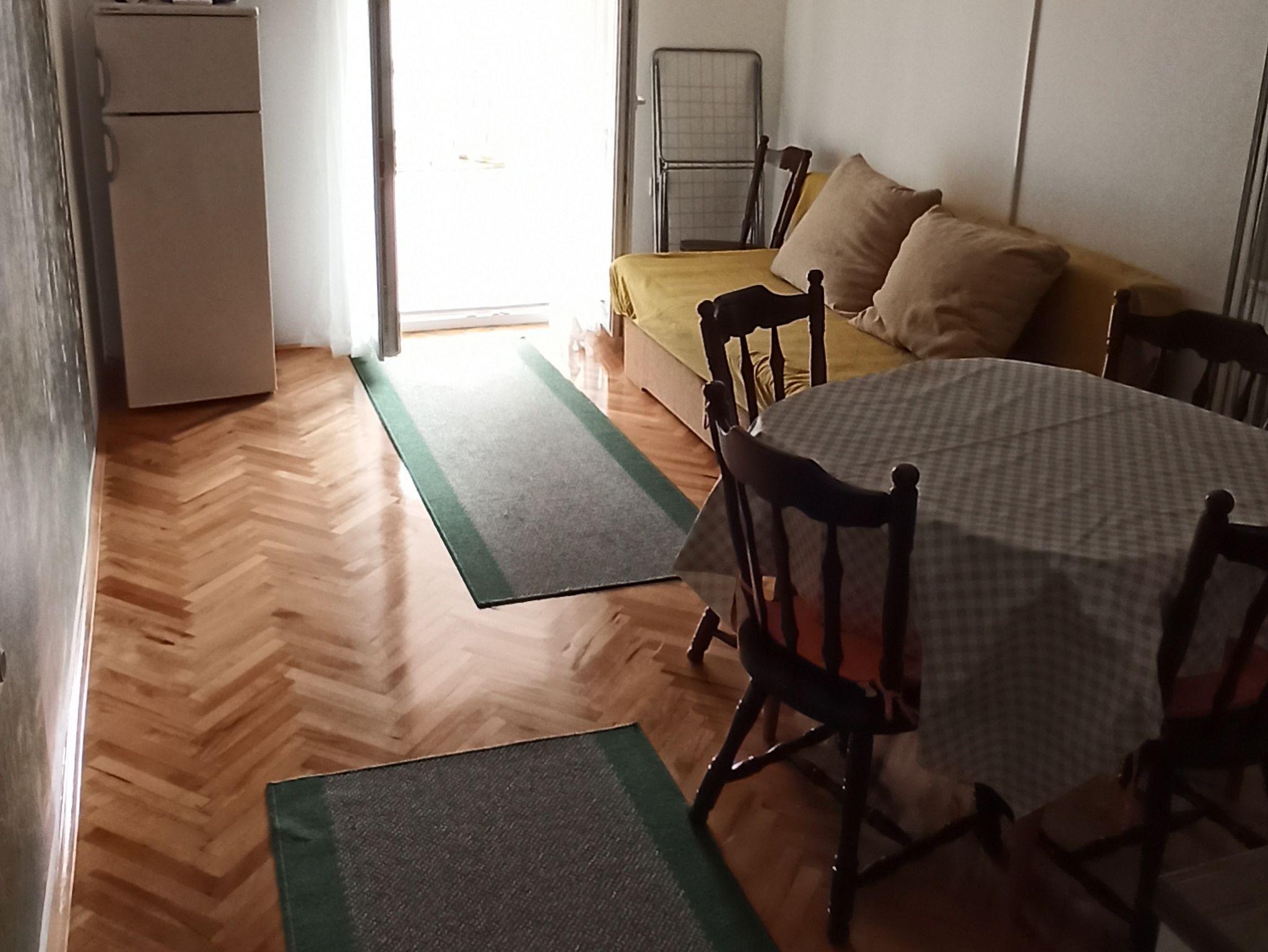 Ferienwohnung bietet Platz für 4 Gäste. Die Betten sind in Schlafzimmern, die es 1 gibt, und in Wohnzimmer, innerhalb einer Gesamtfläche von 43m2, angeordnet. Die Gäste haben eine eigene Terrasse zur Verfügung, auf der sie in warmen Sommernächten genießen können. Das Apartment bietet Meerblick. Es ist erlaubt, Speisen auf dem Gemeinschafts-Grill vorzubereiten. IM PREIS INBEGRIFFEN: Kurtaxe, Endreinigung, Klimatisierung, Parkplatz, Internet, Bügeleisen, Föhn, tragbarer Grill, Sonnenschirm, Liegestühle. VERBINDLICHE ZUSÄTZLICHE KOSTEN: Aufzahlung für Kurzaufenthalte (prozentualer Zuschlag pro Nächtigungsanzahl: 30% - 1, 20% - 2, 10% - 3). Die Verfügbarkeit zusätzlicher Dienstleistungen in Ihrem reservierten Termin und die Preise derselben (falls nicht aufgeführt) müssen im Voraus überprüft werden. Zusätzliche Dienstleistungen die in der Zahlungsaufforderung nicht aufgeführt sind werden direkt beim Vermieter bezahlt, angenommen der Gast nutzt auch diese. Ermäßigung auf den Grundpreis: Gratistag 14=13 (bei einem Aufenthalt von 14 Tagen oder mehr erhalten Sie einen Gratistag für den Aufenthalt bis 31.12.26).