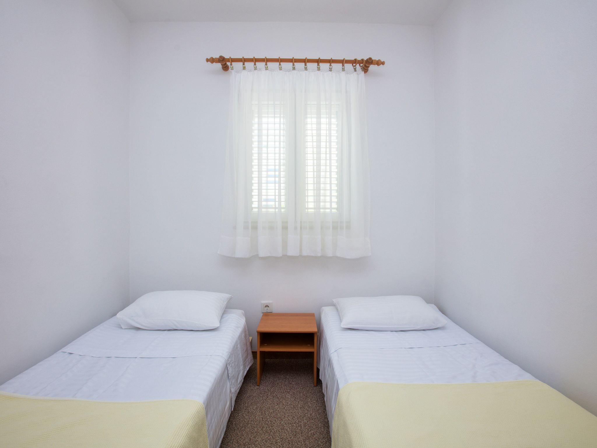 Ferienwohnung bietet Platz für 5 Gäste. Die Betten sind in Schlafzimmern, die es 2 gibt, und in Wohnzimmer, innerhalb einer Gesamtfläche von 44m2, angeordnet. Die Gäste haben eine eigene Terrasse zur Verfügung, auf der sie in warmen Sommernächten genießen können. Es ist erlaubt, Speisen auf dem Gemeinschafts-Grill vorzubereiten. IM PREIS INBEGRIFFEN: Kurtaxe, Endreinigung, Klimatisierung, Parkplatz, Internet, Wäschewaschen, Bootsanlegeplatz, Kinderbett. Die Verfügbarkeit zusätzlicher Dienstleistungen in Ihrem reservierten Termin und die Preise derselben (falls nicht aufgeführt) müssen im Voraus überprüft werden. Zusätzliche Dienstleistungen die in der Zahlungsaufforderung nicht aufgeführt sind werden direkt beim Vermieter bezahlt, angenommen der Gast nutzt auch diese.