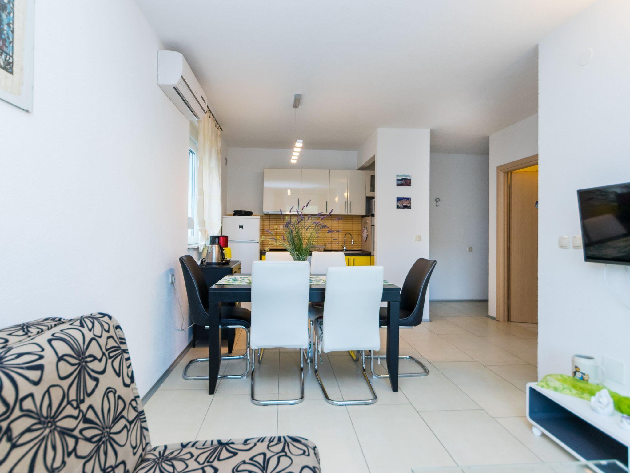 Ferienwohnung bietet Platz für 4 Gäste. Die Betten sind in Schlafzimmern, die es 1 gibt, und in Wohnzimmer, innerhalb einer Gesamtfläche von 34m2, angeordnet. Die Gäste haben eine eigene Terrasse zur Verfügung, auf der sie in warmen Sommernächten genießen können. Es ist erlaubt, Speisen auf dem Gemeinschafts-Grill vorzubereiten. In der Unterkunftseinheit besteht die Möglichkeit des Mitbringens von Haustieren gegen Aufpreis. IM PREIS INBEGRIFFEN: Kurtaxe, Endreinigung, Klimatisierung, Parkplatz, Internet, Bügeleisen, Bügelbrett, Föhn, tragbarer Grill. VERBINDLICHE ZUSÄTZLICHE KOSTEN: Aufzahlung für Kurzaufenthalte (prozentualer Zuschlag pro Nächtigungsanzahl: 30% - 1, 20% - 2, 10% - 3). UNVERBINDLICHE ZUSÄTZLICHE KOSTEN: Wäschewaschen (5,00 € Waschen), Haustiere (5,00 € pro Nacht). Die Verfügbarkeit zusätzlicher Dienstleistungen in Ihrem reservierten Termin und die Preise derselben (falls nicht aufgeführt) müssen im Voraus überprüft werden. Zusätzliche Dienstleistungen die in der Zahlungsaufforderung nicht aufgeführt sind werden direkt beim Vermieter bezahlt, angenommen der Gast nutzt auch diese. Ermäßigung auf den Grundpreis: Gratistag 14=13 (bei einem Aufenthalt von 14 Tagen oder mehr erhalten Sie einen Gratistag für den Aufenthalt bis 31.12.26).