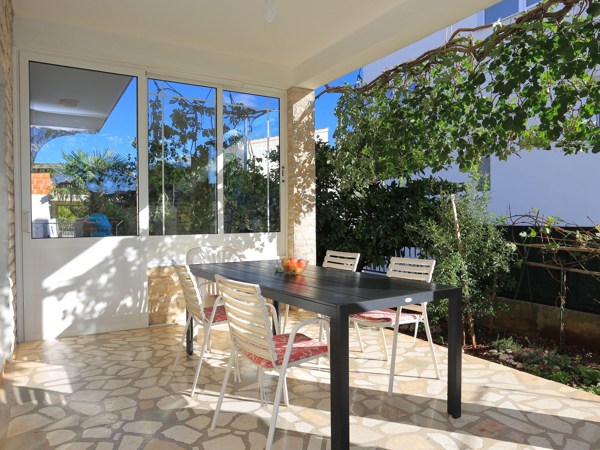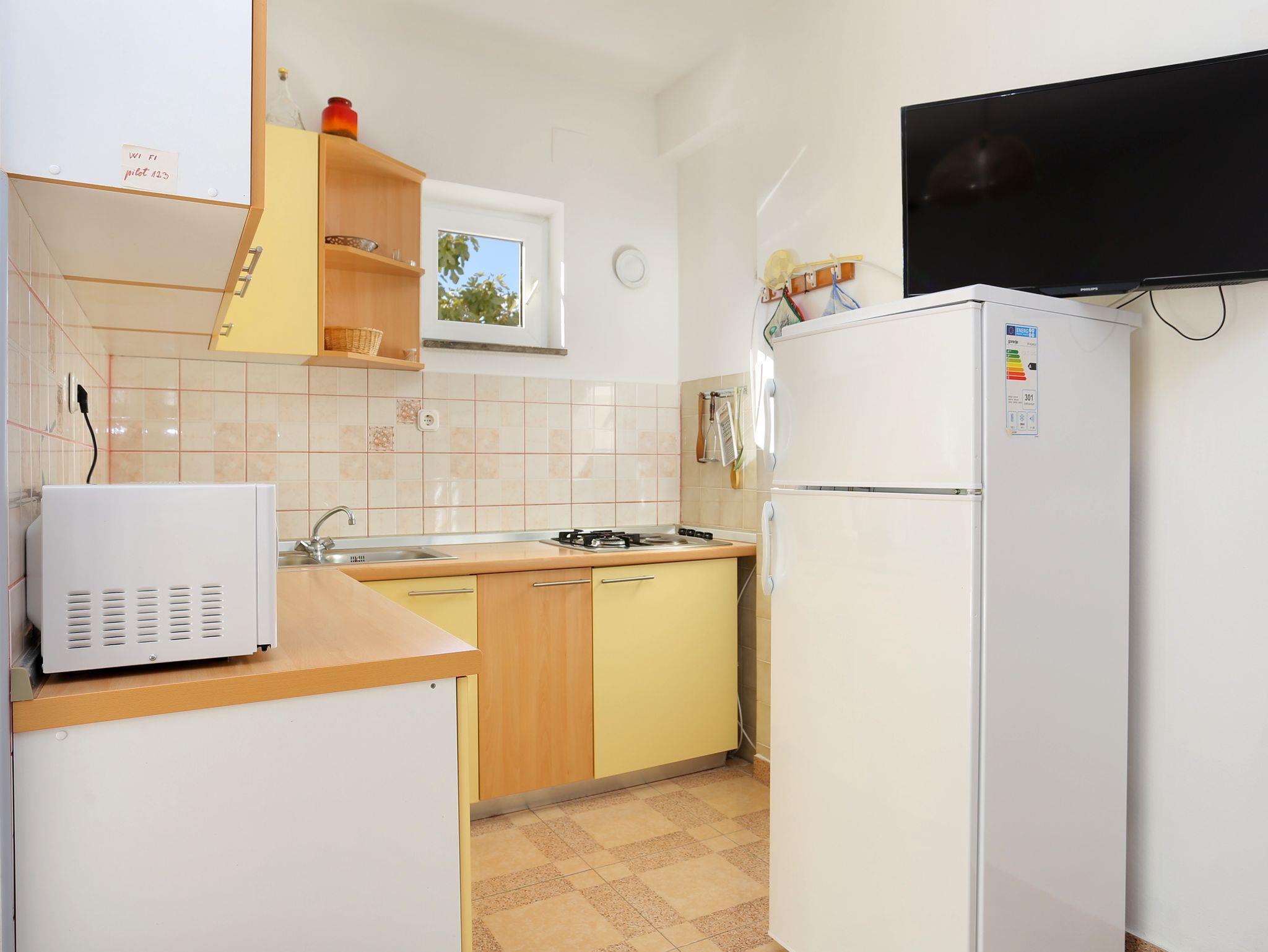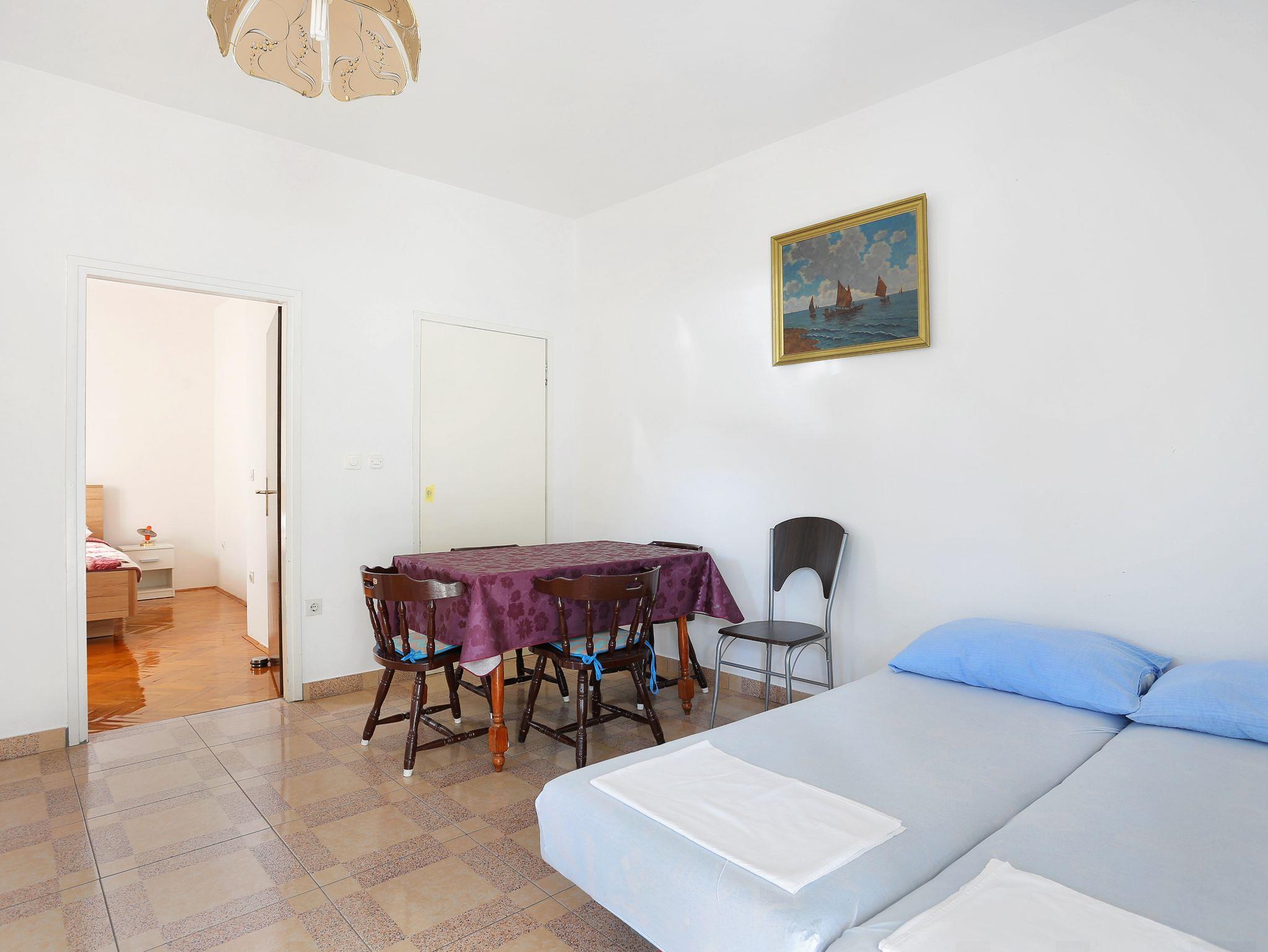 Ferienwohnung bietet Platz für 3 Gäste. Die Betten sind in Schlafzimmern, die es 1 gibt, und in Esszimmer, innerhalb einer Gesamtfläche von 36m2, angeordnet. Die Gäste haben eine eigene Terrasse zur Verfügung, auf der sie in warmen Sommernächten genießen können. Das Apartment bietet Meerblick. Es ist erlaubt, Speisen auf dem Gemeinschafts-Grill vorzubereiten. IM PREIS INBEGRIFFEN: Kurtaxe, Endreinigung, Klimatisierung, Parkplatz, Internet, Bootsanlegeplatz, Kinderbett, Bügeleisen, Bügelbrett, Föhn. VERBINDLICHE ZUSÄTZLICHE KOSTEN: Aufzahlung für Kurzaufenthalte (prozentualer Zuschlag pro Nächtigungsanzahl: 30% - 1, 20% - 2, 10% - 3). UNVERBINDLICHE ZUSÄTZLICHE KOSTEN: Wäschewaschen (5,00 € Waschen). Die Verfügbarkeit zusätzlicher Dienstleistungen in Ihrem reservierten Termin und die Preise derselben (falls nicht aufgeführt) müssen im Voraus überprüft werden. Zusätzliche Dienstleistungen die in der Zahlungsaufforderung nicht aufgeführt sind werden direkt beim Vermieter bezahlt, angenommen der Gast nutzt auch diese.