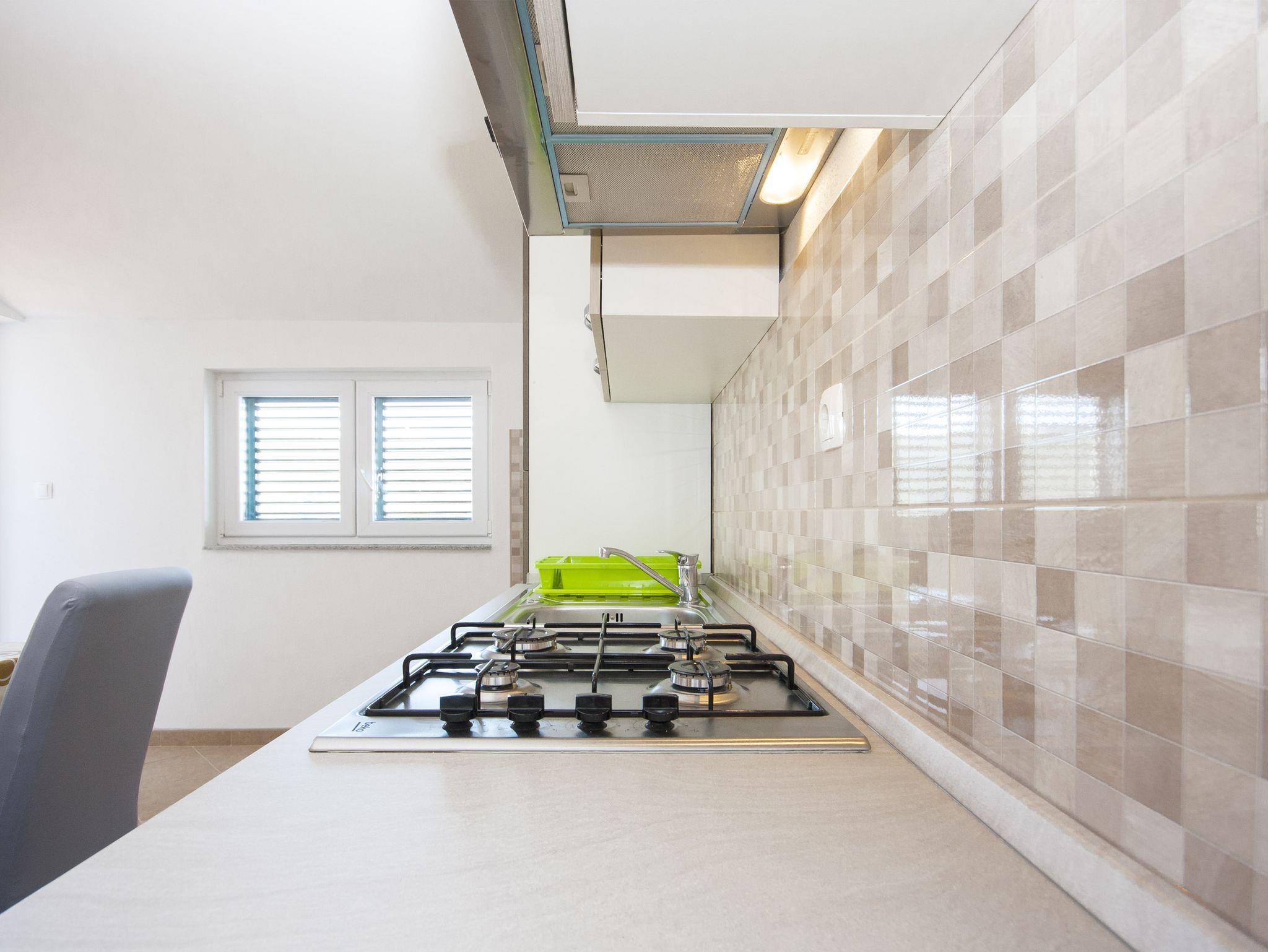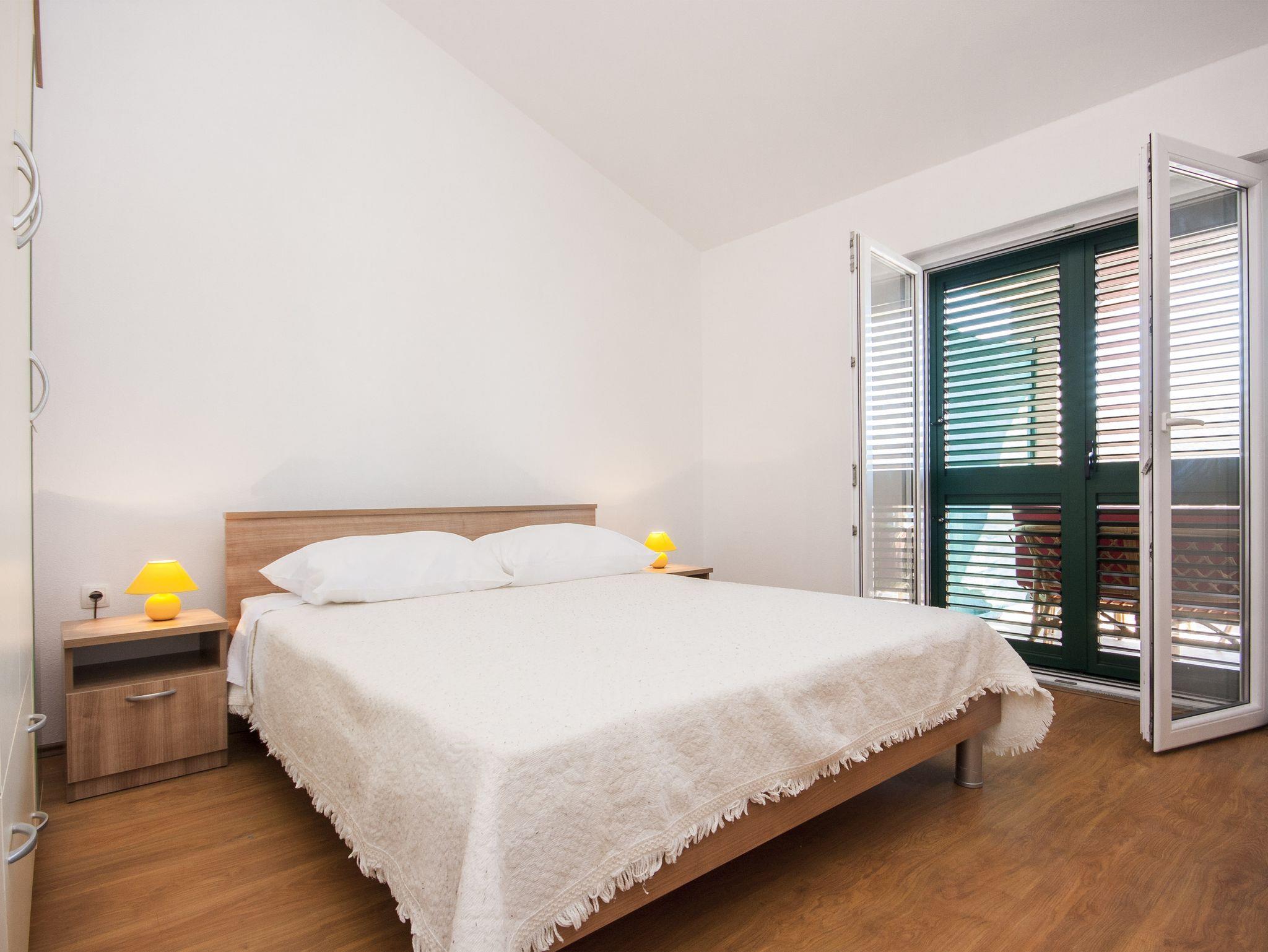 Ferienwohnung bietet Platz für 4 Gäste. Die Betten sind in Schlafzimmern, die es 1 gibt, und in Esszimmer, innerhalb einer Gesamtfläche von 43m2, angeordnet. Die Gäste haben eine eigene Terrasse zur Verfügung, auf der sie in warmen Sommernächten genießen können. Das Apartment bietet Meerblick. Es ist erlaubt, Speisen auf dem Gemeinschafts-Grill vorzubereiten. IM PREIS INBEGRIFFEN: Kurtaxe, Endreinigung, Klimatisierung, Parkplatz, Internet. VERBINDLICHE ZUSÄTZLICHE KOSTEN: Aufzahlung für Kurzaufenthalte (prozentualer Zuschlag pro Nächtigungsanzahl: 30% - 1, 20% - 2, 10% - 3). Die Verfügbarkeit zusätzlicher Dienstleistungen in Ihrem reservierten Termin und die Preise derselben (falls nicht aufgeführt) müssen im Voraus überprüft werden. Zusätzliche Dienstleistungen die in der Zahlungsaufforderung nicht aufgeführt sind werden direkt beim Vermieter bezahlt, angenommen der Gast nutzt auch diese.