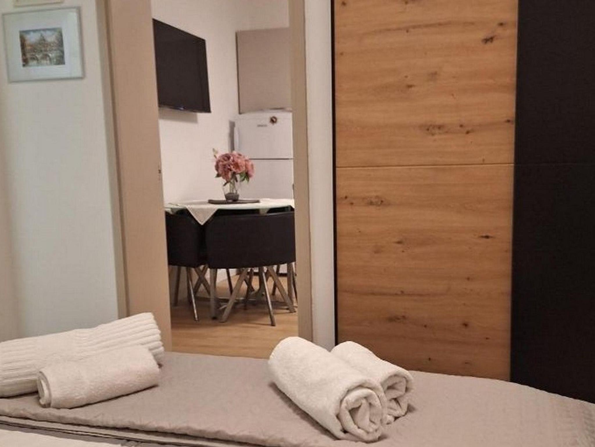 Ferienwohnung bietet Platz für 4 Gäste. Die Betten sind in Schlafzimmern, die es 1 gibt, und in Wohnzimmer, innerhalb einer Gesamtfläche von 25m2, angeordnet. Die Gäste haben eine eigene Terrasse zur Verfügung, auf der sie in warmen Sommernächten genießen können. IM PREIS INBEGRIFFEN: Kurtaxe, Endreinigung, Klimatisierung, Parkplatz, Internet, Kinderbett, Bügeleisen, Bügelbrett, Föhn. VERBINDLICHE ZUSÄTZLICHE KOSTEN: Aufzahlung für Kurzaufenthalte (prozentualer Zuschlag pro Nächtigungsanzahl: 30% - 1, 20% - 2, 10% - 3). UNVERBINDLICHE ZUSÄTZLICHE KOSTEN: Bootsanlegeplatz (7,00 € pro Nacht). Die Verfügbarkeit zusätzlicher Dienstleistungen in Ihrem reservierten Termin und die Preise derselben (falls nicht aufgeführt) müssen im Voraus überprüft werden. Zusätzliche Dienstleistungen die in der Zahlungsaufforderung nicht aufgeführt sind werden direkt beim Vermieter bezahlt, angenommen der Gast nutzt auch diese.