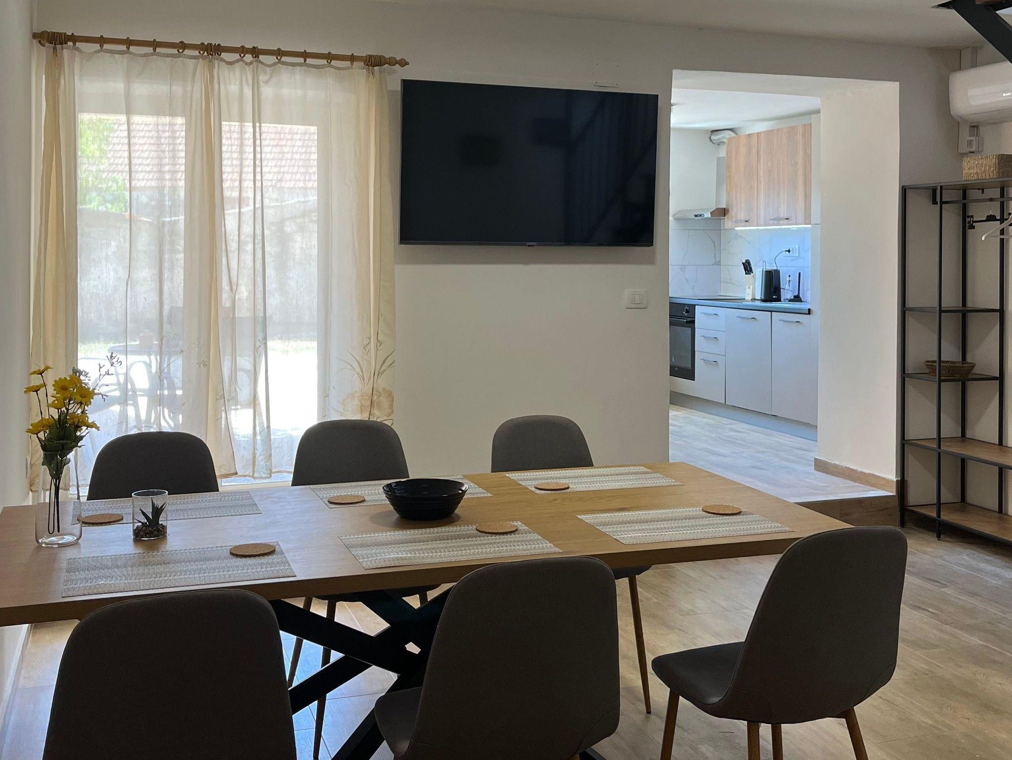 Haus bietet Platz für 3 Gäste. Die Betten sind in Schlafzimmern, die es 2 gibt, und in Wohnzimmer, innerhalb einer Gesamtfläche von 50m2, angeordnet. Die Gäste haben eine eigene Terrasse zur Verfügung, auf der sie in warmen Sommernächten genießen können. Für vollen Genuss und Entspannung gibt es einen privaten Grill für Gäste dieser Unterkunft. In der Unterkunftseinheit besteht die Möglichkeit des Mitbringens von Haustieren, und die Dienstleistung ist im Preis der Unterkunft enthalten. IM PREIS INBEGRIFFEN: Kurtaxe, Endreinigung, Klimatisierung, Parkplatz, Internet, Haustiere, Bügeleisen, Bügelbrett, Föhn, 2 Kinderbettchen (im Preis enthalten). Die Verfügbarkeit zusätzlicher Dienstleistungen in Ihrem reservierten Termin und die Preise derselben (falls nicht aufgeführt) müssen im Voraus überprüft werden. Zusätzliche Dienstleistungen die in der Zahlungsaufforderung nicht aufgeführt sind werden direkt beim Vermieter bezahlt, angenommen der Gast nutzt auch diese.