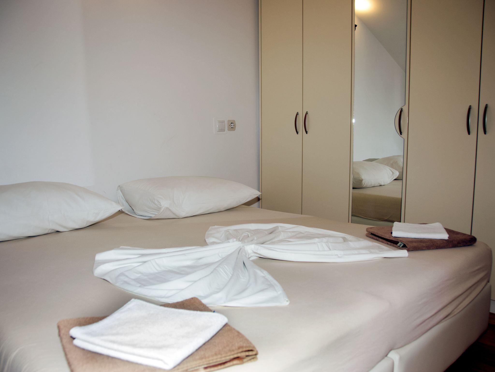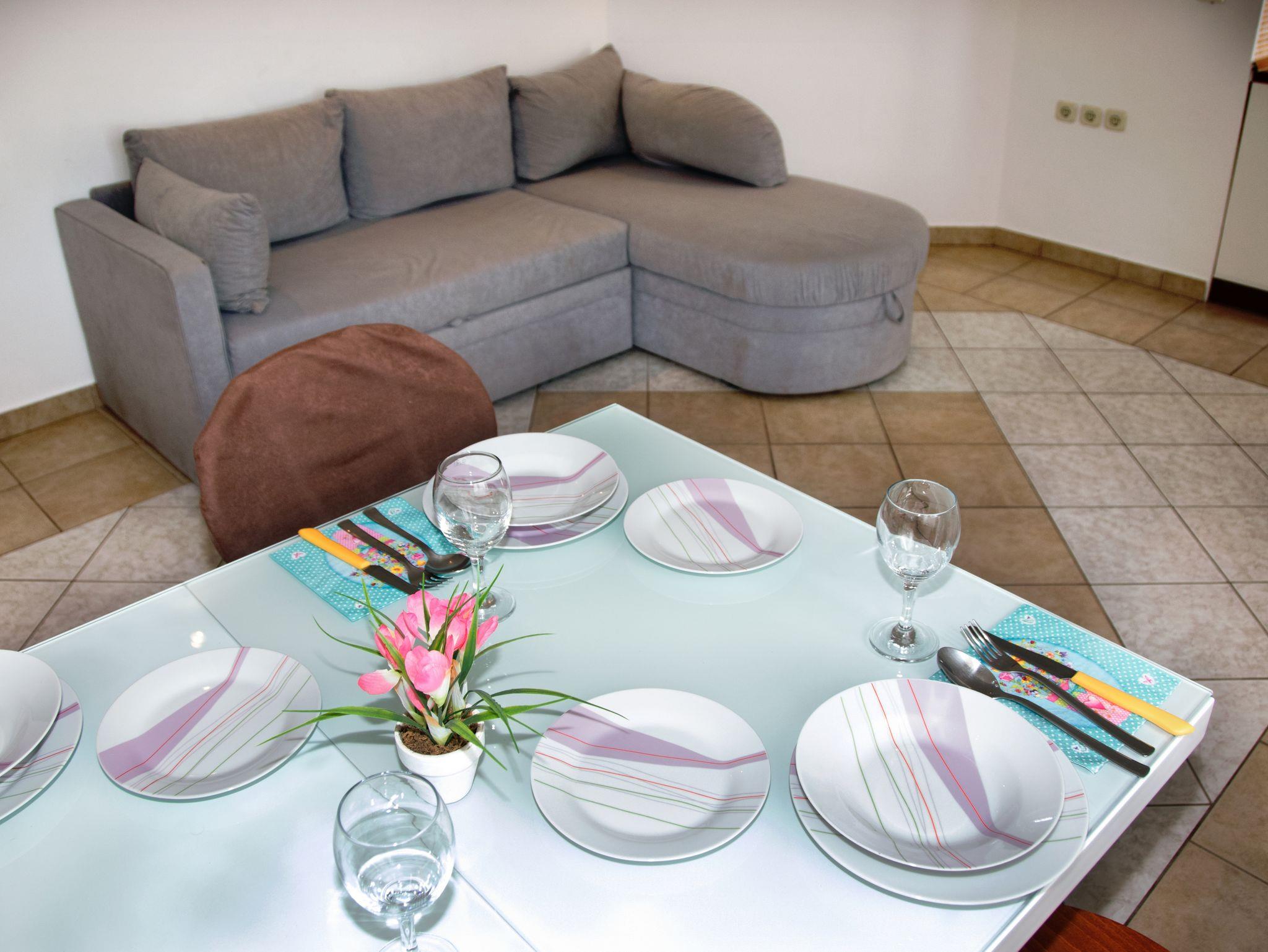 Ferienwohnung bietet Platz für 4 Gäste. Die Betten sind in Schlafzimmern, die es 1 gibt, und in Esszimmer, innerhalb einer Gesamtfläche von 33m2, angeordnet. Die Gäste haben einen eigenen Balkon zur Verfügung, auf der sie in warmen Sommernächten genießen können. Es ist erlaubt, Speisen auf dem Gemeinschafts-Grill vorzubereiten. Während ihres Aufenthalts können Gäste das gemeinsam zur Nutzung stehende Schwimmbad benutzen. In der Unterkunftseinheit besteht die Möglichkeit des Mitbringens von Haustieren gegen Aufpreis. IM PREIS INBEGRIFFEN: Kurtaxe, Endreinigung, Klimatisierung, Zentralheizung, Pool, Parkplatz, Internet, Föhn. VERBINDLICHE ZUSÄTZLICHE KOSTEN: Aufzahlung für Kurzaufenthalte (prozentualer Zuschlag pro Nächtigungsanzahl: 30% - 1, 20% - 2, 10% - 3). UNVERBINDLICHE ZUSÄTZLICHE KOSTEN: Haustiere (5,00 € pro Nacht). Die Verfügbarkeit zusätzlicher Dienstleistungen in Ihrem reservierten Termin und die Preise derselben (falls nicht aufgeführt) müssen im Voraus überprüft werden. Zusätzliche Dienstleistungen die in der Zahlungsaufforderung nicht aufgeführt sind werden direkt beim Vermieter bezahlt, angenommen der Gast nutzt auch diese.