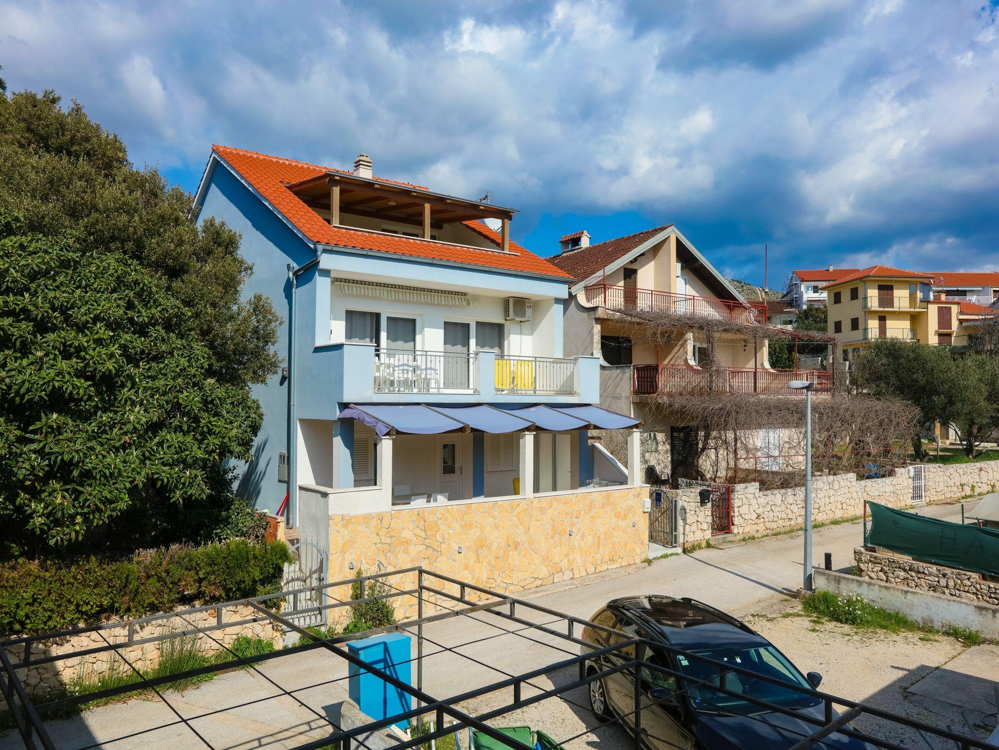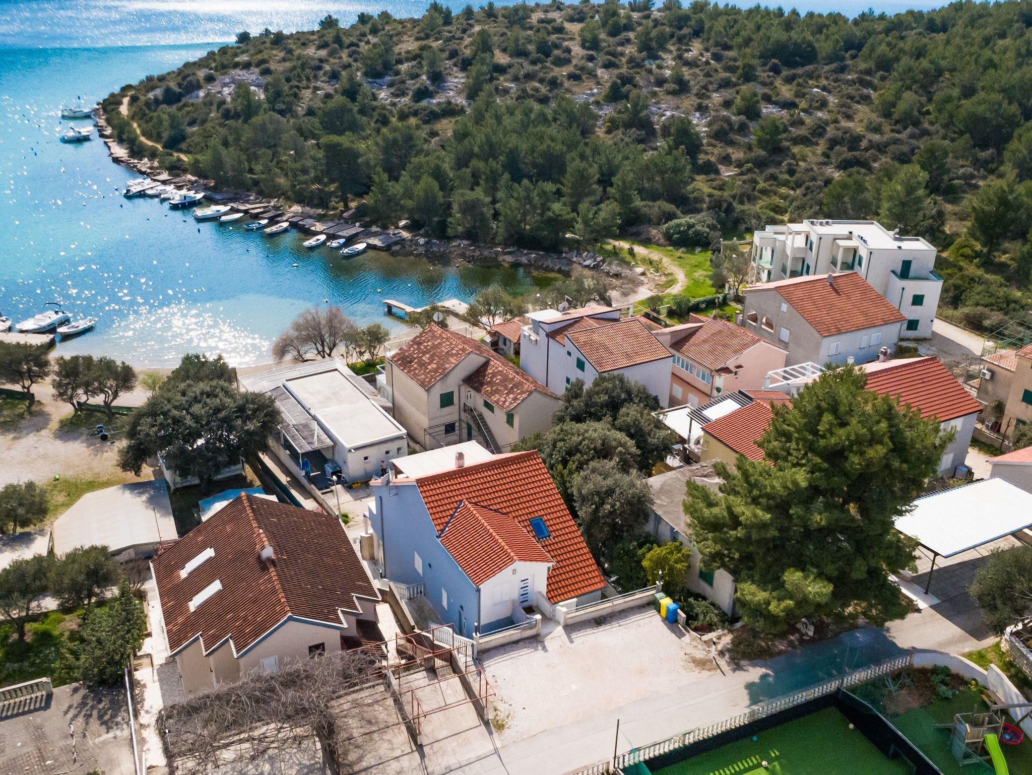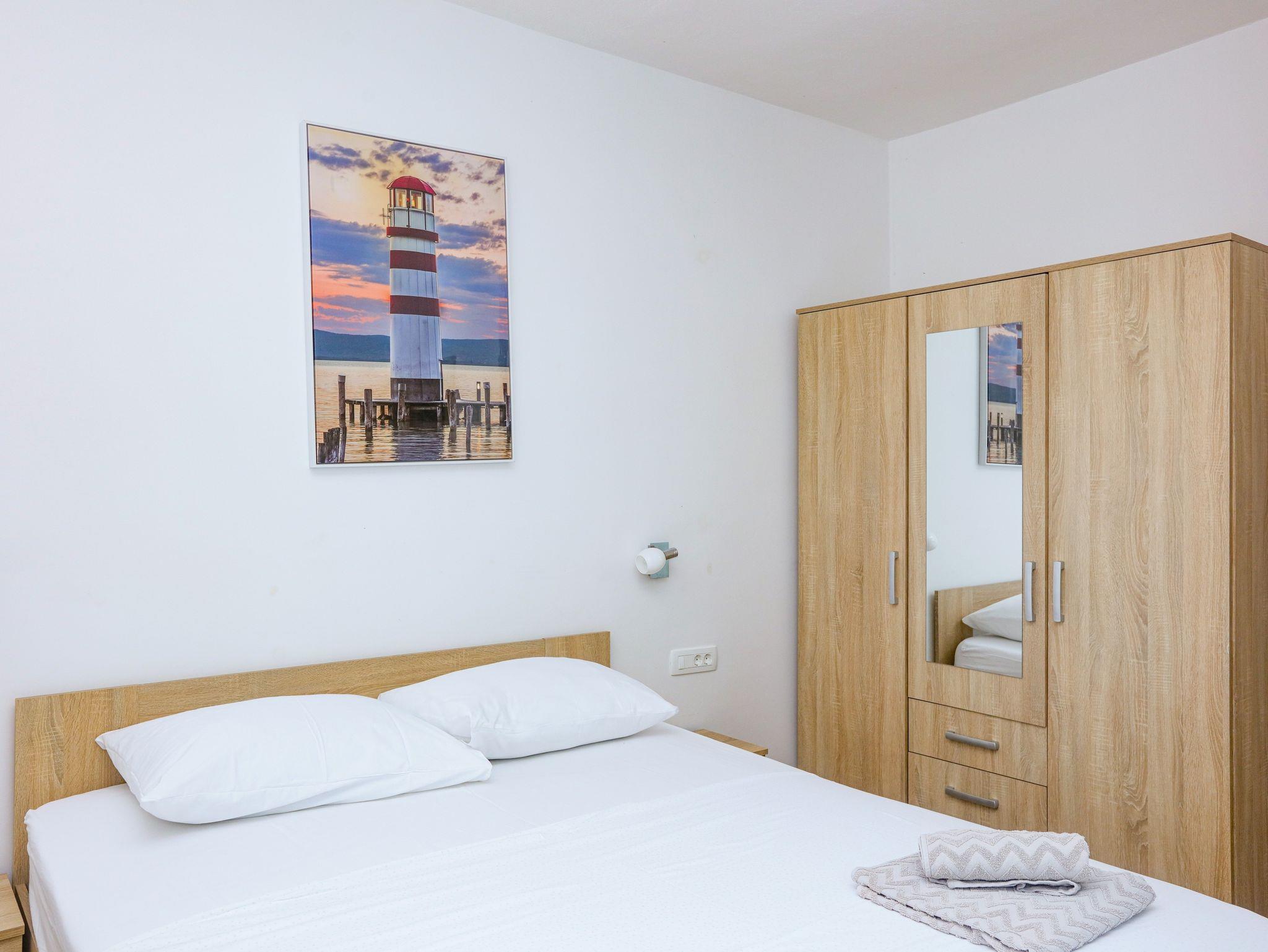 Ferienwohnung bietet Platz für 4 Gäste. Die Betten sind in Schlafzimmern, die es 1 gibt, und in Wohnzimmer, innerhalb einer Gesamtfläche von 54m2, angeordnet. Die Gäste haben eine eigene Terrasse zur Verfügung, auf der sie in warmen Sommernächten genießen können. Das Apartment bietet Meerblick. Es ist erlaubt, Speisen auf dem Gemeinschafts-Grill vorzubereiten. IM PREIS INBEGRIFFEN: Kurtaxe, Endreinigung, Klimatisierung, Parkplatz, Internet, Föhn. VERBINDLICHE ZUSÄTZLICHE KOSTEN: Aufzahlung für Kurzaufenthalte (prozentualer Zuschlag pro Nächtigungsanzahl: 30% - 1, 20% - 2, 10% - 3). UNVERBINDLICHE ZUSÄTZLICHE KOSTEN: Bootsanlegeplatz (10,00 € pro Nacht). Die Verfügbarkeit zusätzlicher Dienstleistungen in Ihrem reservierten Termin und die Preise derselben (falls nicht aufgeführt) müssen im Voraus überprüft werden. Zusätzliche Dienstleistungen die in der Zahlungsaufforderung nicht aufgeführt sind werden direkt beim Vermieter bezahlt, angenommen der Gast nutzt auch diese.