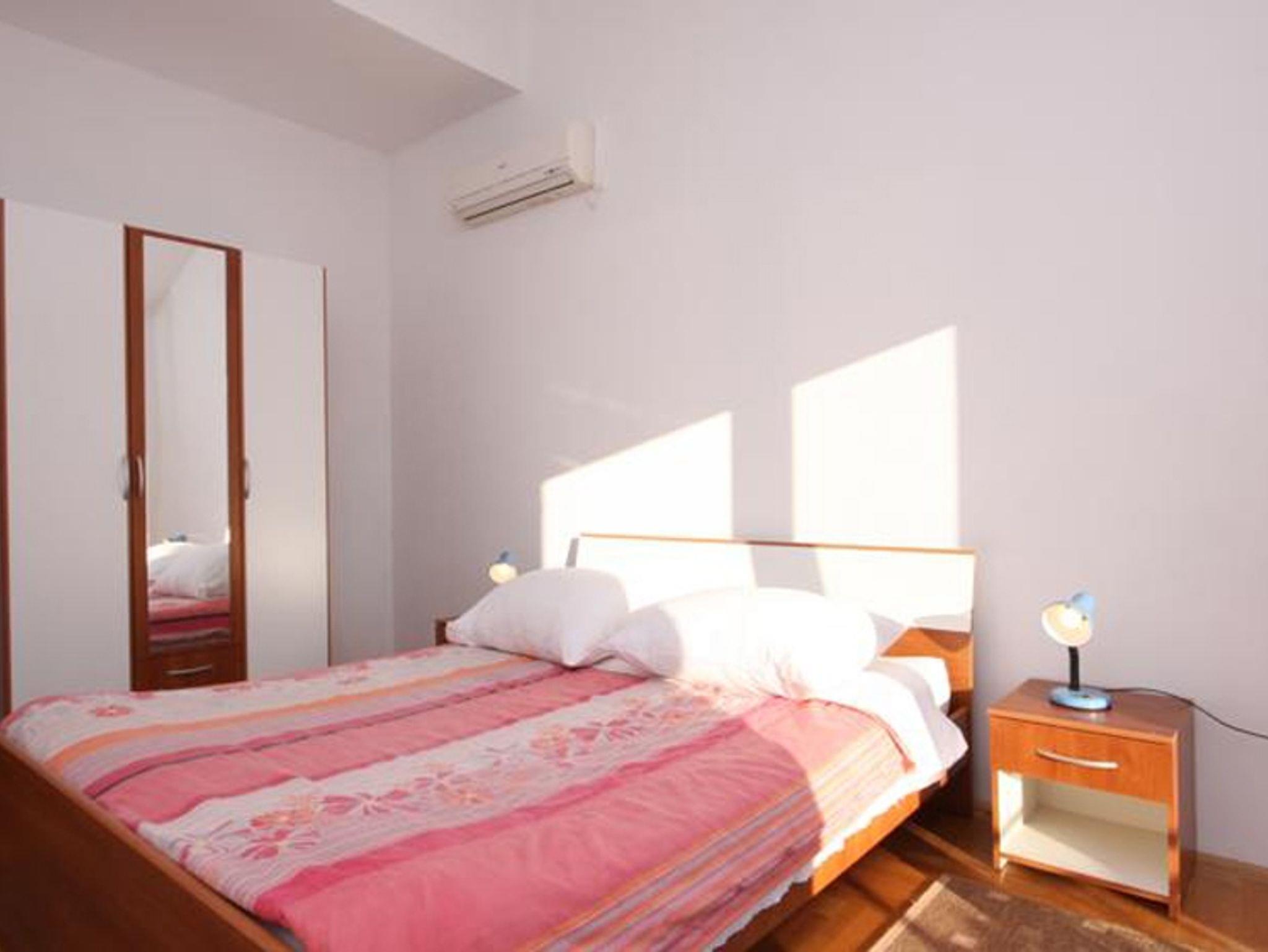 Ferienwohnung bietet Platz für 5 Gäste. Die Betten sind in Schlafzimmern, die es 2 gibt, innerhalb einer Gesamtfläche von 56m2, angeordnet. Die Gäste haben eine eigene Terrasse zur Verfügung, auf der sie in warmen Sommernächten genießen können. Das Apartment bietet Meerblick. Es ist erlaubt, Speisen auf dem Gemeinschafts-Grill vorzubereiten. IM PREIS INBEGRIFFEN: Kurtaxe, Endreinigung, Klimatisierung, Parkplatz, Internet. VERBINDLICHE ZUSÄTZLICHE KOSTEN: Aufzahlung für Kurzaufenthalte (prozentualer Zuschlag pro Nächtigungsanzahl: 30% - 1, 20% - 2, 10% - 3). Die Verfügbarkeit zusätzlicher Dienstleistungen in Ihrem reservierten Termin und die Preise derselben (falls nicht aufgeführt) müssen im Voraus überprüft werden. Zusätzliche Dienstleistungen die in der Zahlungsaufforderung nicht aufgeführt sind werden direkt beim Vermieter bezahlt, angenommen der Gast nutzt auch diese.