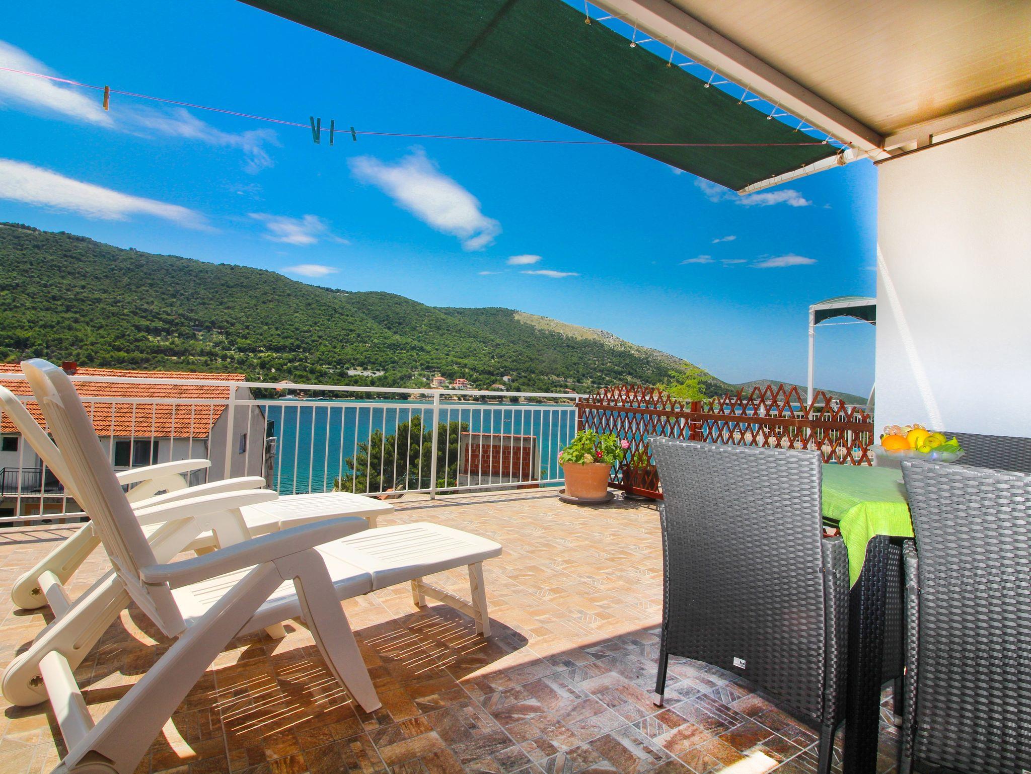 Studio bietet Platz für 2 Gäste. Die Betten sind in Schlafzimmern, die es 1 gibt, innerhalb einer Gesamtfläche von 28m2, angeordnet. Die Gäste haben eine eigene Terrasse zur Verfügung, auf der sie in warmen Sommernächten genießen können. Das Studio-Apartment bietet Meerblick. Es ist erlaubt, Speisen auf dem Gemeinschafts-Grill vorzubereiten. IM PREIS INBEGRIFFEN: Kurtaxe, Endreinigung, Klimatisierung, Parkplatz, Internet, Kinderbett, Liegestühle. VERBINDLICHE ZUSÄTZLICHE KOSTEN: Aufzahlung für Kurzaufenthalte (prozentualer Zuschlag pro Nächtigungsanzahl: 30% - 1, 20% - 2, 10% - 3). UNVERBINDLICHE ZUSÄTZLICHE KOSTEN: Bootsanlegeplatz (7,00 € pro Nacht). Die Verfügbarkeit zusätzlicher Dienstleistungen in Ihrem reservierten Termin und die Preise derselben (falls nicht aufgeführt) müssen im Voraus überprüft werden. Zusätzliche Dienstleistungen die in der Zahlungsaufforderung nicht aufgeführt sind werden direkt beim Vermieter bezahlt, angenommen der Gast nutzt auch diese. Ermäßigung auf den Grundpreis: Gratistag 14=13 (bei einem Aufenthalt von 14 Tagen oder mehr erhalten Sie einen Gratistag für den Aufenthalt bis 31.12.26).