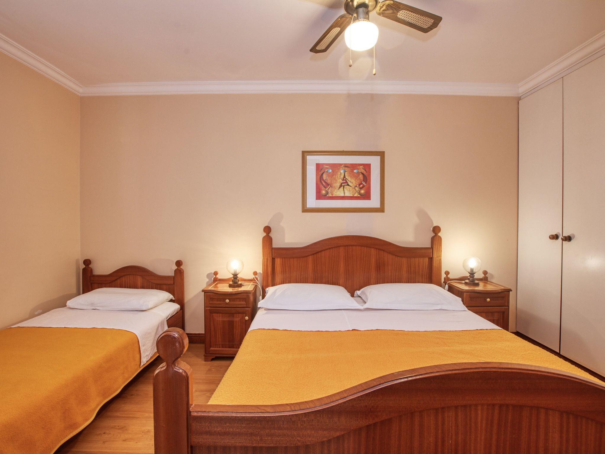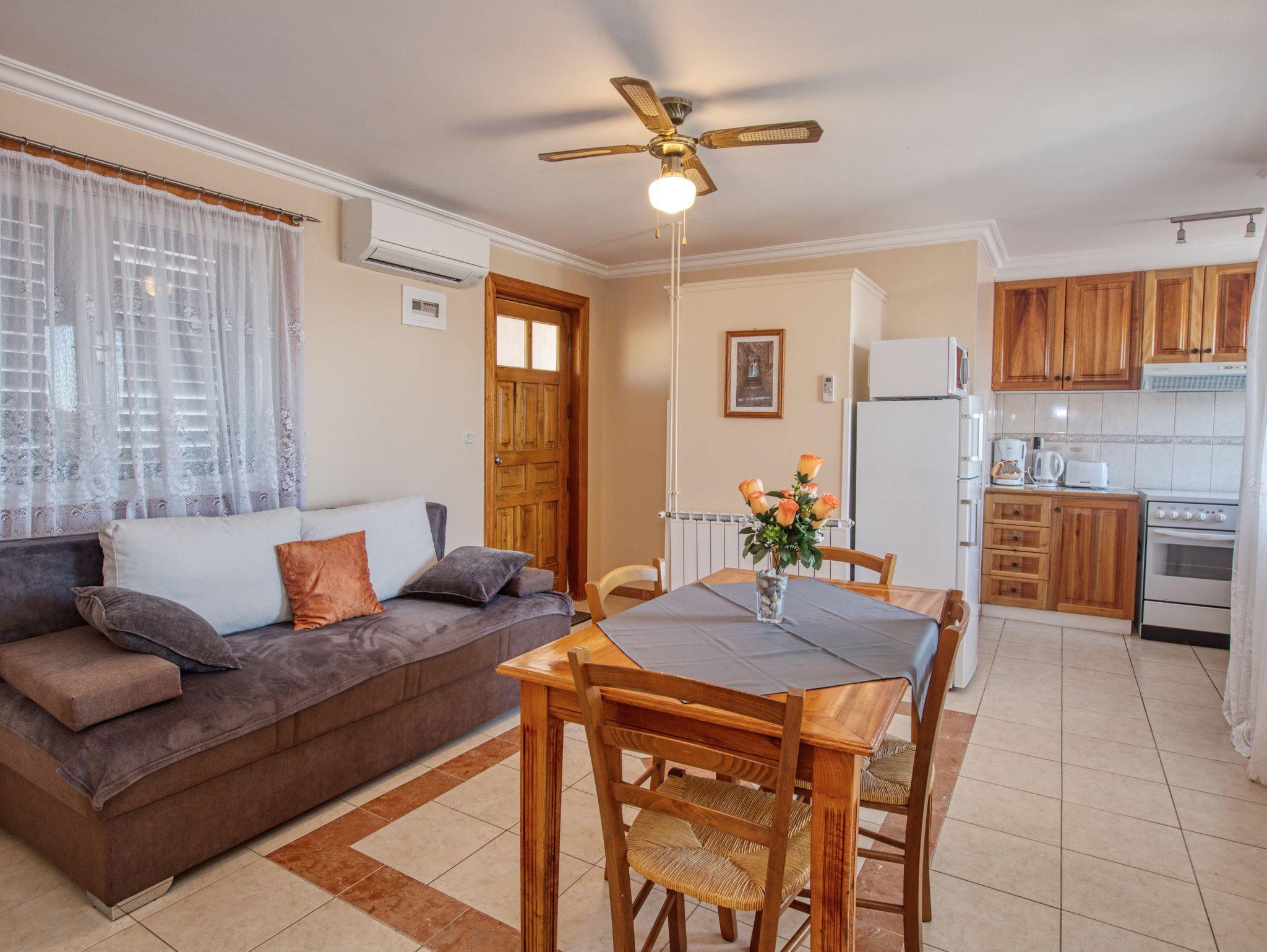 Ferienwohnung bietet Platz für 4 Gäste. Die Betten sind in Schlafzimmern, die es 1 gibt, und in Wohnzimmer, innerhalb einer Gesamtfläche von 38m2, angeordnet. Die Gäste haben eine eigene Terrasse zur Verfügung, auf der sie in warmen Sommernächten genießen können. Das Apartment bietet Meerblick. Es ist erlaubt, Speisen auf dem Gemeinschafts-Grill vorzubereiten. IM PREIS INBEGRIFFEN: Kurtaxe, Endreinigung, Klimatisierung, Parkplatz, Internet, Bootsanlegeplatz, Föhn, Sonnenschirm, Liegestühle. UNVERBINDLICHE ZUSÄTZLICHE KOSTEN: Wäschewaschen (5,00 € Waschen). Die Verfügbarkeit zusätzlicher Dienstleistungen in Ihrem reservierten Termin und die Preise derselben (falls nicht aufgeführt) müssen im Voraus überprüft werden. Zusätzliche Dienstleistungen die in der Zahlungsaufforderung nicht aufgeführt sind werden direkt beim Vermieter bezahlt, angenommen der Gast nutzt auch diese. Ermäßigung auf den Grundpreis: Gratistag 14=13 (bei einem Aufenthalt von 14 Tagen oder mehr erhalten Sie einen Gratistag für den Aufenthalt bis 31.12.26).