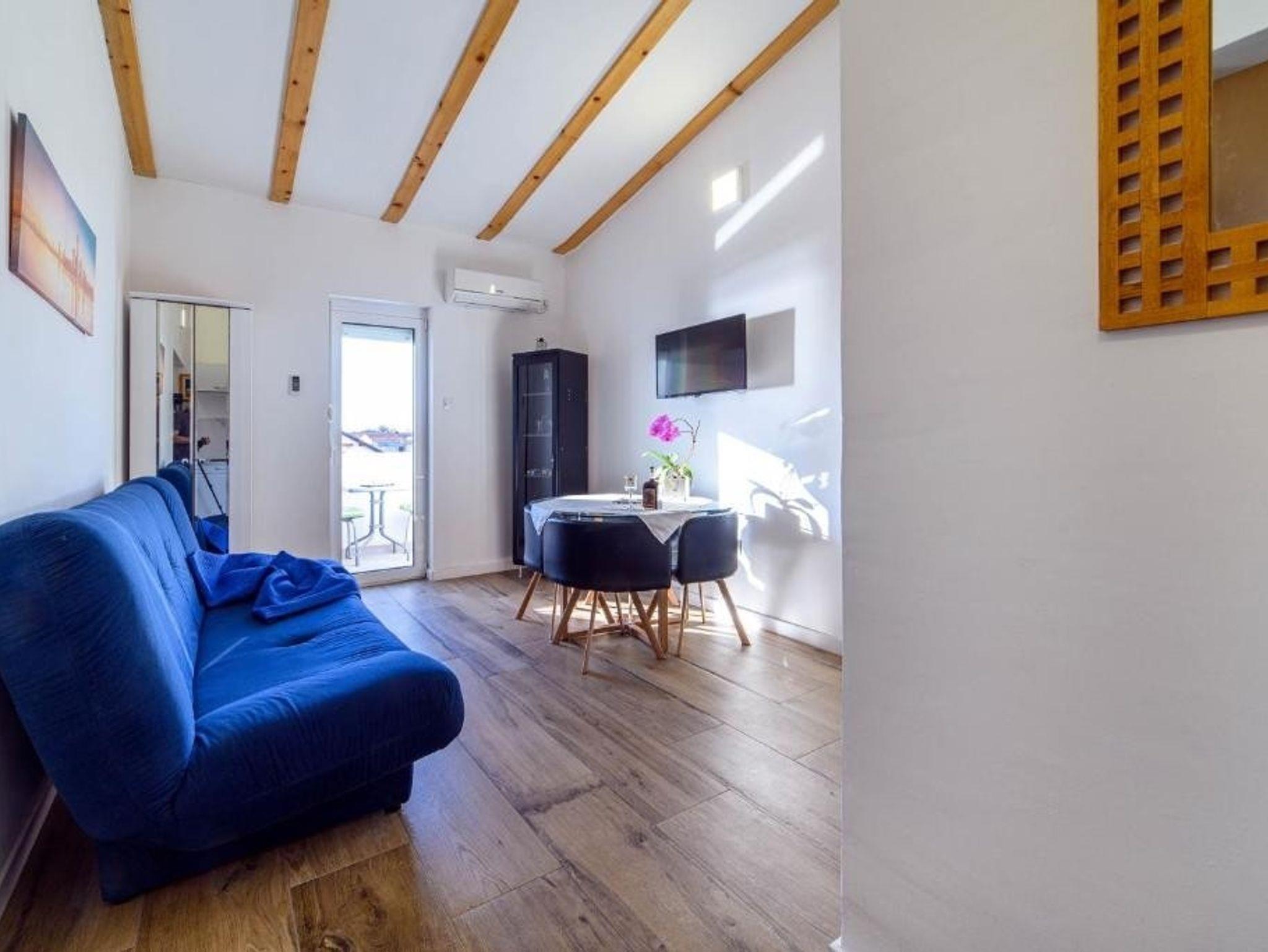 Ferienwohnung bietet Platz für 4 Gäste. Die Betten sind in Schlafzimmern, die es 2 gibt, innerhalb einer Gesamtfläche von 40m2, angeordnet. Die Gäste haben eine eigene Terrasse zur Verfügung, auf der sie in warmen Sommernächten genießen können. Das Apartment bietet Meerblick. IM PREIS INBEGRIFFEN: Kurtaxe, Endreinigung, Klimatisierung, Parkplatz, Internet, Kinderbett, Bügeleisen, Bügelbrett, Föhn. VERBINDLICHE ZUSÄTZLICHE KOSTEN: Aufzahlung für Kurzaufenthalte (prozentualer Zuschlag pro Nächtigungsanzahl: 30% - 1, 20% - 2, 10% - 3). UNVERBINDLICHE ZUSÄTZLICHE KOSTEN: Bootsanlegeplatz (7,00 € pro Nacht). Die Verfügbarkeit zusätzlicher Dienstleistungen in Ihrem reservierten Termin und die Preise derselben (falls nicht aufgeführt) müssen im Voraus überprüft werden. Zusätzliche Dienstleistungen die in der Zahlungsaufforderung nicht aufgeführt sind werden direkt beim Vermieter bezahlt, angenommen der Gast nutzt auch diese.