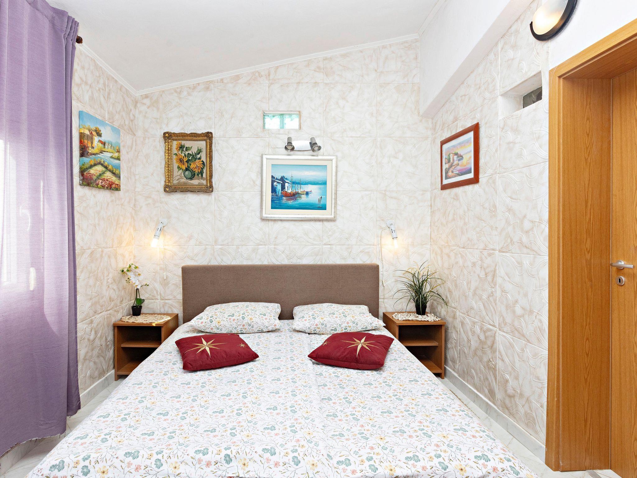 Ferienwohnung bietet Platz für 4 Gäste. Die Betten sind in Schlafzimmern, die es 2 gibt, innerhalb einer Gesamtfläche von 38m2, angeordnet. Die Gäste haben eine eigene Terrasse zur Verfügung, auf der sie in warmen Sommernächten genießen können. Das Apartment bietet Meerblick. Es ist erlaubt, Speisen auf dem Gemeinschafts-Grill vorzubereiten. In der Unterkunftseinheit besteht die Möglichkeit des Mitbringens von Haustieren gegen Aufpreis. IM PREIS INBEGRIFFEN: Kurtaxe, Endreinigung, Parkplatz, Internet, Bootsanlegeplatz, Föhn. UNVERBINDLICHE ZUSÄTZLICHE KOSTEN: Klimatisierung (3,00 € pro Nacht), Wäschewaschen (5,00 € Waschen), Haustiere (5,00 € pro Nacht), Fahrrad (10,00 € täglich (pro Stück)). Die Verfügbarkeit zusätzlicher Dienstleistungen in Ihrem reservierten Termin und die Preise derselben (falls nicht aufgeführt) müssen im Voraus überprüft werden. Zusätzliche Dienstleistungen die in der Zahlungsaufforderung nicht aufgeführt sind werden direkt beim Vermieter bezahlt, angenommen der Gast nutzt auch diese.