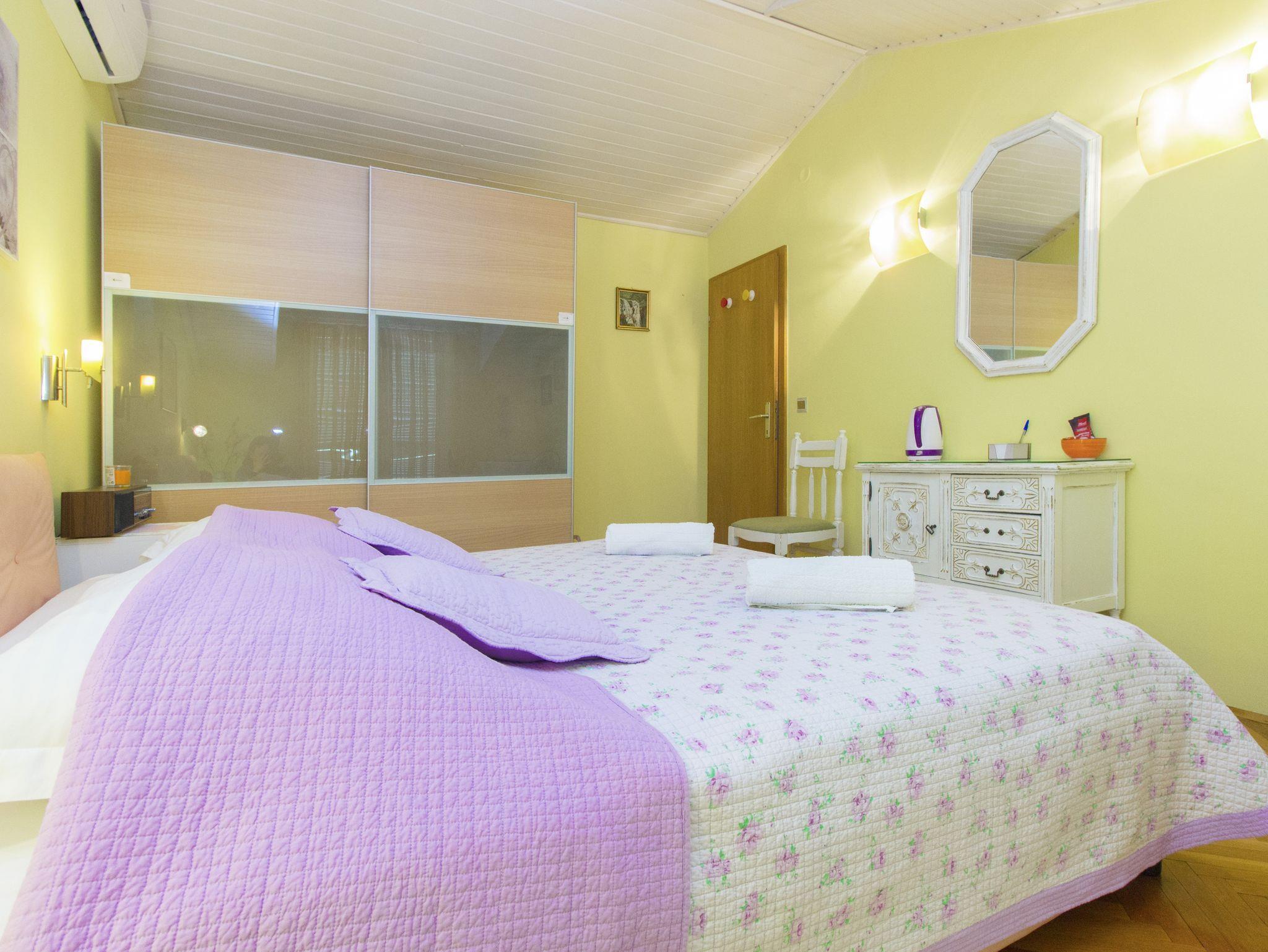 Ferienwohnung bietet Platz für 4 Gäste. Die Betten sind in Schlafzimmern, die es 2 gibt, innerhalb einer Gesamtfläche von 55m2, angeordnet. Die Gäste haben eine eigene Terrasse zur Verfügung, auf der sie in warmen Sommernächten genießen können. Das Apartment bietet Meerblick. Es ist erlaubt, Speisen auf dem Gemeinschafts-Grill vorzubereiten. In der Unterkunftseinheit besteht die Möglichkeit des Mitbringens von Haustieren gegen Aufpreis. IM PREIS INBEGRIFFEN: Kurtaxe, Endreinigung, Klimatisierung, Internet, Bügeleisen, Bügelbrett, Föhn. UNVERBINDLICHE ZUSÄTZLICHE KOSTEN: Garage (6,00 € pro Nacht), Haustiere (6,00 € pro Nacht). Die Verfügbarkeit zusätzlicher Dienstleistungen in Ihrem reservierten Termin und die Preise derselben (falls nicht aufgeführt) müssen im Voraus überprüft werden. Zusätzliche Dienstleistungen die in der Zahlungsaufforderung nicht aufgeführt sind werden direkt beim Vermieter bezahlt, angenommen der Gast nutzt auch diese. Ermäßigung auf den Grundpreis: Gratistag 14=13 (bei einem Aufenthalt von 14 Tagen oder mehr erhalten Sie einen Gratistag für den Aufenthalt bis 31.12.26).