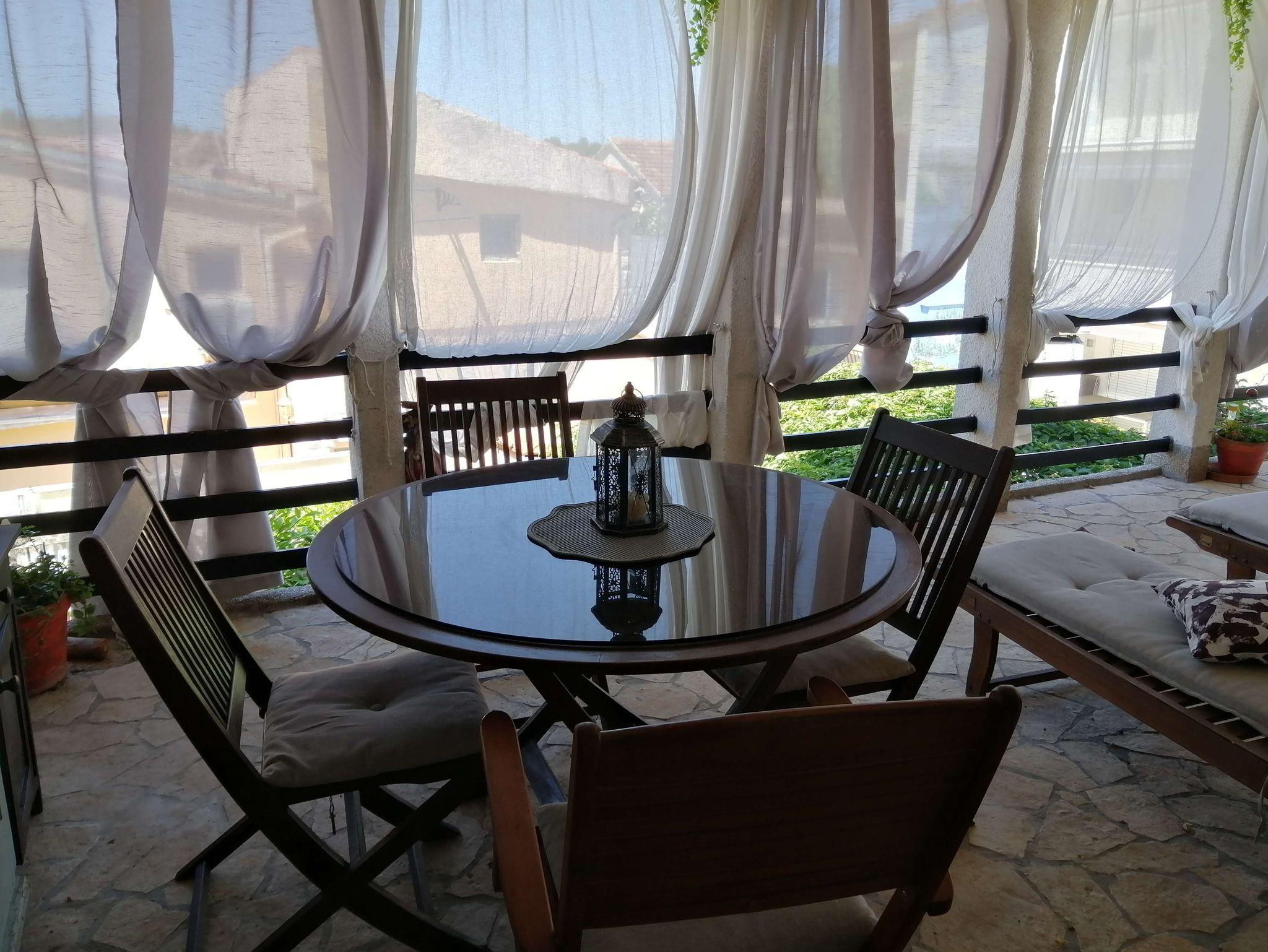 Ferienwohnung bietet Platz für 6 Gäste. Die Betten sind in Schlafzimmern, die es 3 gibt, innerhalb einer Gesamtfläche von 61m2, angeordnet. Die Gäste haben eine eigene Terrasse zur Verfügung, auf der sie in warmen Sommernächten genießen können. Das Apartment bietet Meerblick. Es ist erlaubt, Speisen auf dem Gemeinschafts-Grill vorzubereiten. In der Unterkunftseinheit besteht die Möglichkeit des Mitbringens von Haustieren, und die Dienstleistung ist im Preis der Unterkunft enthalten. IM PREIS INBEGRIFFEN: Kurtaxe, Endreinigung, Klimatisierung, Zentralheizung, Internet, Boot, Haustiere, Fahrrad, Bügeleisen, Bügelbrett, Föhn. Die Verfügbarkeit zusätzlicher Dienstleistungen in Ihrem reservierten Termin und die Preise derselben (falls nicht aufgeführt) müssen im Voraus überprüft werden. Zusätzliche Dienstleistungen die in der Zahlungsaufforderung nicht aufgeführt sind werden direkt beim Vermieter bezahlt, angenommen der Gast nutzt auch diese.