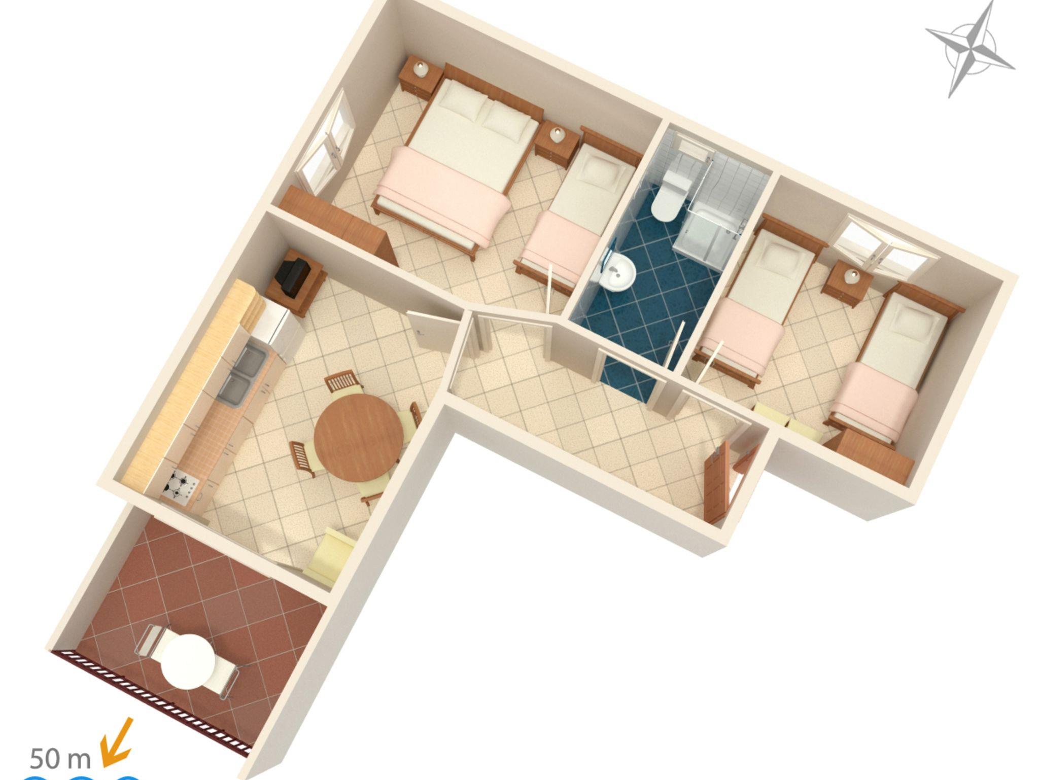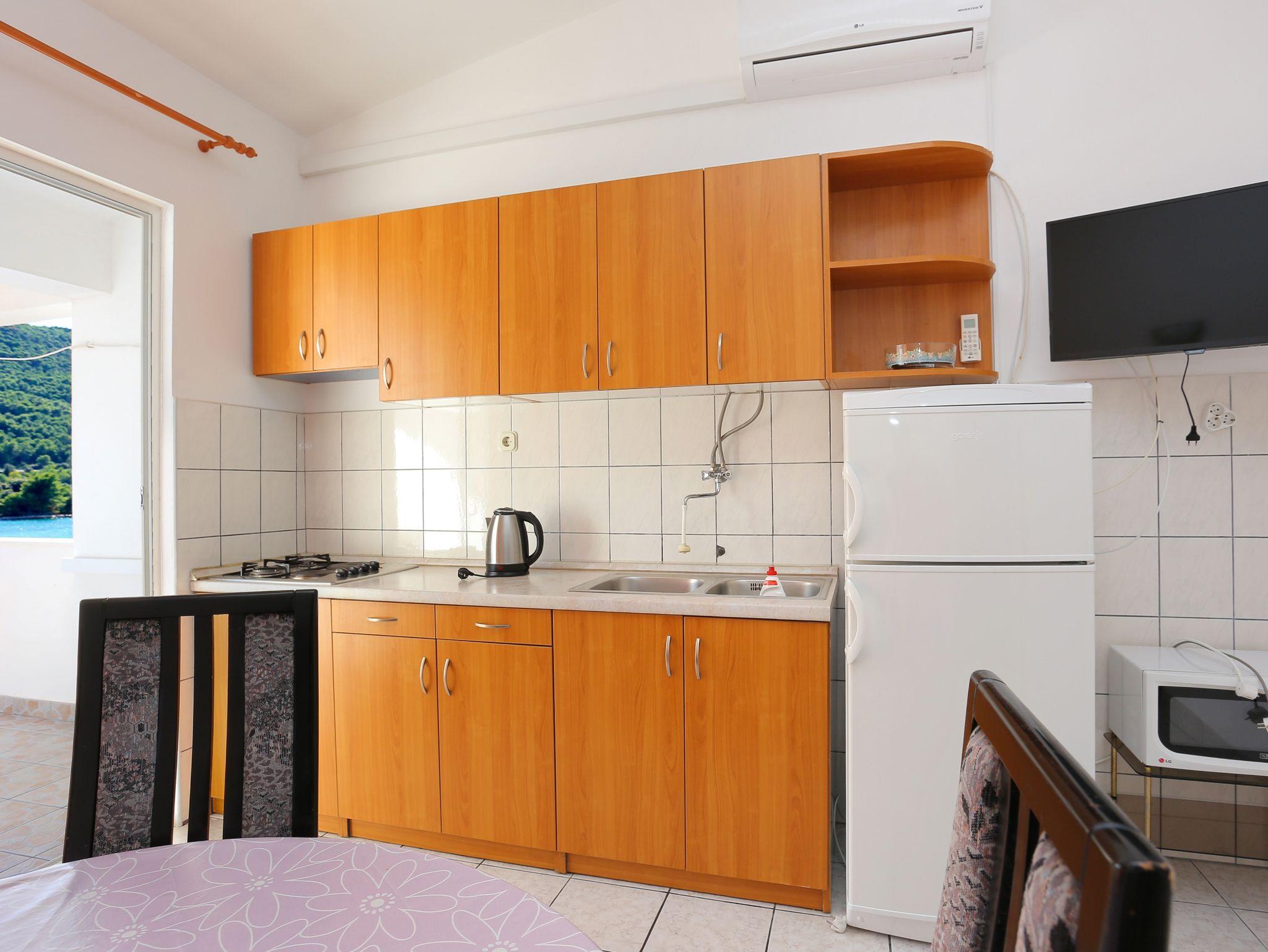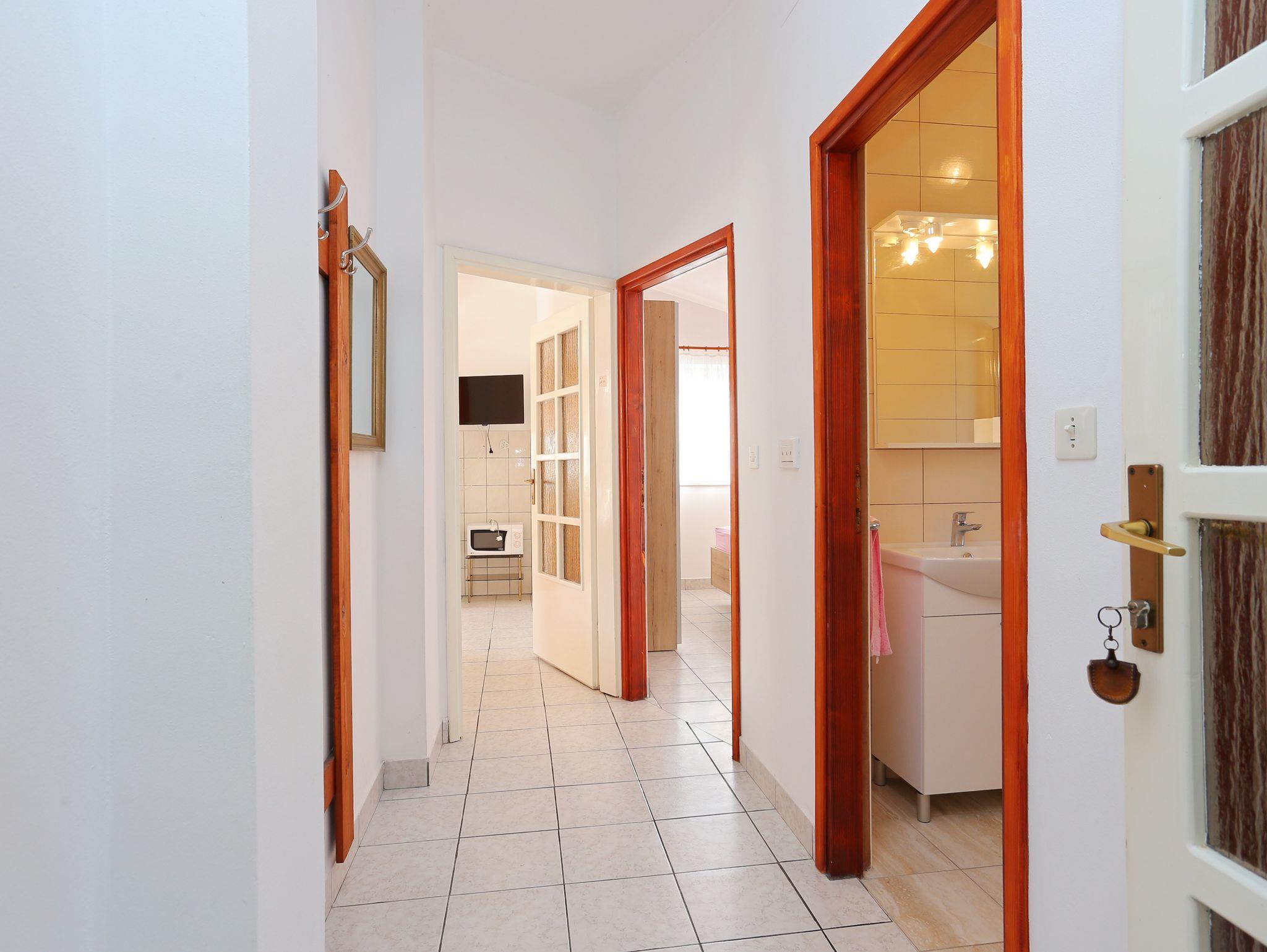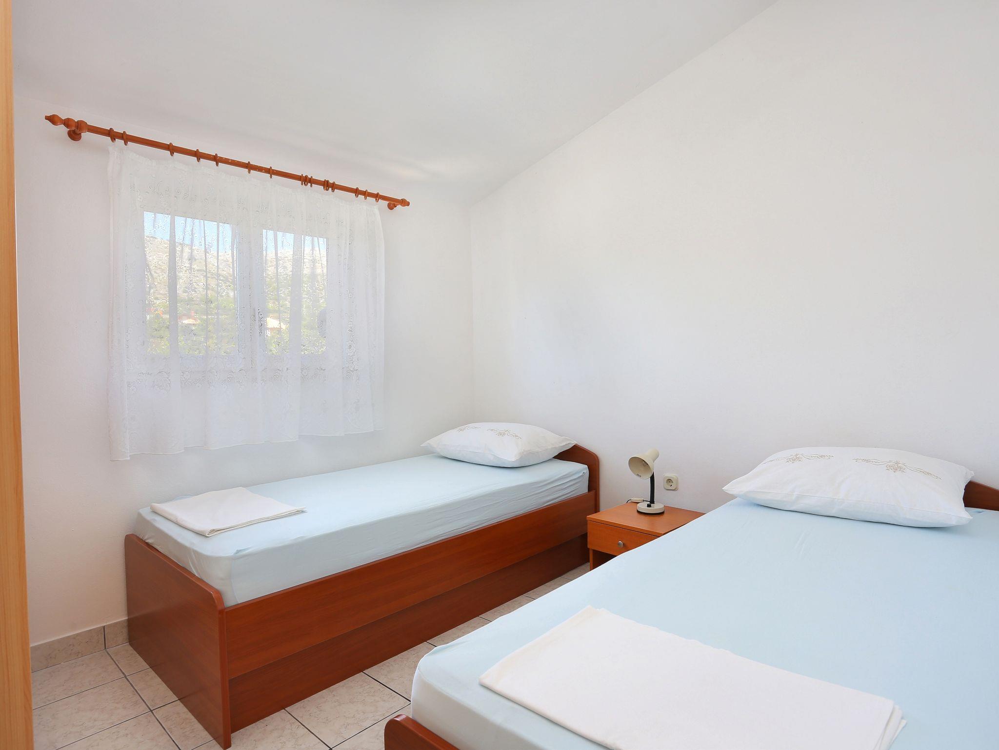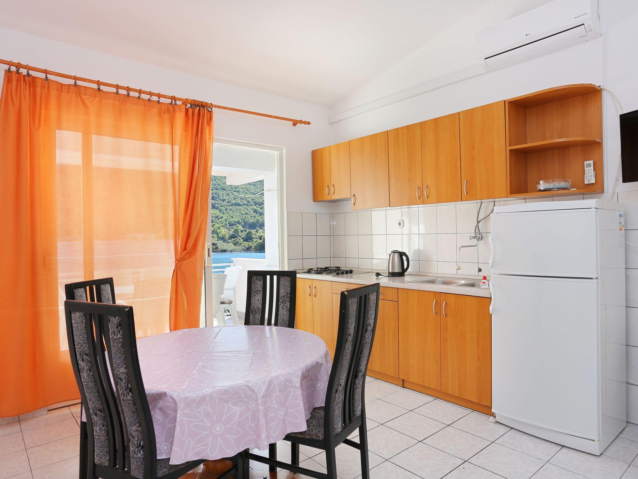Ferienwohnung bietet Platz für 4 Gäste. Die Betten sind in Schlafzimmern, die es 2 gibt, innerhalb einer Gesamtfläche von 47m2, angeordnet. Die Gäste haben eine eigene Terrasse zur Verfügung, auf der sie in warmen Sommernächten genießen können. Das Apartment bietet Meerblick. Es ist erlaubt, Speisen auf dem Gemeinschafts-Grill vorzubereiten. IM PREIS INBEGRIFFEN: Kurtaxe, Endreinigung, Klimatisierung, Parkplatz, Internet, Bootsanlegeplatz, Kinderbett, Bügeleisen, Bügelbrett, Föhn. VERBINDLICHE ZUSÄTZLICHE KOSTEN: Aufzahlung für Kurzaufenthalte (prozentualer Zuschlag pro Nächtigungsanzahl: 30% - 1, 20% - 2, 10% - 3). UNVERBINDLICHE ZUSÄTZLICHE KOSTEN: Wäschewaschen (5,00 € Waschen). Die Verfügbarkeit zusätzlicher Dienstleistungen in Ihrem reservierten Termin und die Preise derselben (falls nicht aufgeführt) müssen im Voraus überprüft werden. Zusätzliche Dienstleistungen die in der Zahlungsaufforderung nicht aufgeführt sind werden direkt beim Vermieter bezahlt, angenommen der Gast nutzt auch diese.