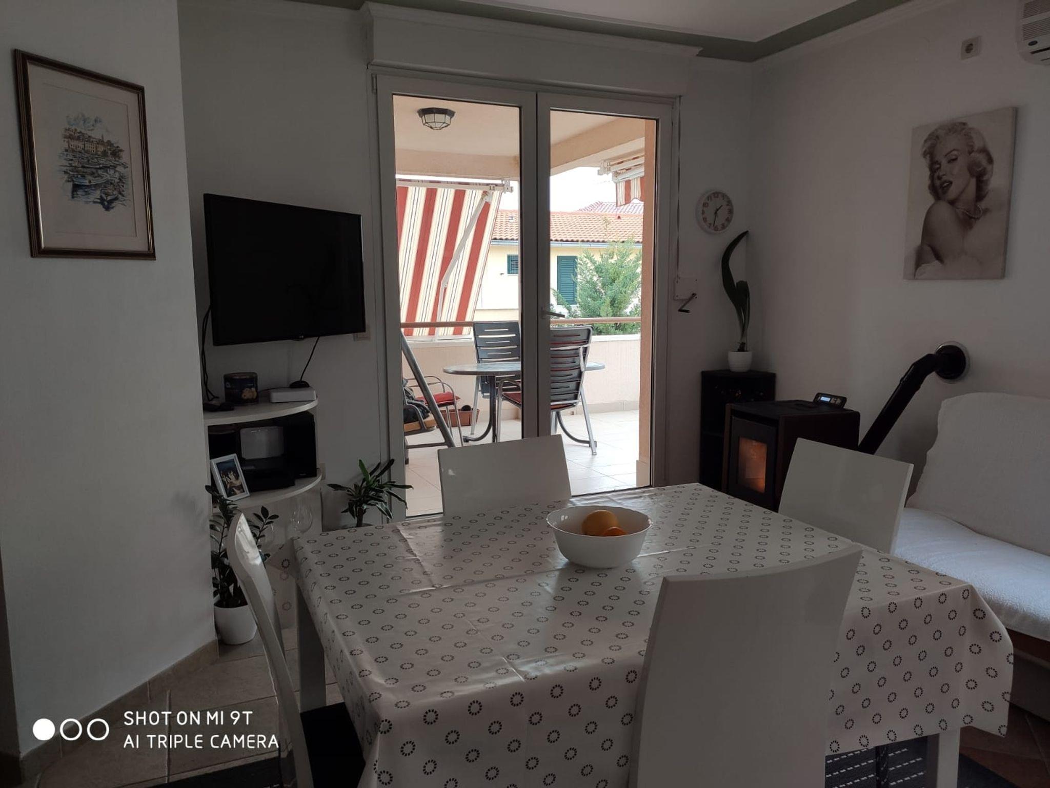 Ferienwohnung bietet Platz für 4 Gäste. Die Betten sind in Schlafzimmern, die es 2 gibt, innerhalb einer Gesamtfläche von 44m2, angeordnet. Die Gäste haben eine eigene Terrasse zur Verfügung, auf der sie in warmen Sommernächten genießen können. Das Apartment bietet Meerblick. In der Unterkunftseinheit besteht die Möglichkeit des Mitbringens von Haustieren gegen Aufpreis. IM PREIS INBEGRIFFEN: Kurtaxe, Endreinigung, Klimatisierung, Parkplatz, Internet, Kinderbett, Bügeleisen, Bügelbrett, Föhn. VERBINDLICHE ZUSÄTZLICHE KOSTEN: Aufzahlung für Kurzaufenthalte (prozentualer Zuschlag pro Nächtigungsanzahl: 30% - 1, 20% - 2, 10% - 3). UNVERBINDLICHE ZUSÄTZLICHE KOSTEN: Haustiere (5,00 € pro Nacht). Die Verfügbarkeit zusätzlicher Dienstleistungen in Ihrem reservierten Termin und die Preise derselben (falls nicht aufgeführt) müssen im Voraus überprüft werden. Zusätzliche Dienstleistungen die in der Zahlungsaufforderung nicht aufgeführt sind werden direkt beim Vermieter bezahlt, angenommen der Gast nutzt auch diese.