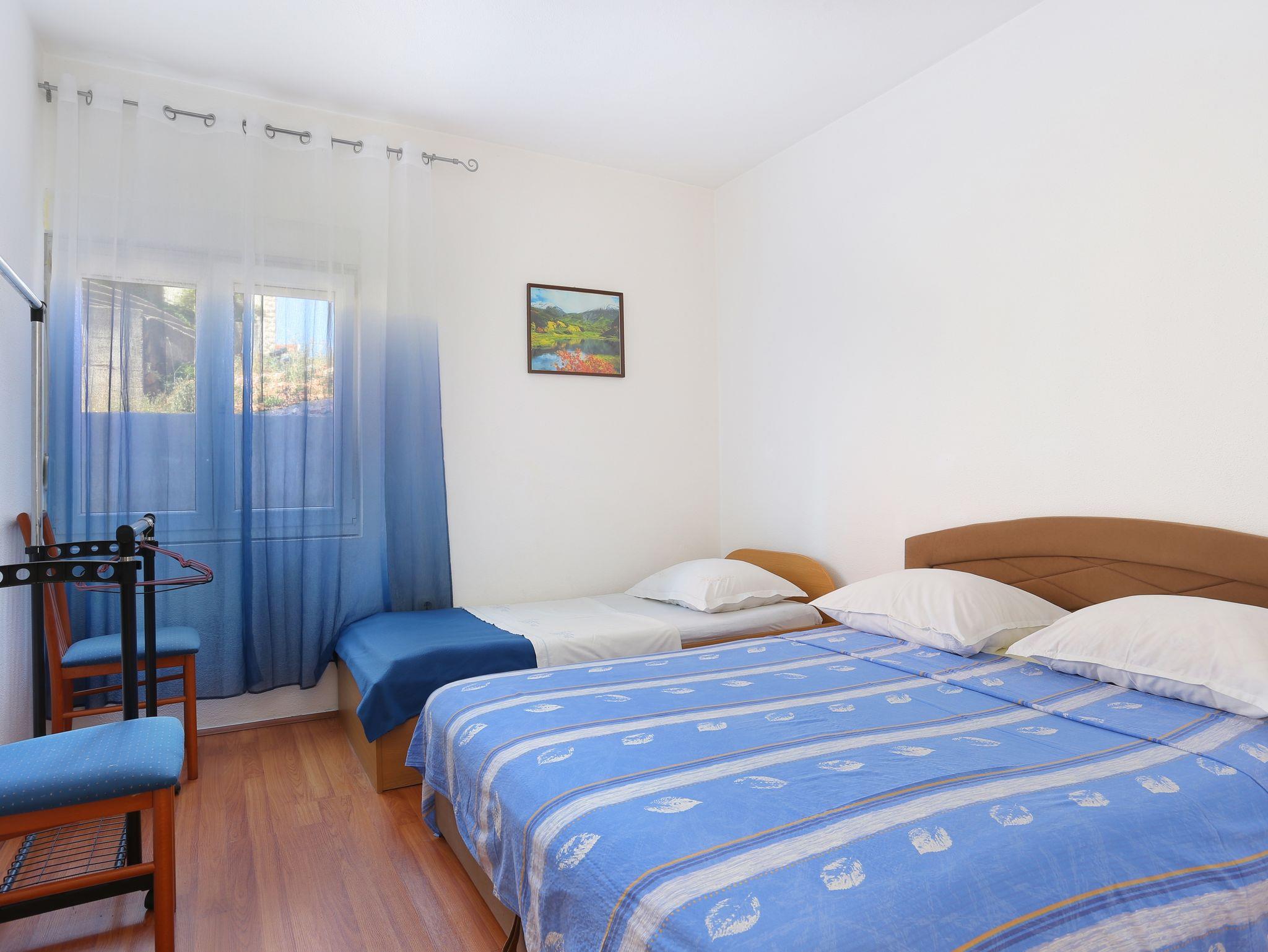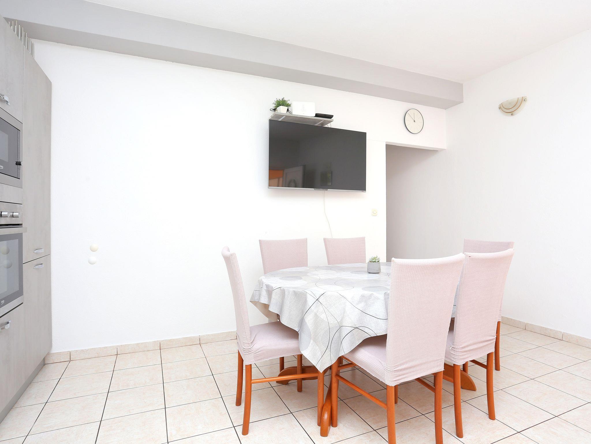 Ferienwohnung bietet Platz für 4 Gäste. Die Betten sind in Schlafzimmern, die es 1 gibt, und in Esszimmer, innerhalb einer Gesamtfläche von 35m2, angeordnet. Die Gäste haben eine eigene Terrasse zur Verfügung, auf der sie in warmen Sommernächten genießen können. Es ist erlaubt, Speisen auf dem Gemeinschafts-Grill vorzubereiten. IM PREIS INBEGRIFFEN: Kurtaxe, Endreinigung, Klimatisierung, Parkplatz, Internet, Bügeleisen, Bügelbrett, Föhn, tragbarer Grill, Liegestühle. VERBINDLICHE ZUSÄTZLICHE KOSTEN: Aufzahlung für Kurzaufenthalte (prozentualer Zuschlag pro Nächtigungsanzahl: 30% - 1, 20% - 2, 10% - 3). Die Verfügbarkeit zusätzlicher Dienstleistungen in Ihrem reservierten Termin und die Preise derselben (falls nicht aufgeführt) müssen im Voraus überprüft werden. Zusätzliche Dienstleistungen die in der Zahlungsaufforderung nicht aufgeführt sind werden direkt beim Vermieter bezahlt, angenommen der Gast nutzt auch diese. Ermäßigung auf den Grundpreis: Gratistag 14=13 (bei einem Aufenthalt von 14 Tagen oder mehr erhalten Sie einen Gratistag für den Aufenthalt bis 31.12.26).