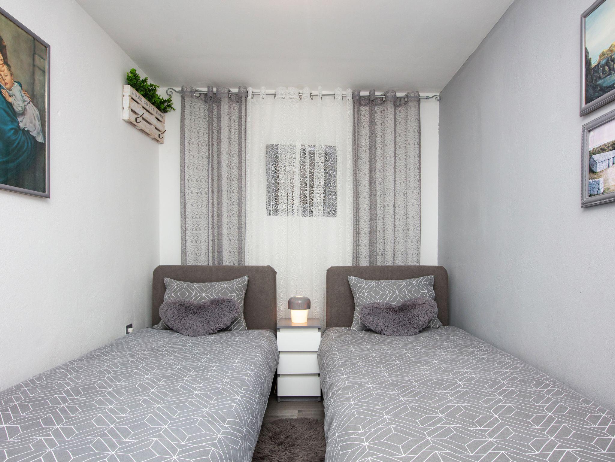 Ferienwohnung bietet Platz für 6 Gäste. Die Betten sind in Schlafzimmern, die es 3 gibt, innerhalb einer Gesamtfläche von 78m2, angeordnet. Die Gäste haben eine eigene Terrasse zur Verfügung, auf der sie in warmen Sommernächten genießen können. Es ist erlaubt, Speisen auf dem Gemeinschafts-Grill vorzubereiten. IM PREIS INBEGRIFFEN: Kurtaxe, Endreinigung, Klimatisierung, Parkplatz, Internet, Kinderbett, Bügeleisen, Bügelbrett, Föhn, tragbarer Grill. Die Verfügbarkeit zusätzlicher Dienstleistungen in Ihrem reservierten Termin und die Preise derselben (falls nicht aufgeführt) müssen im Voraus überprüft werden. Zusätzliche Dienstleistungen die in der Zahlungsaufforderung nicht aufgeführt sind werden direkt beim Vermieter bezahlt, angenommen der Gast nutzt auch diese. Ermäßigung auf den Grundpreis: Gratistag 14=13 (bei einem Aufenthalt von 14 Tagen oder mehr erhalten Sie einen Gratistag für den Aufenthalt bis 31.12.26).